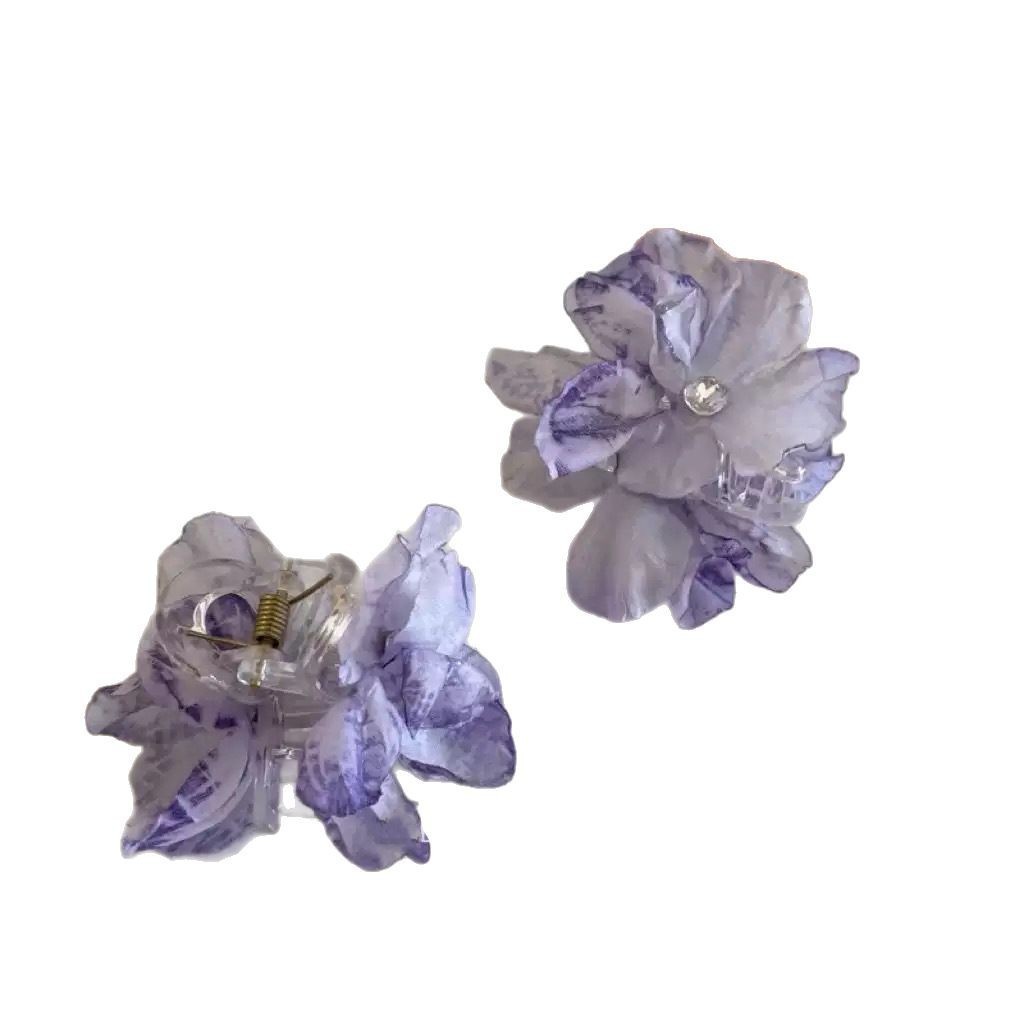淡雅紫山茶花朵小抓夹发卡海边拍照甜美氛围感头花发饰侧边夹