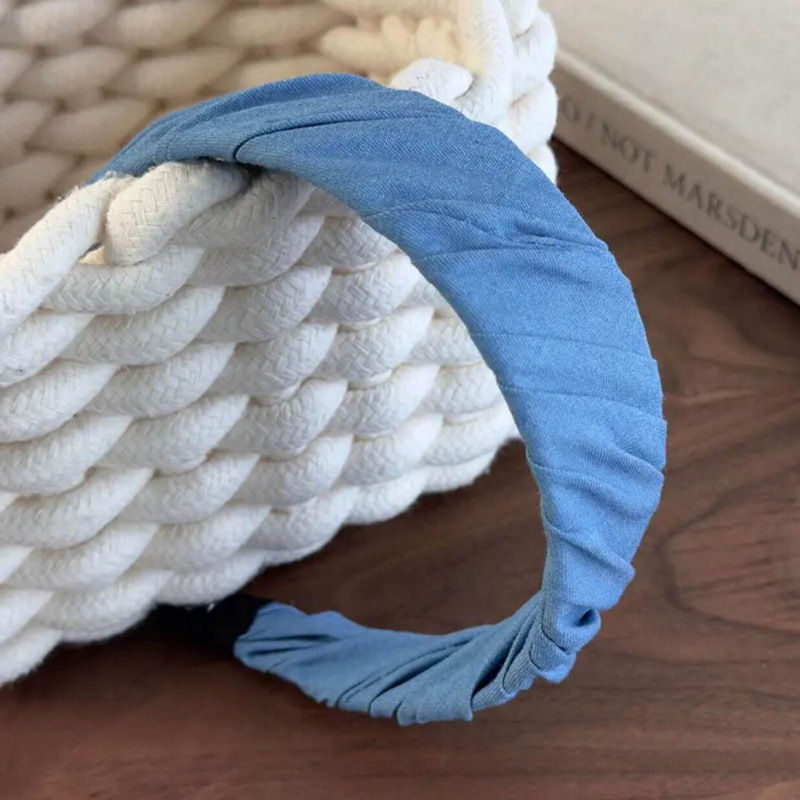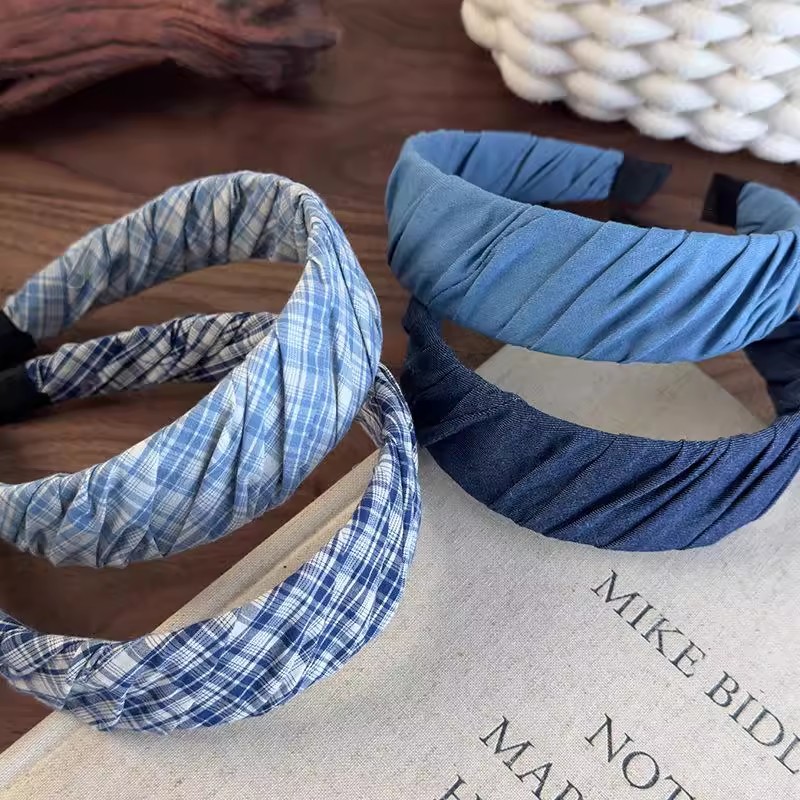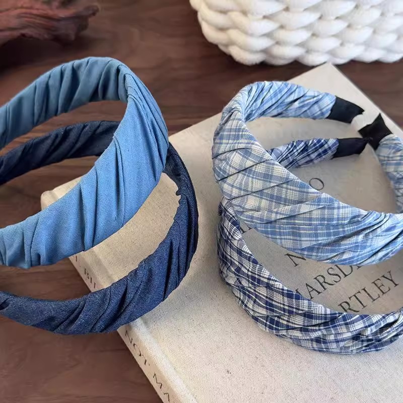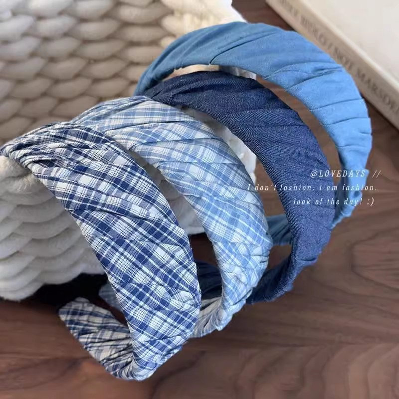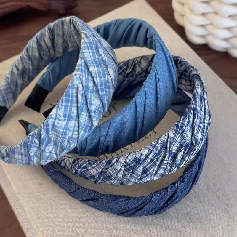 新款蓝色系时尚百搭布艺压发宽边斜纹发箍气质高级感日常女生发饰
