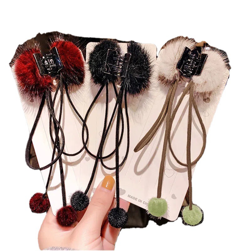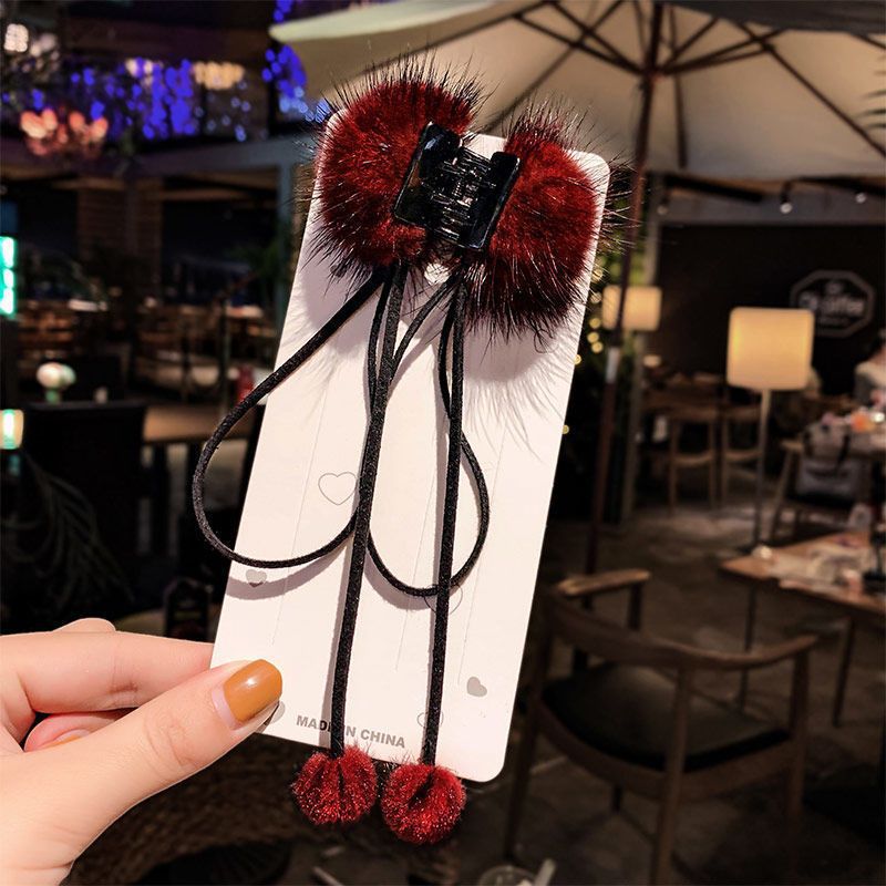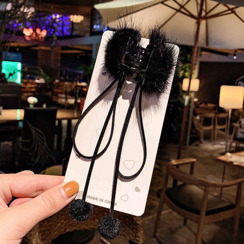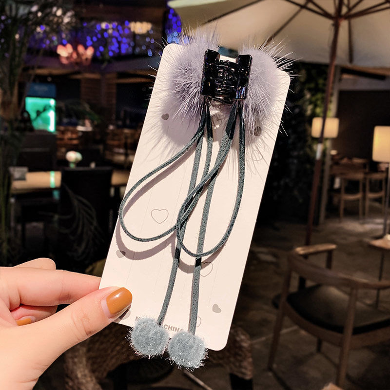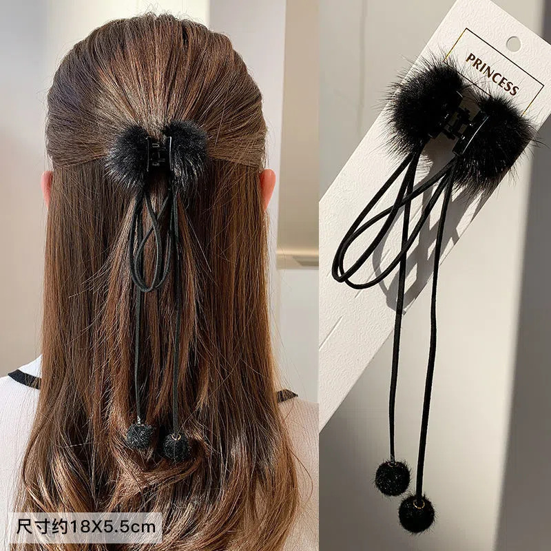 新款后脑勺小毛绒抓夹马尾夹发饰头饰流苏貂毛发饰网红毛球发夹