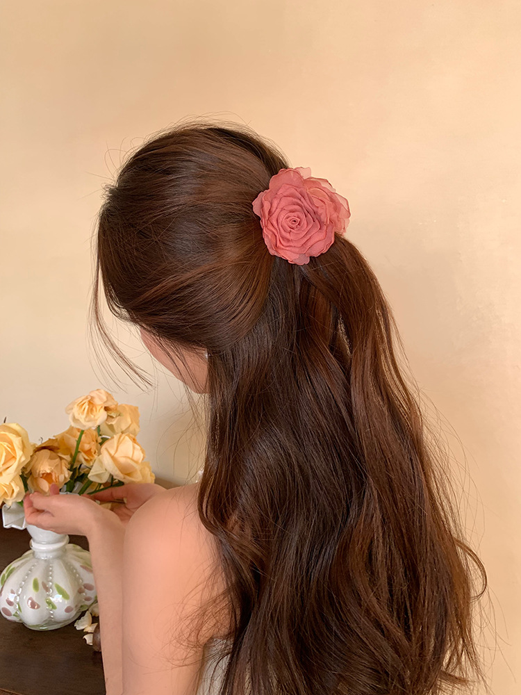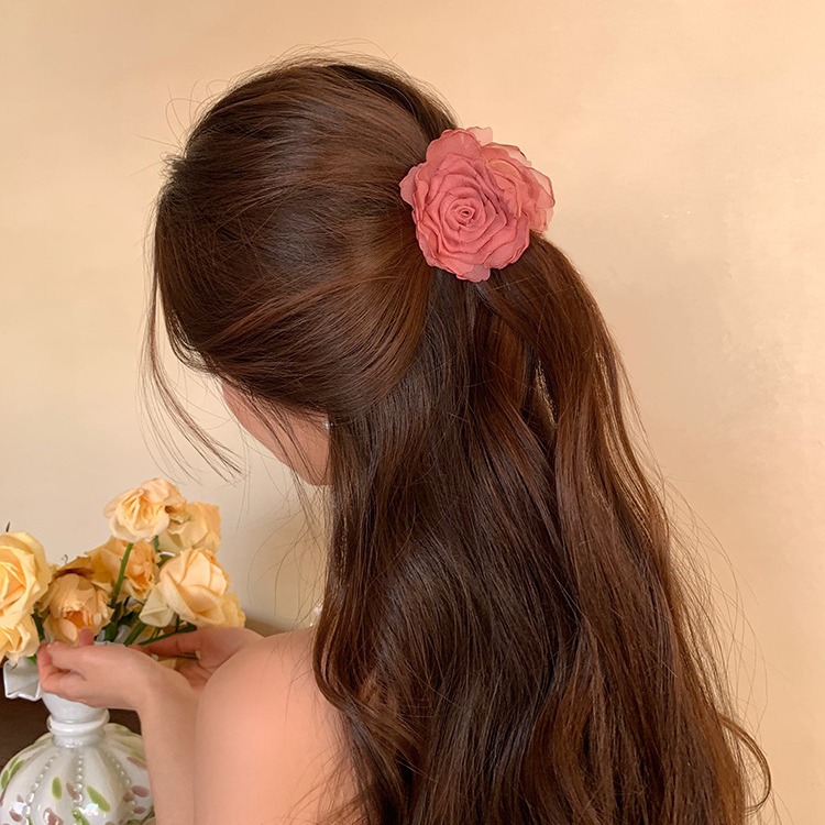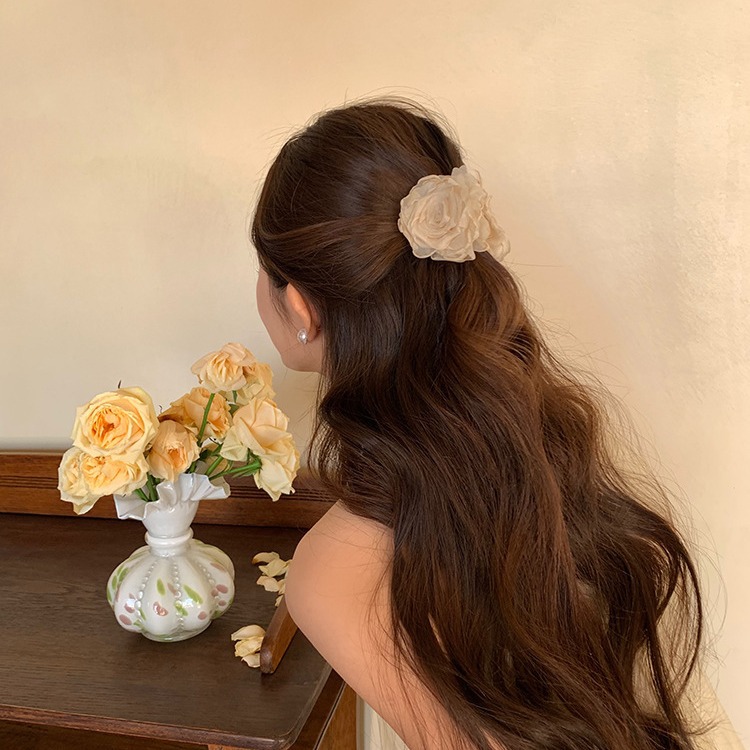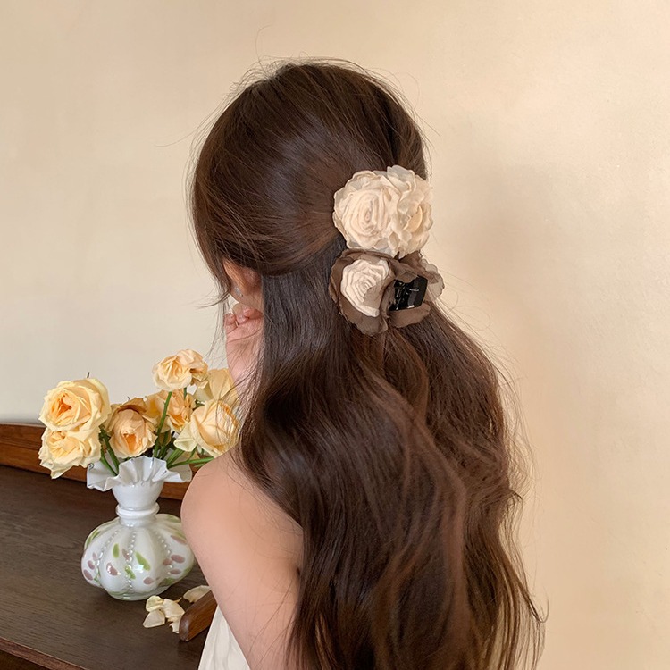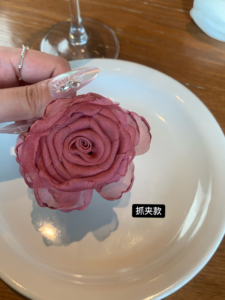 氛围之神~新中式手工玫瑰发夹头饰2024新款花朵抓夹女高级感发抓