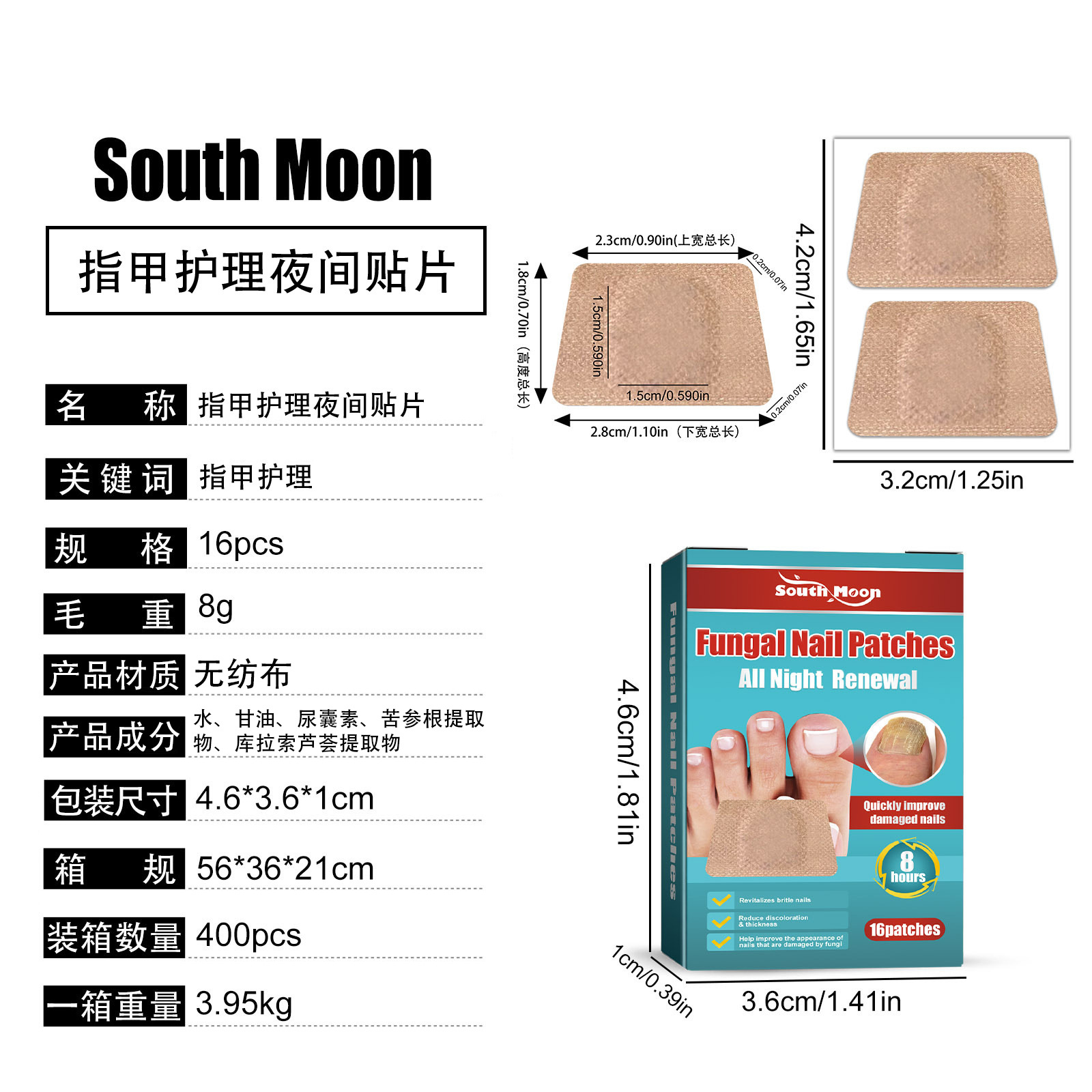 South Moon 指甲护理夜间贴片 指甲滋润亮泽护理软甲增厚指甲贴