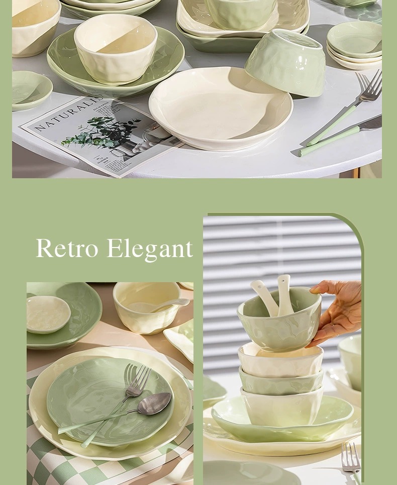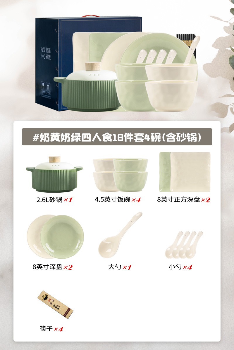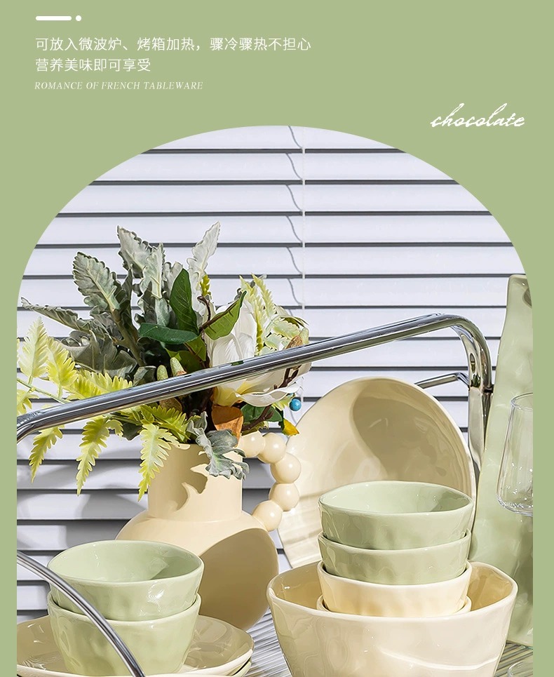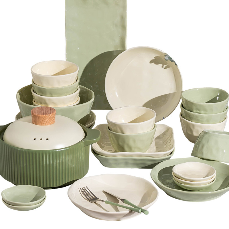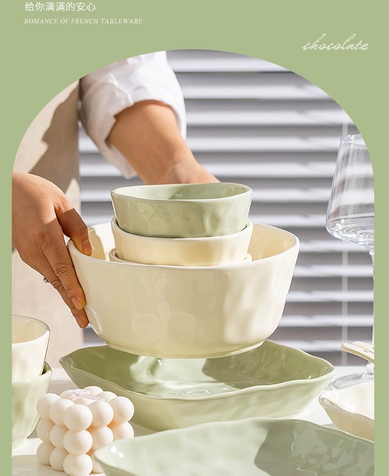 奶油风碗碟套装家用ins简约高颜值陶瓷碗筷碗盘乔迁餐具批发礼品