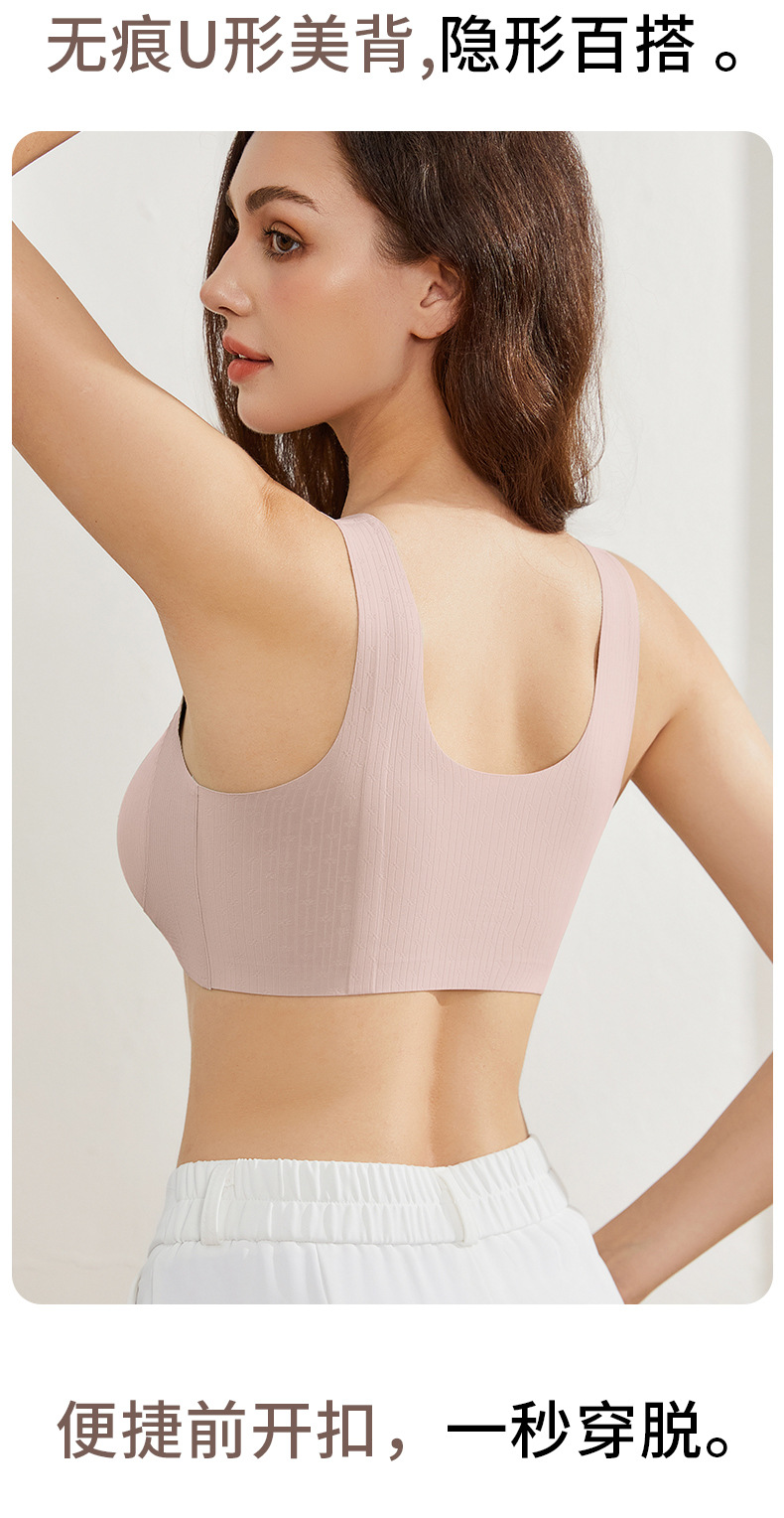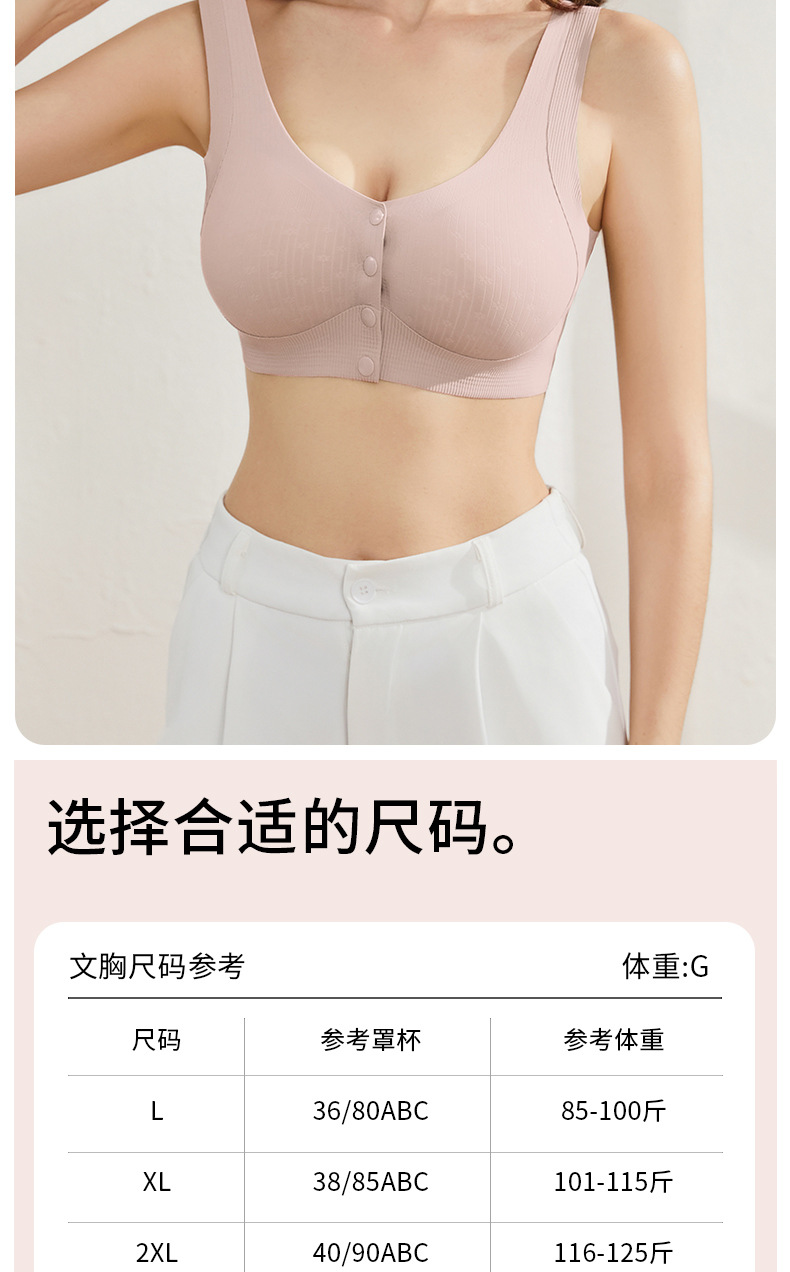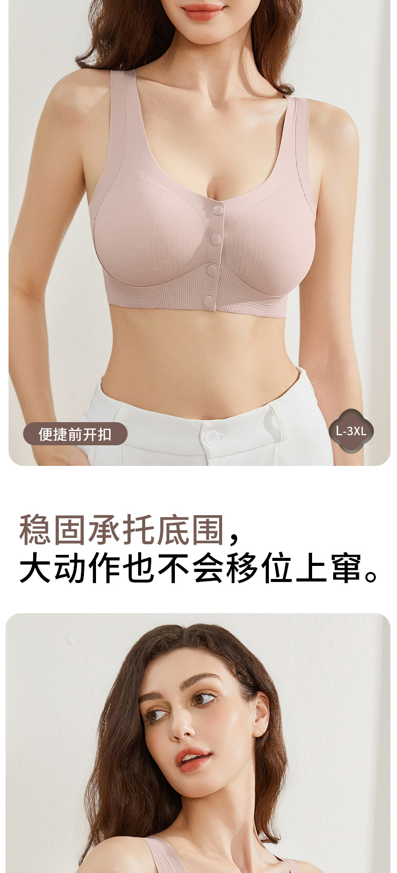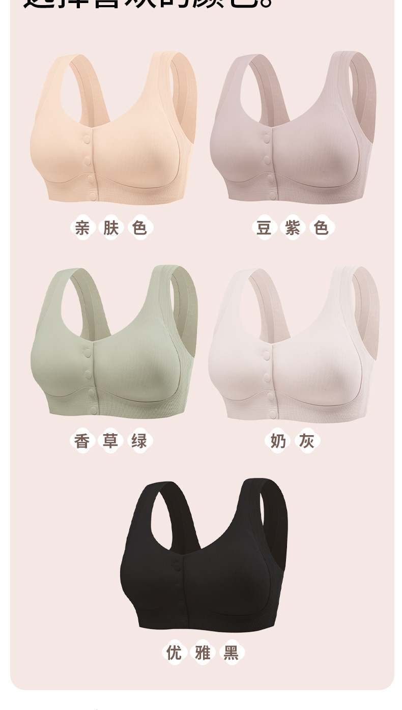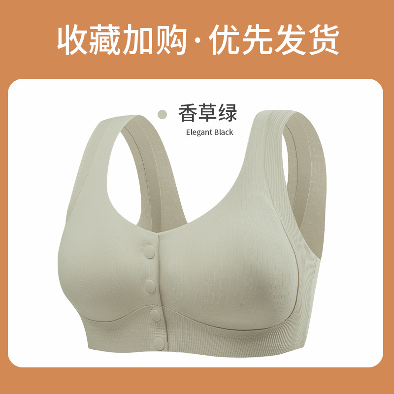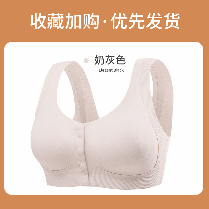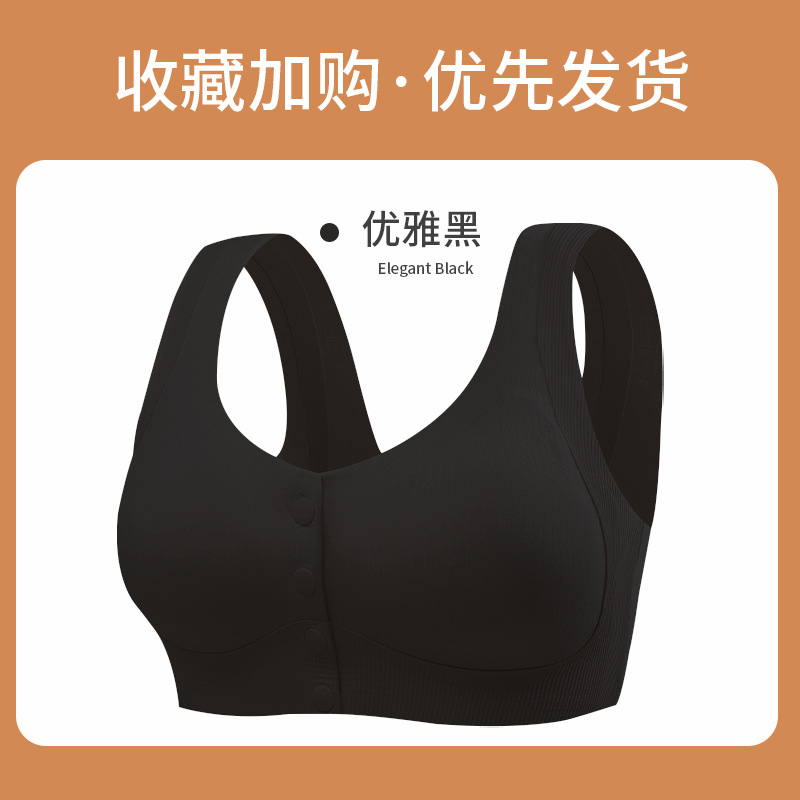 厂家现货直发无痕大码薄款前开扣固定杯无钢圈背心式中老年文胸罩