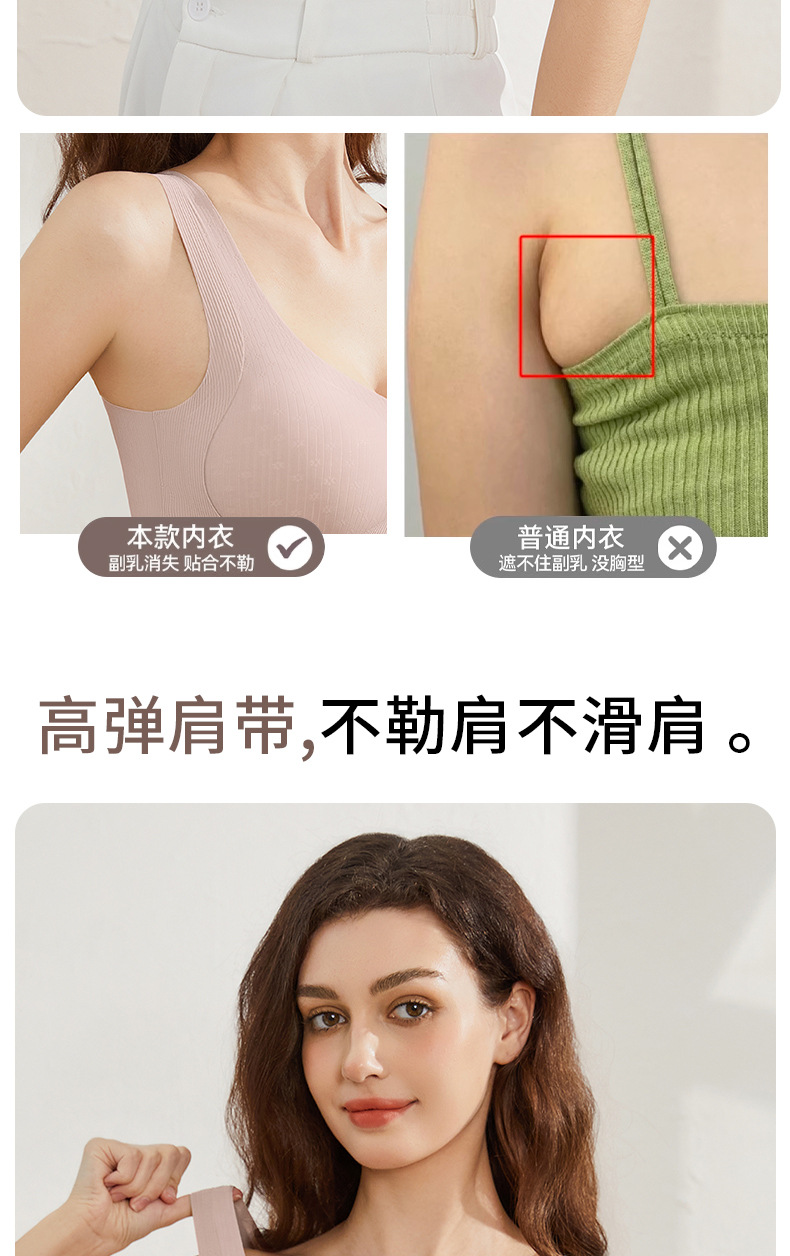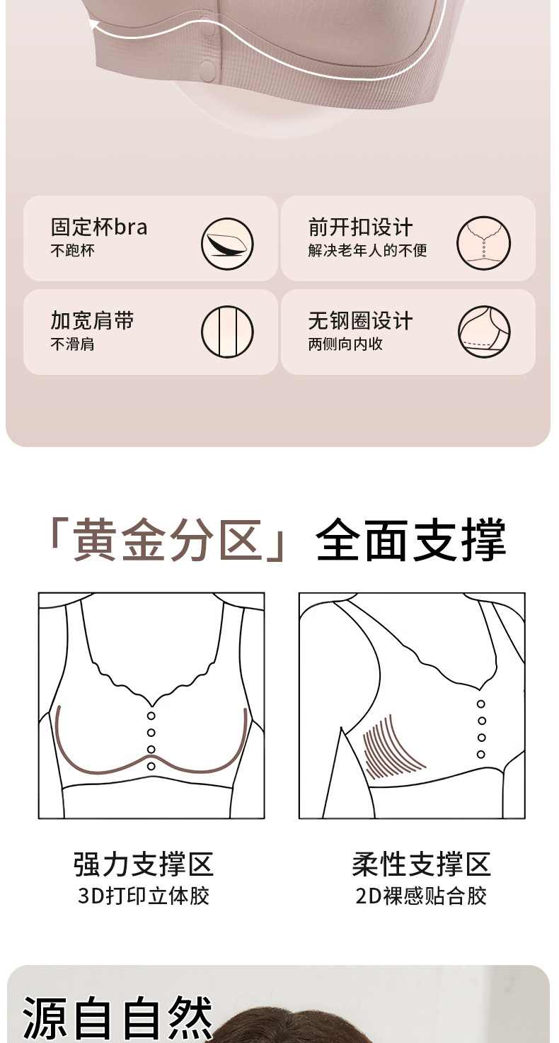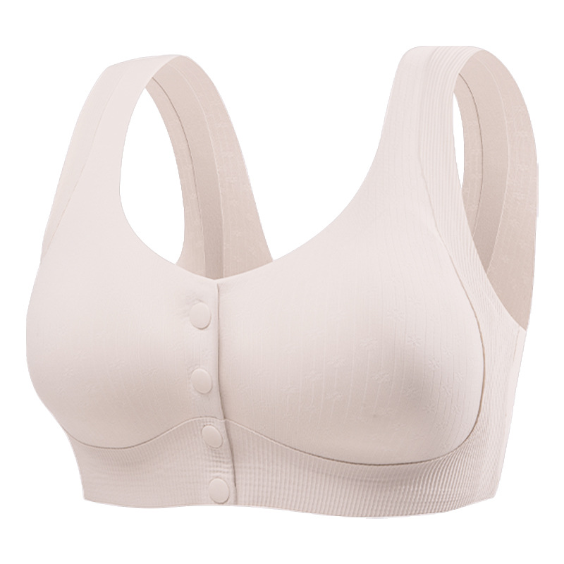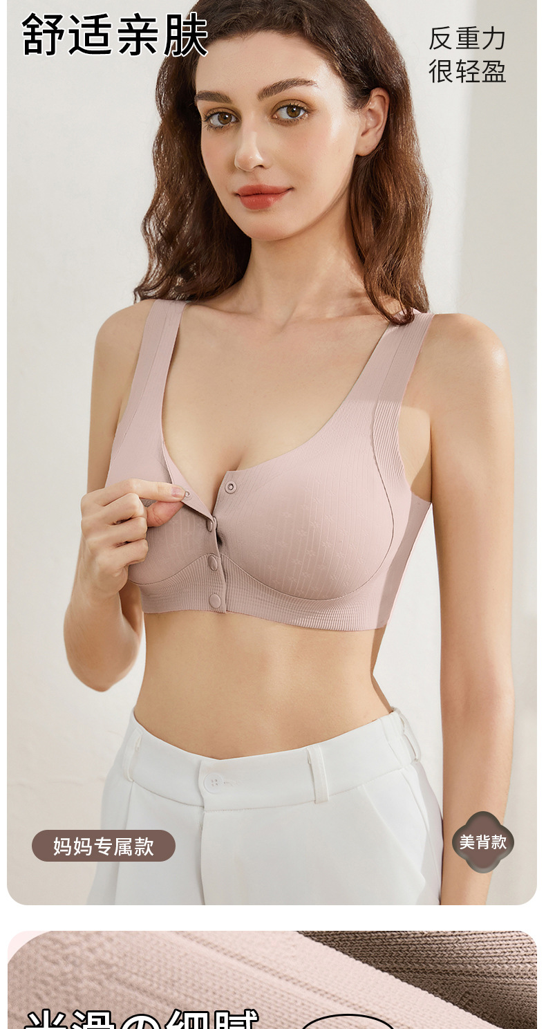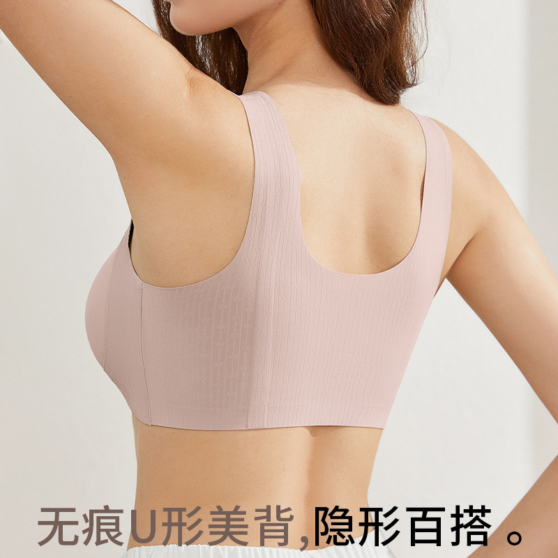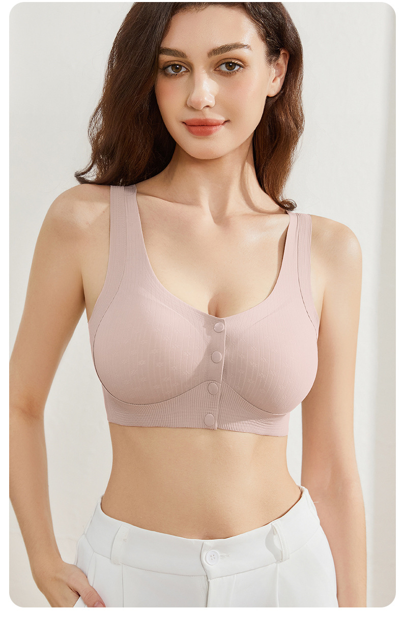 厂家现货直发无痕大码薄款前开扣固定杯无钢圈背心式中老年文胸罩
