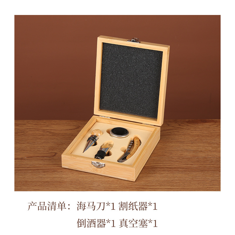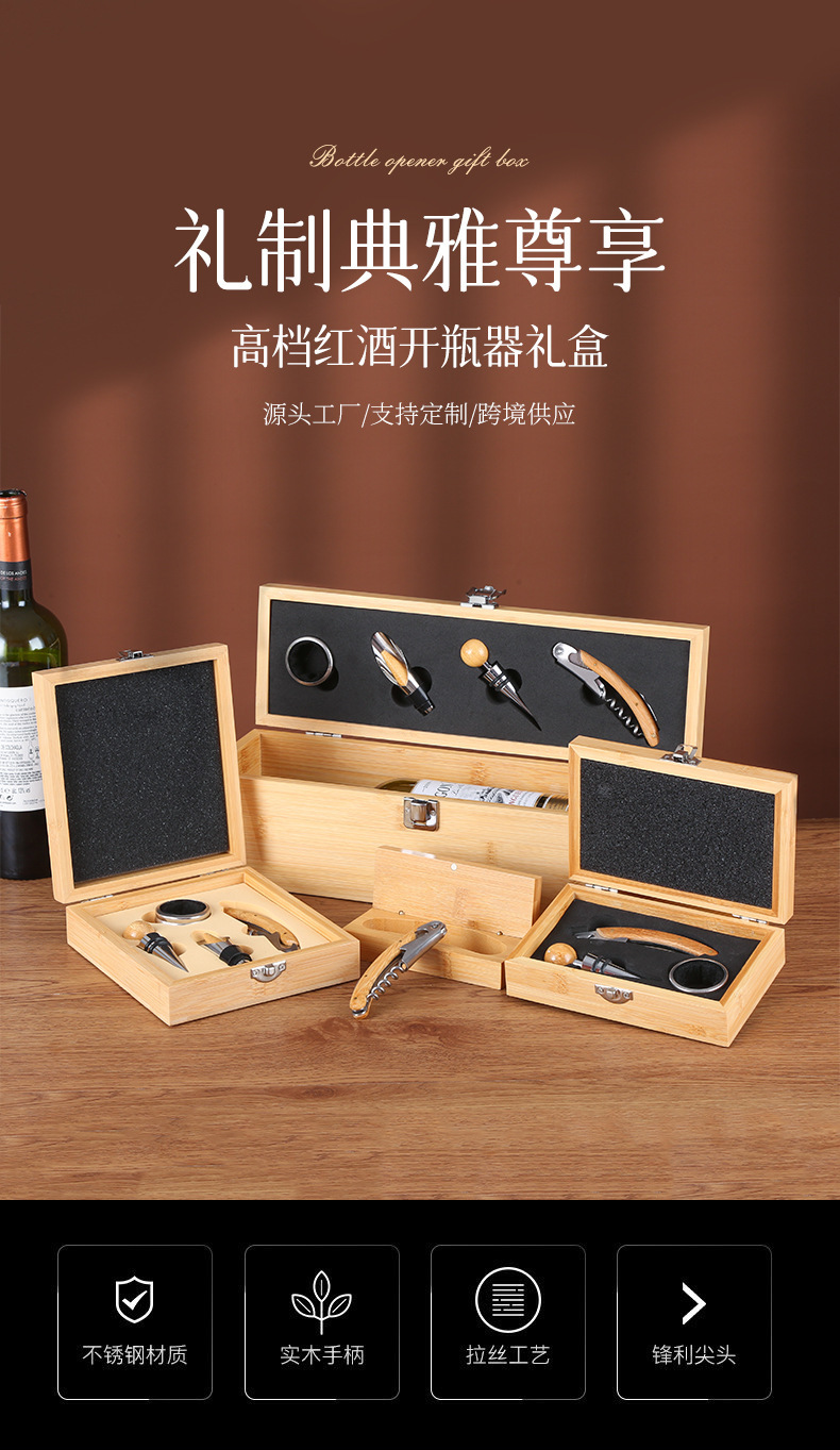 跨境高档红酒开瓶器礼盒套装葡萄酒开瓶器套装竹木红酒酒盒批发