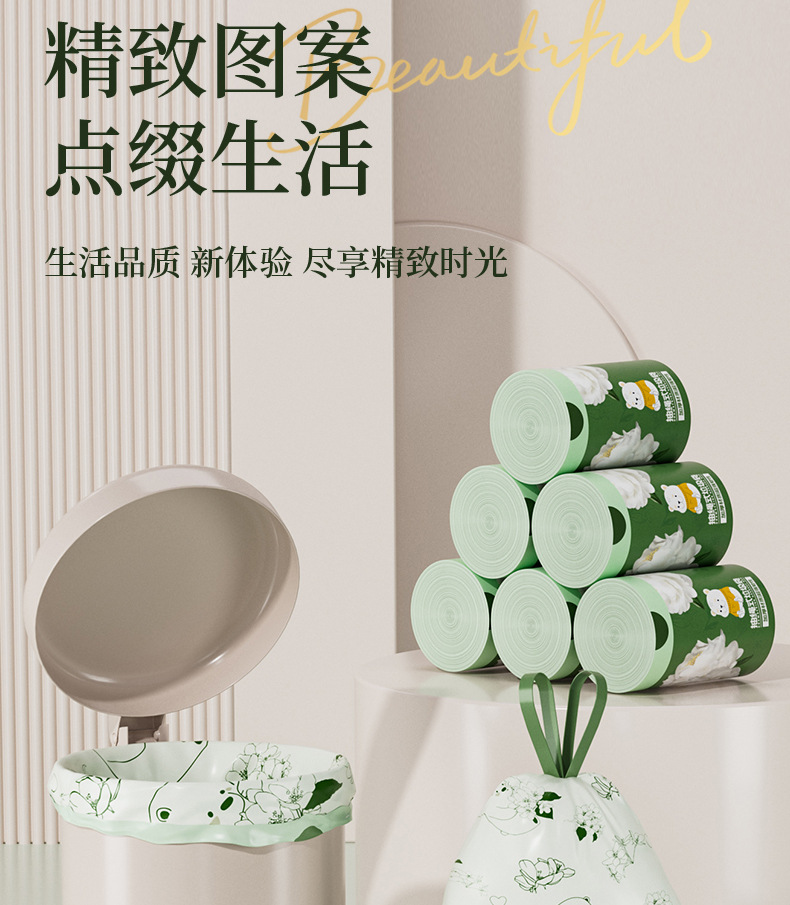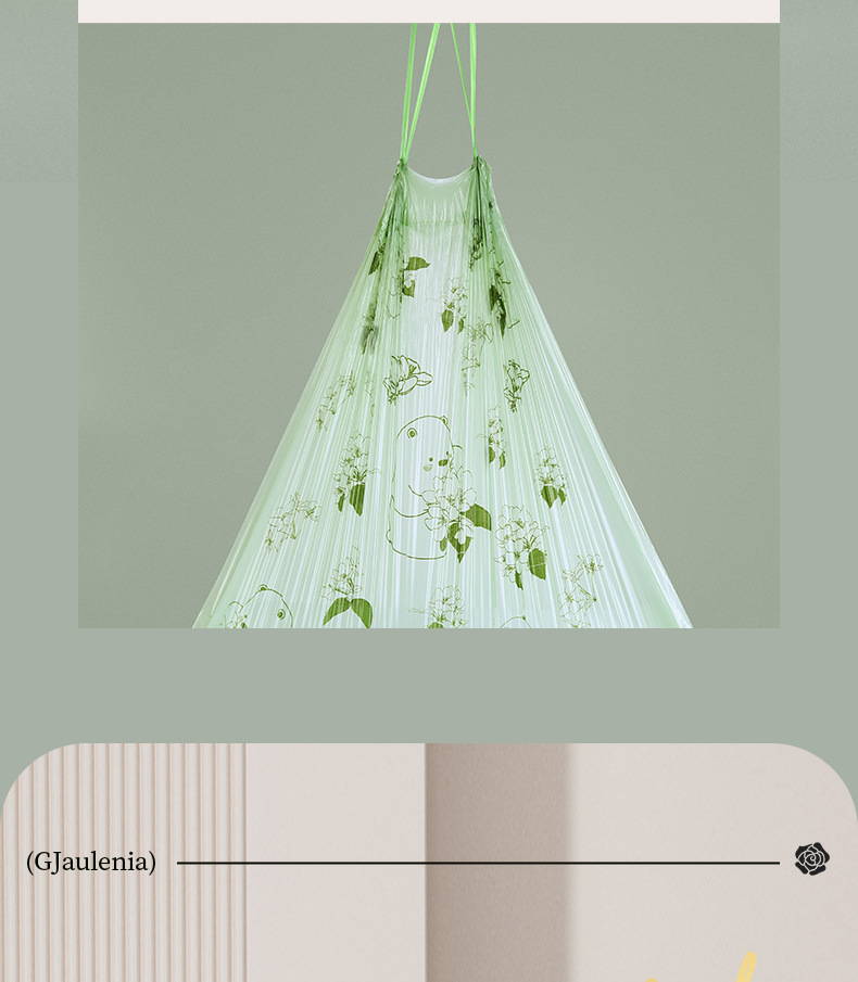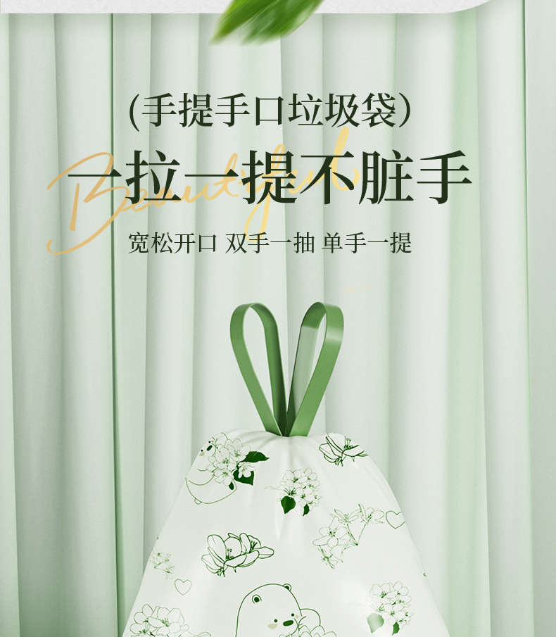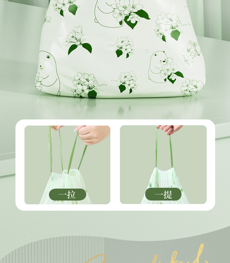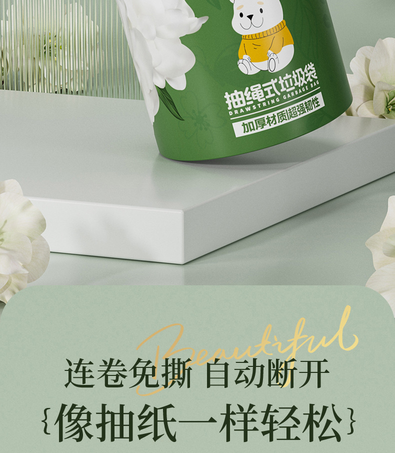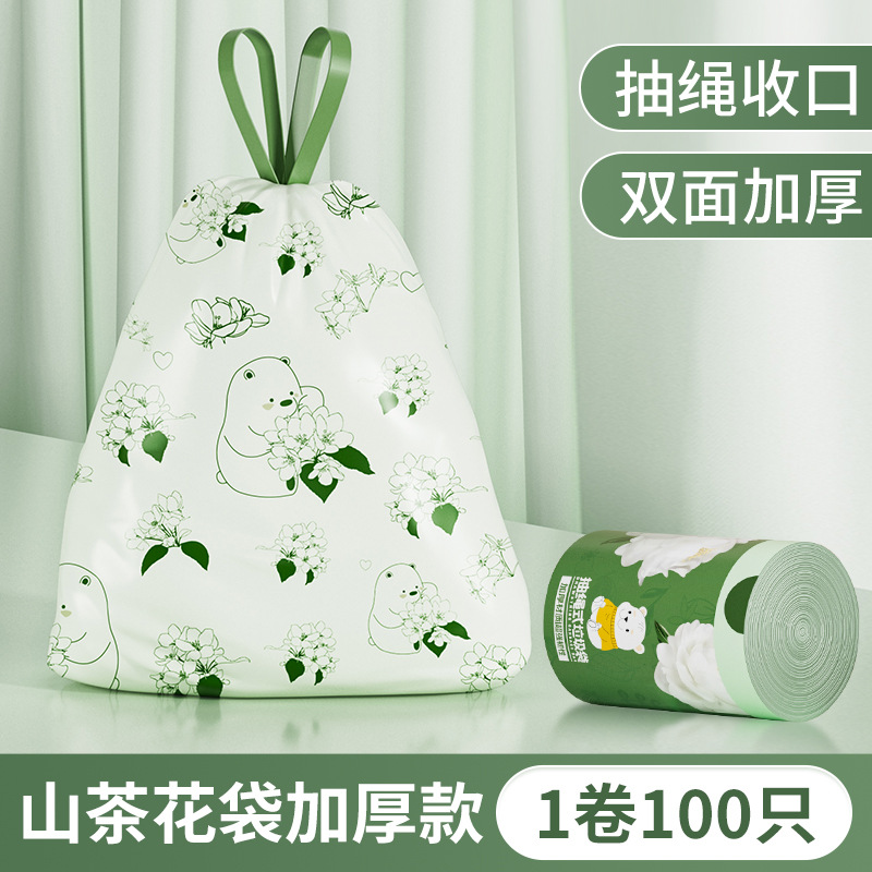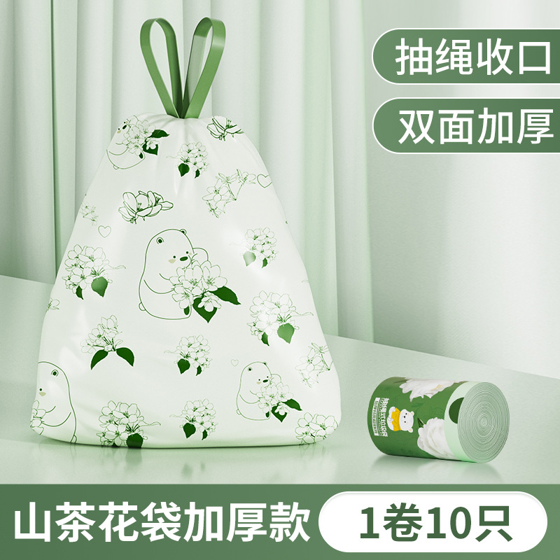 山茶花香氛免撕卡通抽绳垃圾袋特厚大卷加厚厨房家用除异味塑料袋