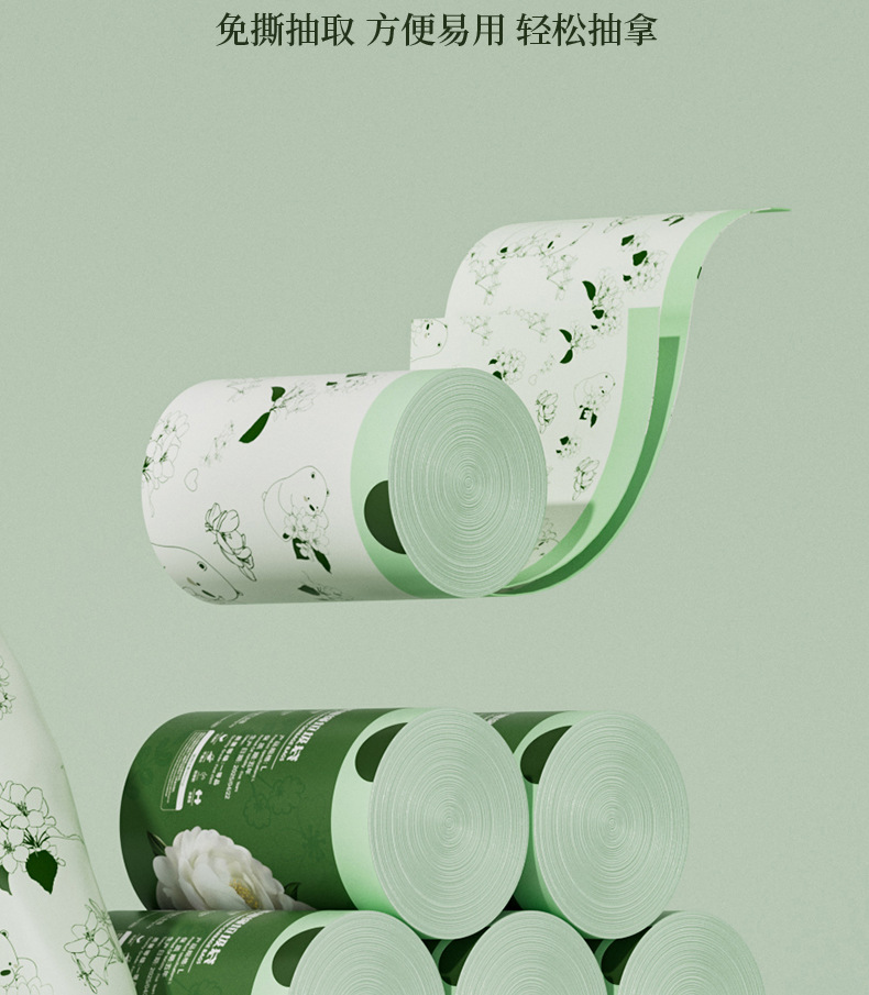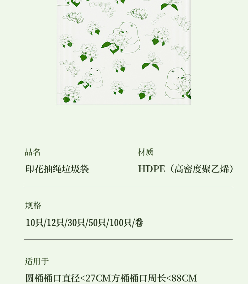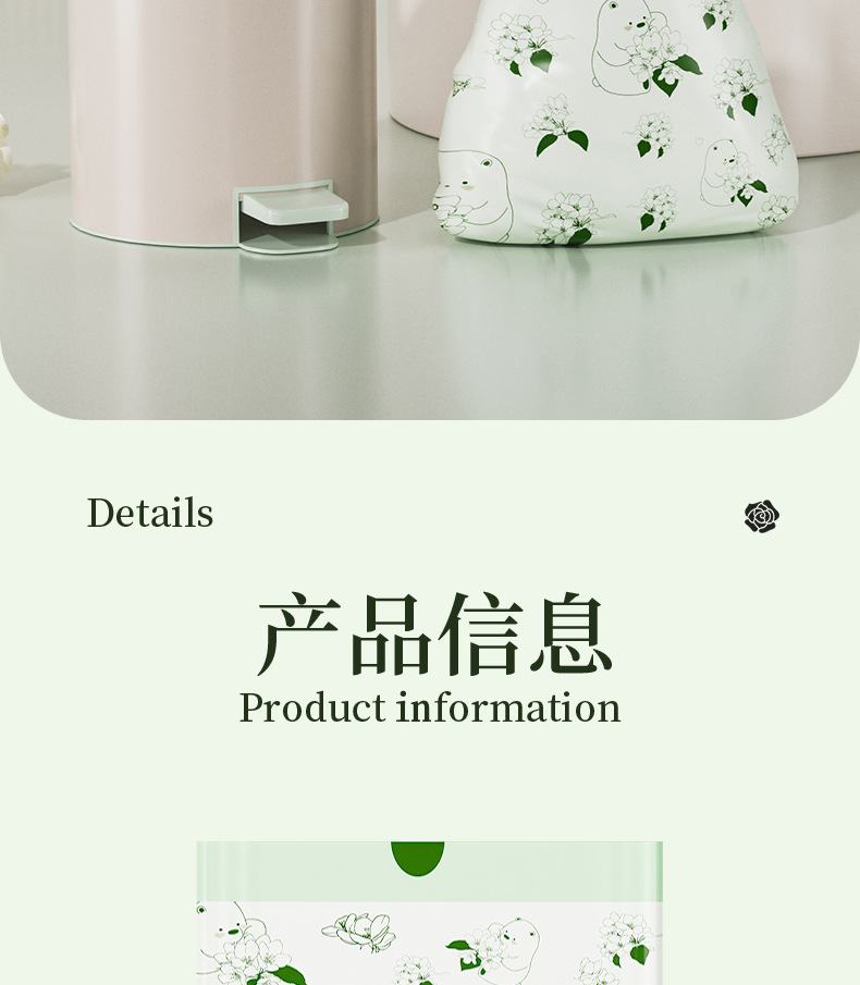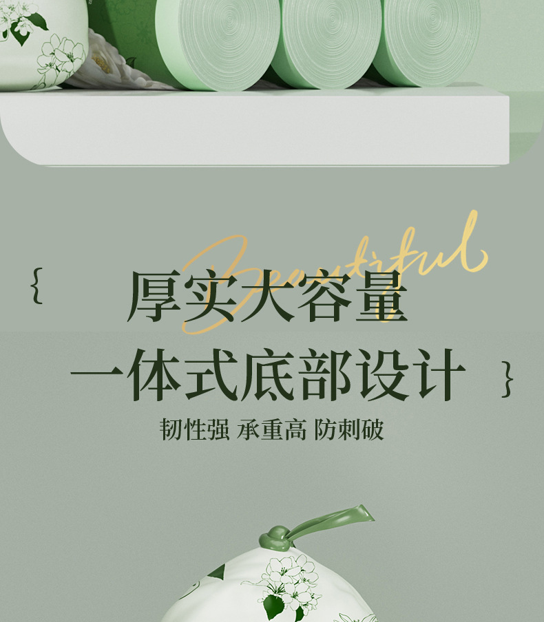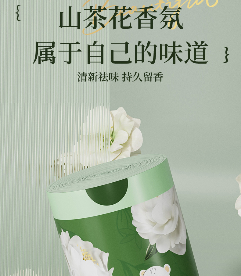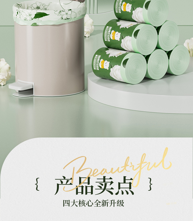山茶花香氛免撕卡通抽绳垃圾袋特厚大卷加厚厨房家用除异味塑料袋