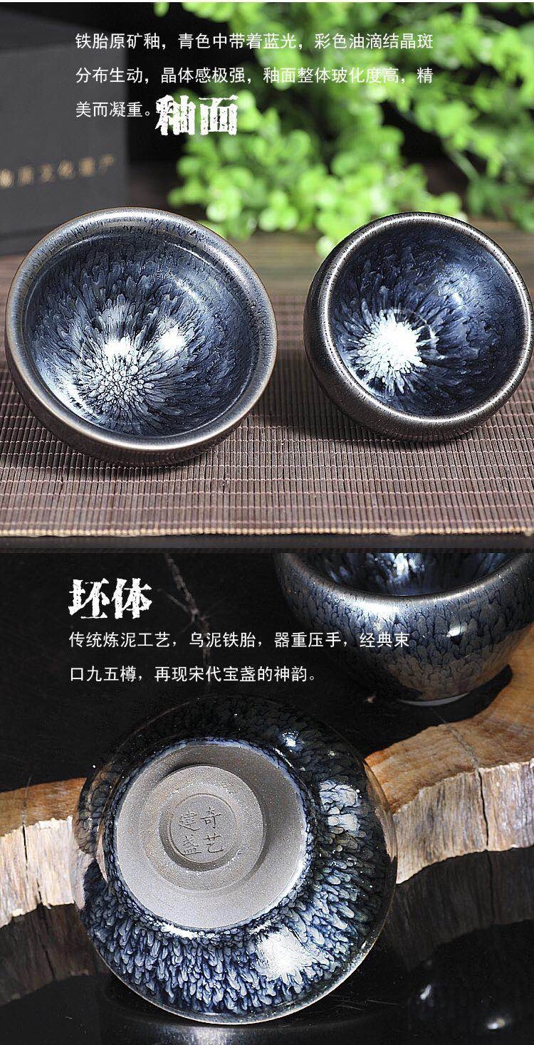 建盏茶杯主人杯大号中式铁胎茶盏建窑窑变天目茶碗百花盏杯厂跨境