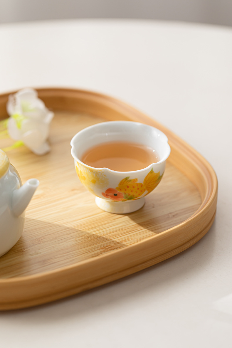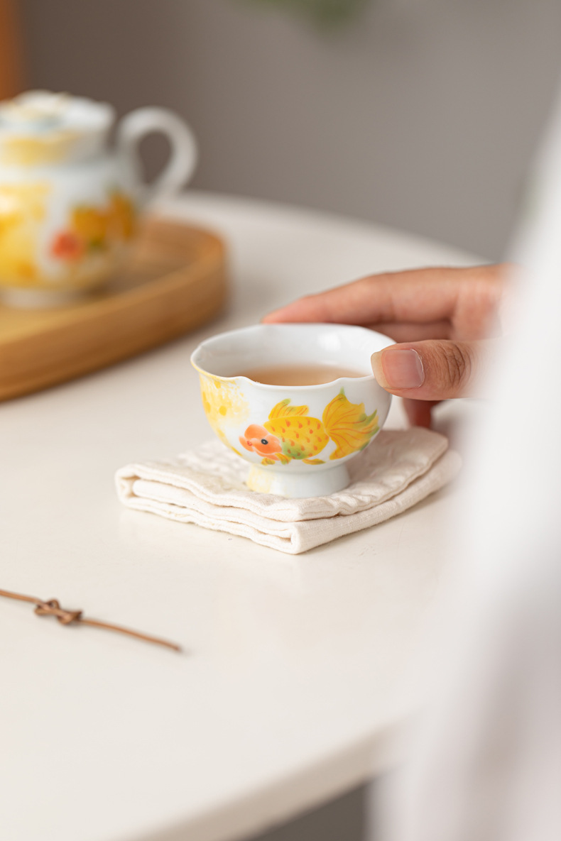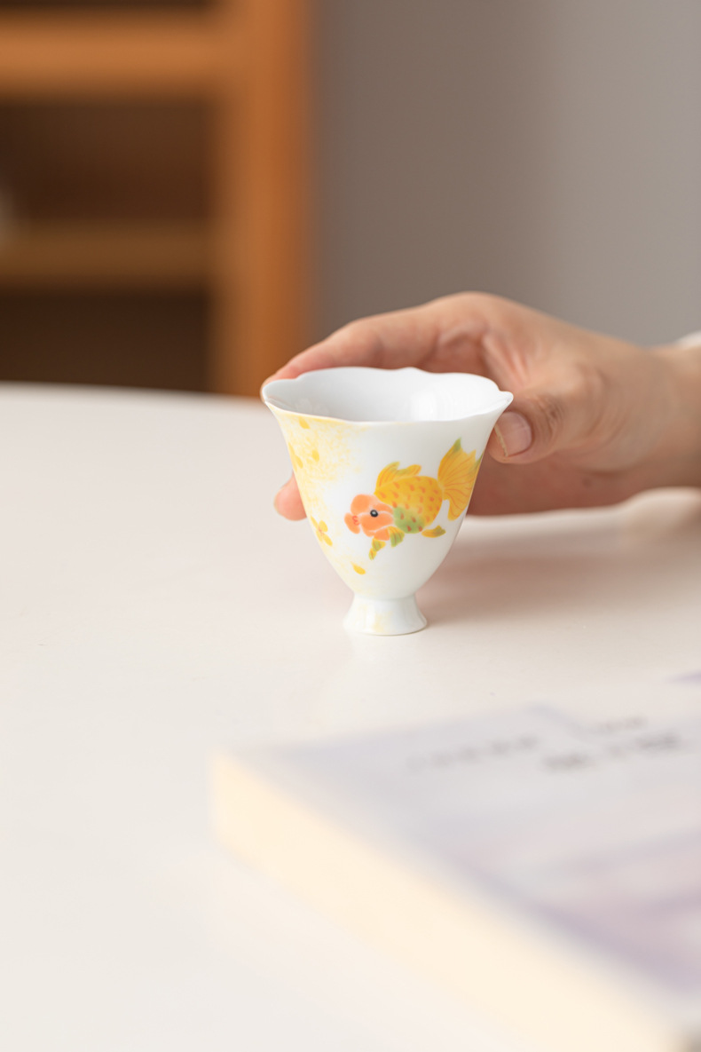 釉下彩手绘金鱼主人杯高足茶杯陶瓷功夫茶具家用单杯品茗杯闻香杯