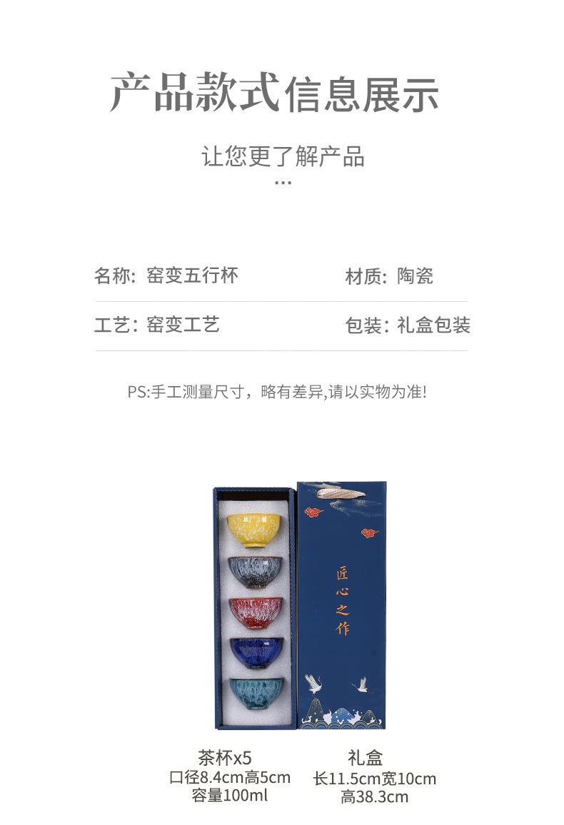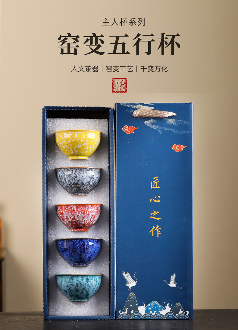 建盏五行杯窑变茶盏主人杯茶杯陶瓷功夫茶具茶碗套装家用直播礼品