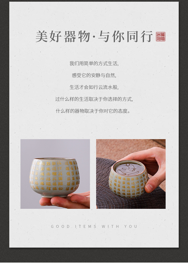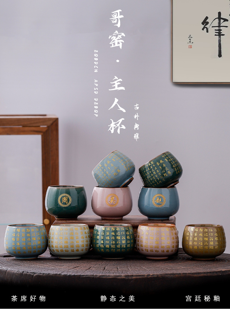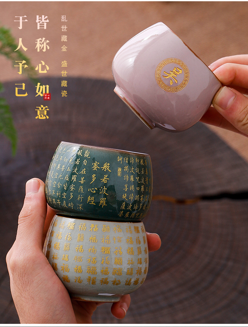 哥窑开片瓷主人杯心经大悲咒水杯喝茶品茗杯建盏杯个人大号描金杯