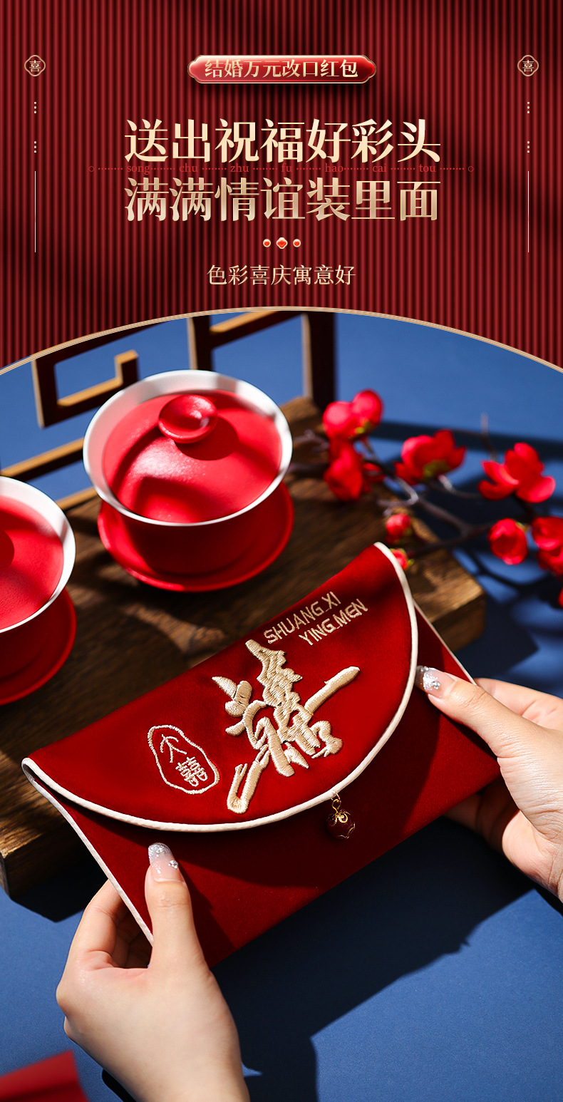 2025新款结婚红包专用父母回礼婚礼改口费万里挑一万元布艺红包袋