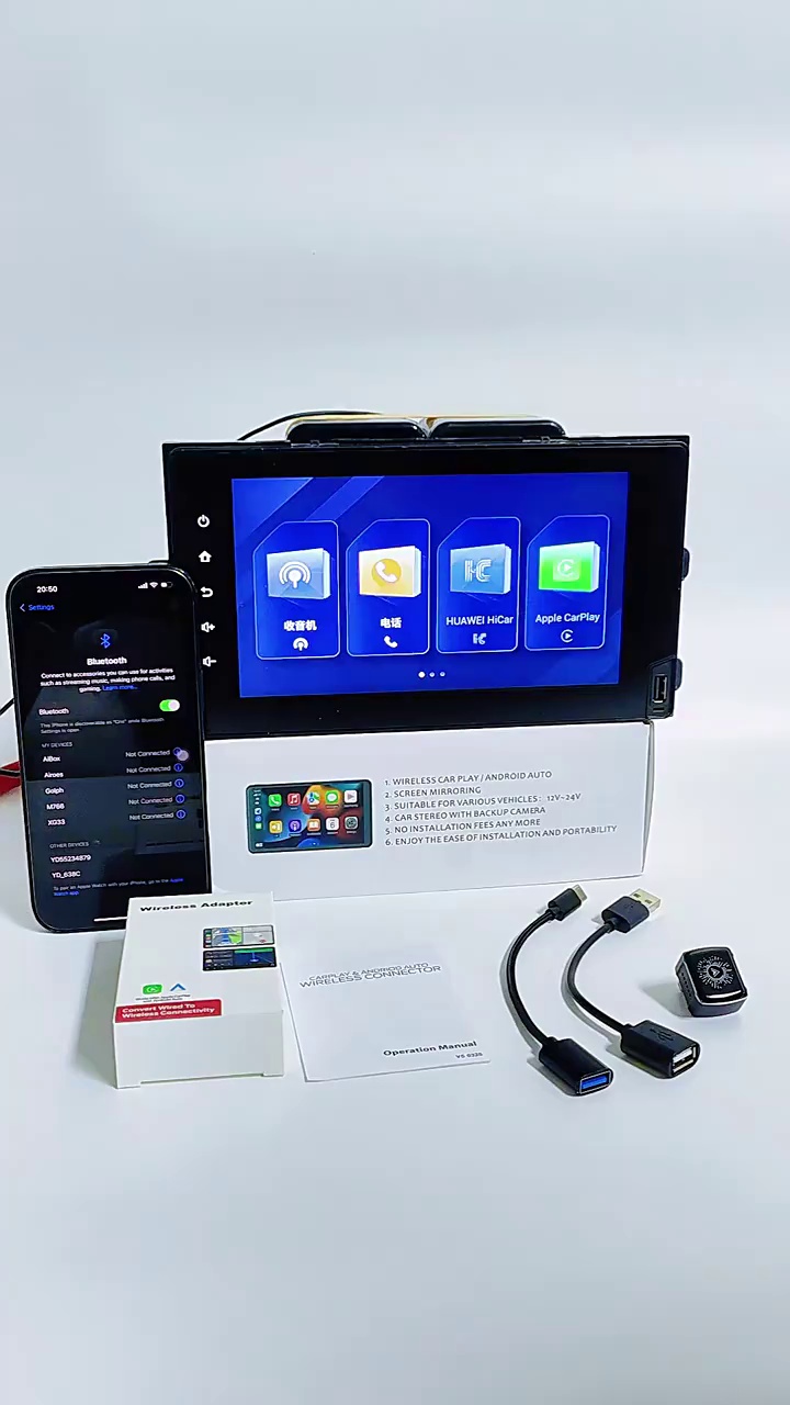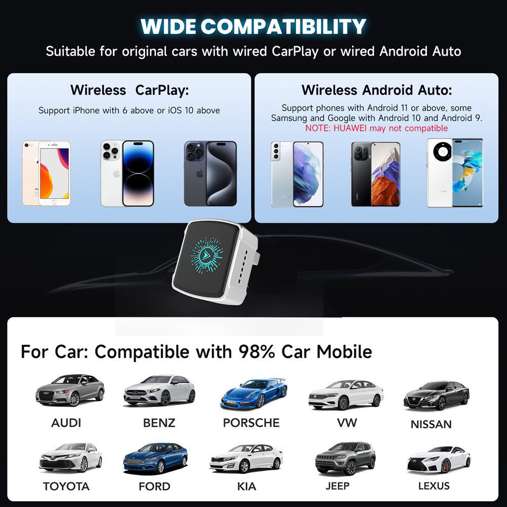 跨境金属无线carplay模块安卓Auto车机互联盒子2合1智能carplay盒