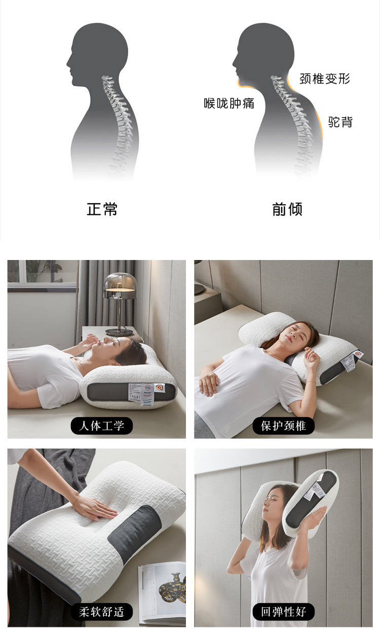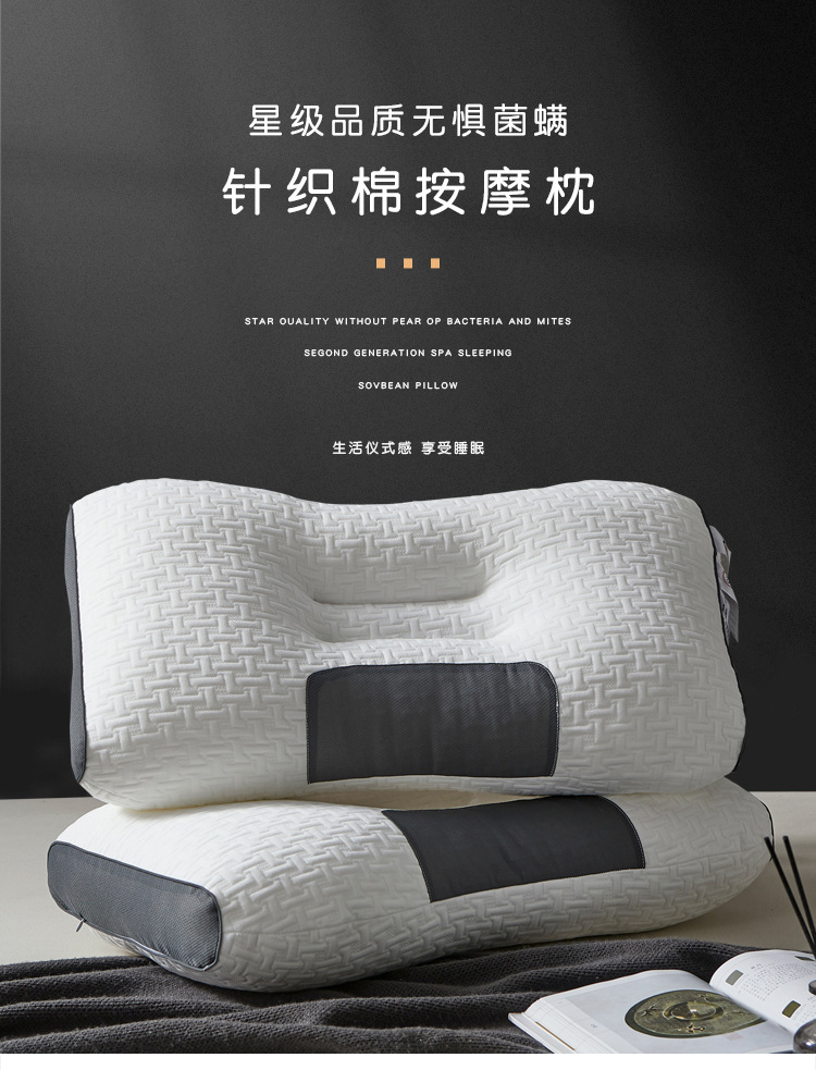 跨境专供护颈椎助睡眠扭花酒店骨头针织SPA枕头枕芯成人学生一对
