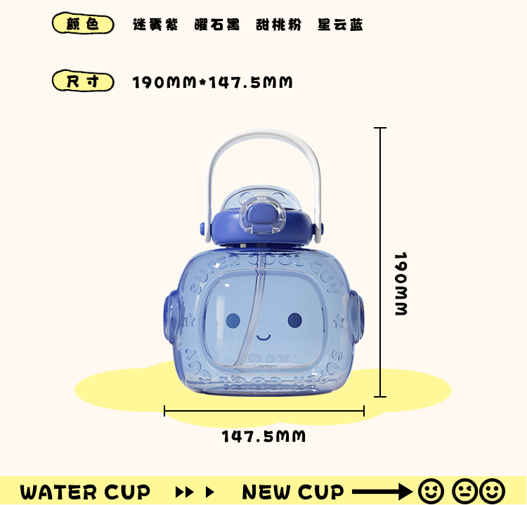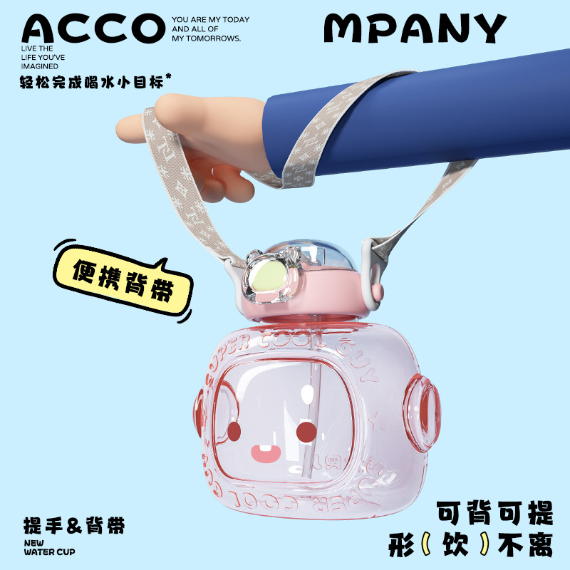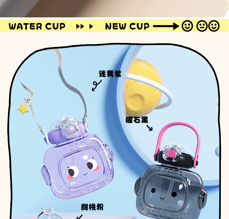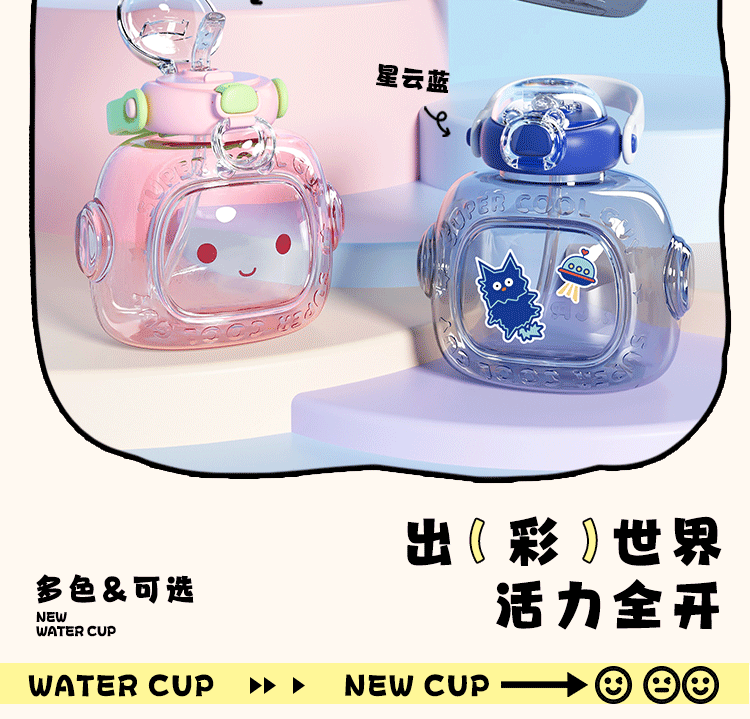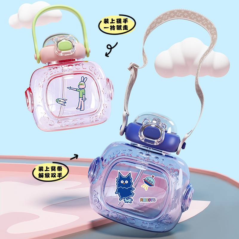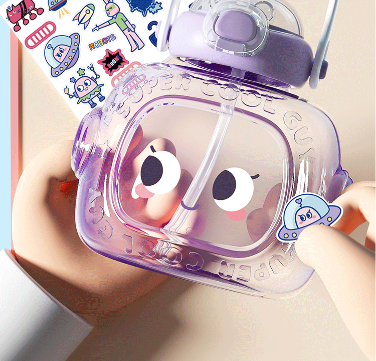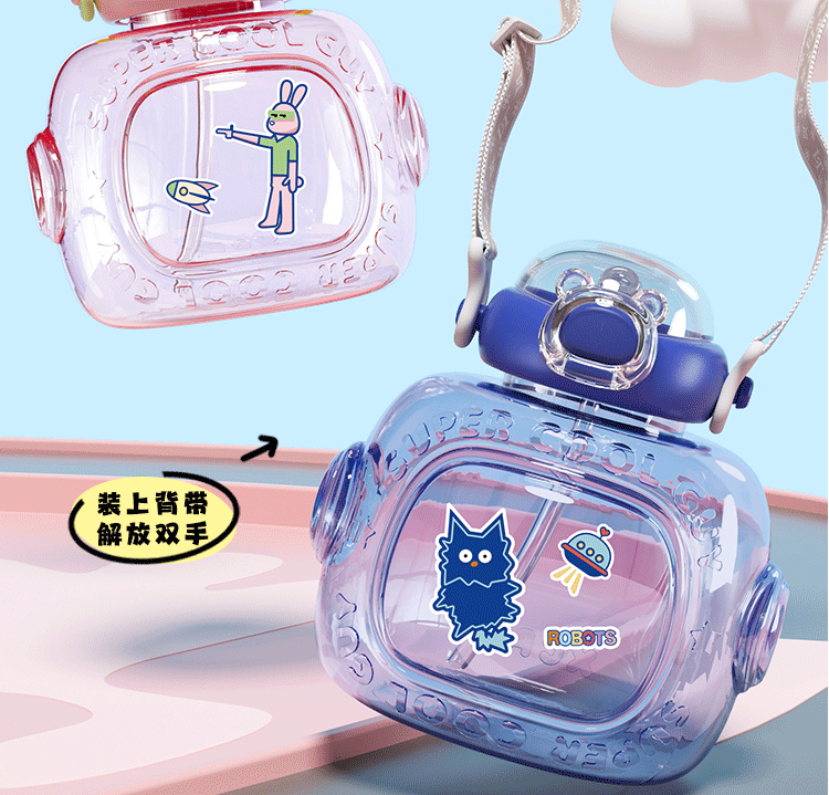 夏季水杯高颜值大容量儿童大肚杯学生便携塑料杯防摔机器人杯子