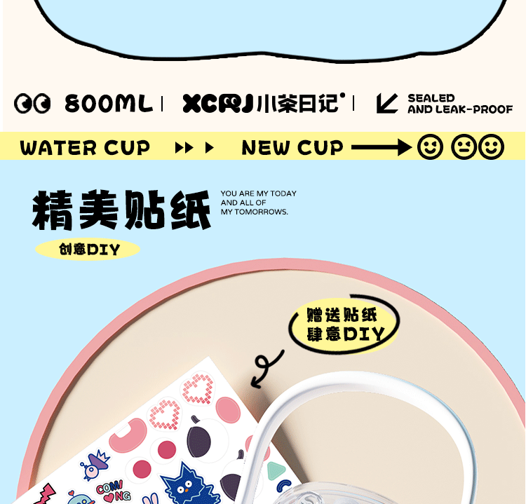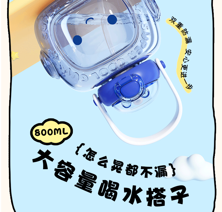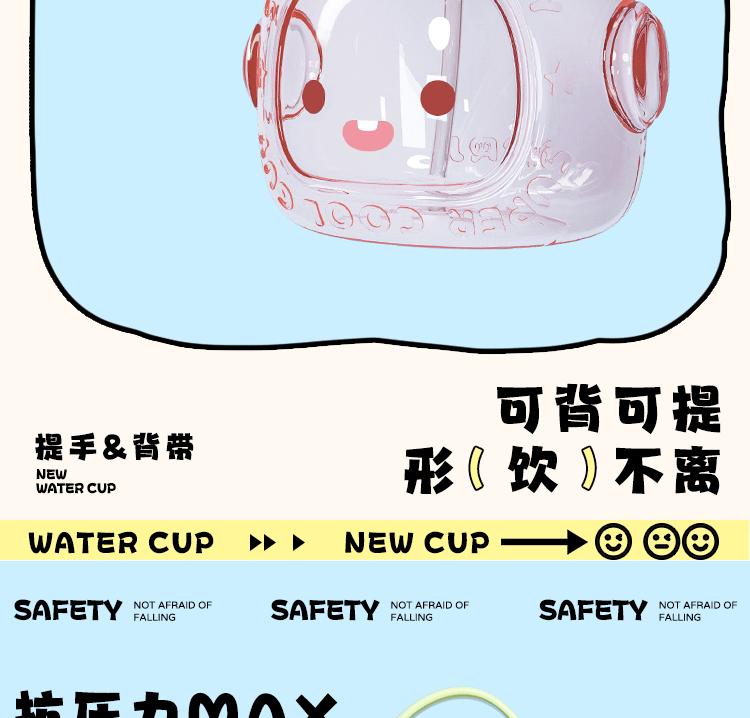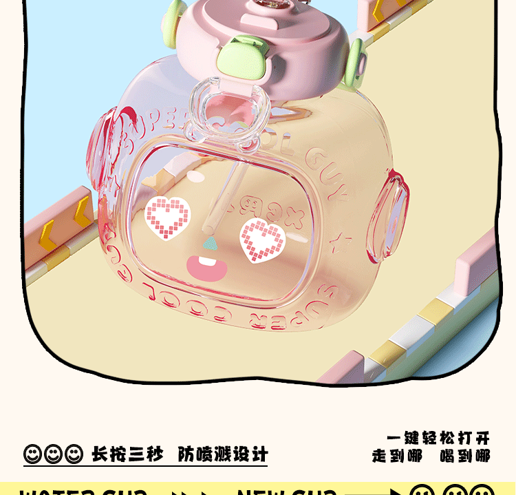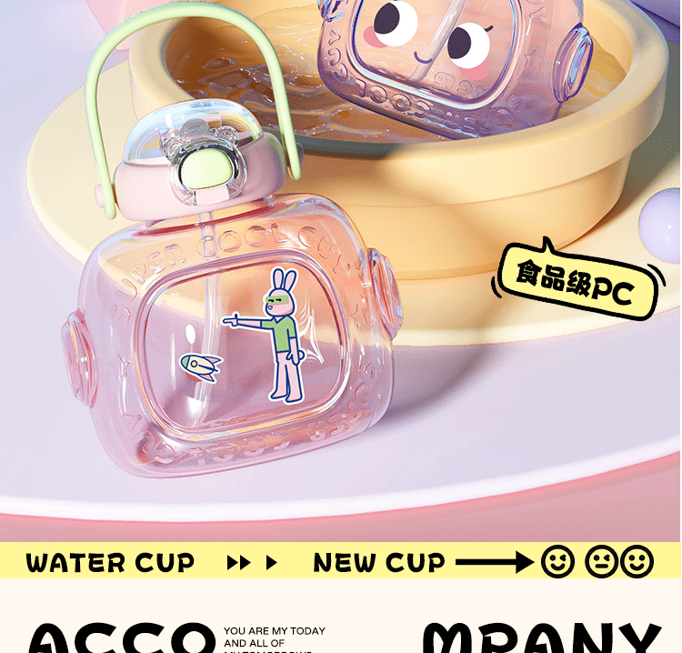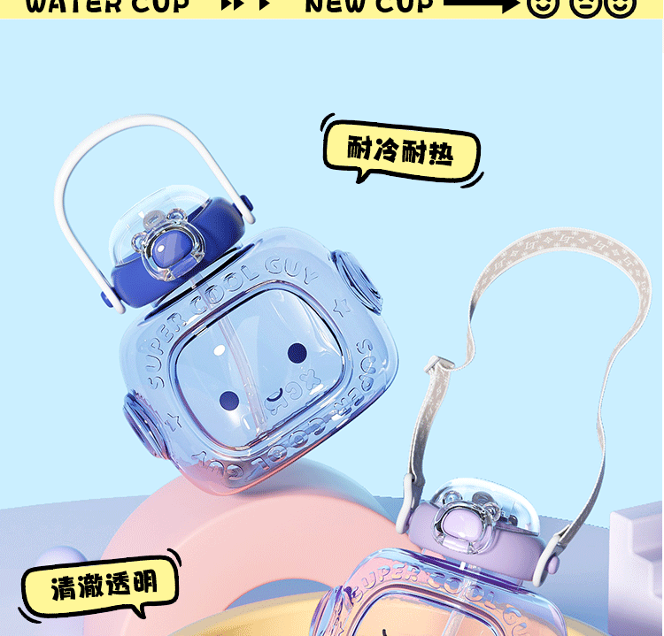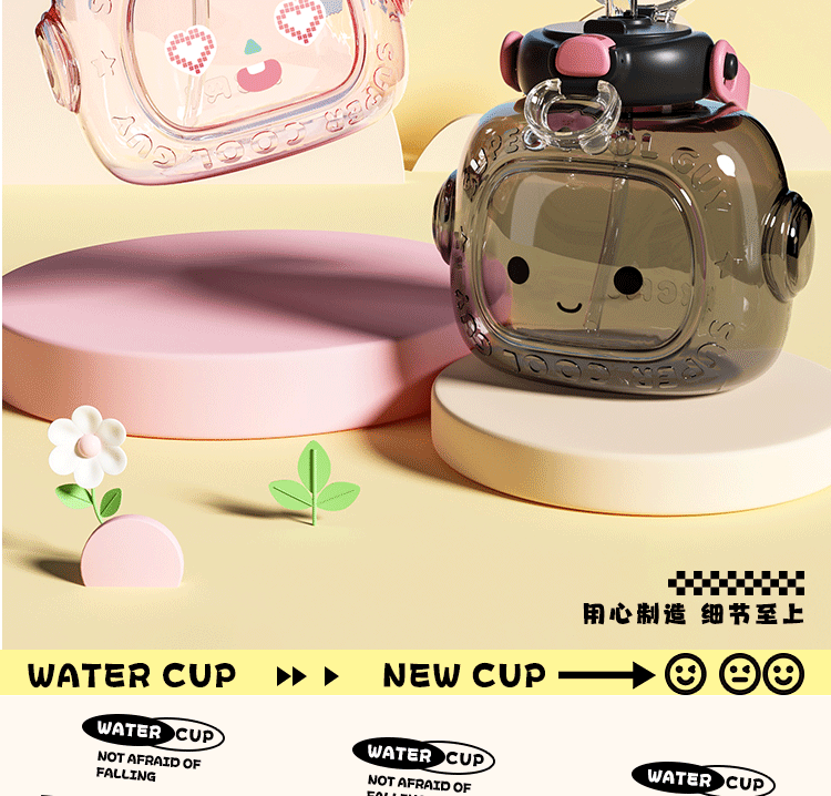 夏季水杯高颜值大容量儿童大肚杯学生便携塑料杯防摔机器人杯子