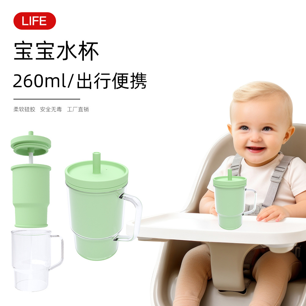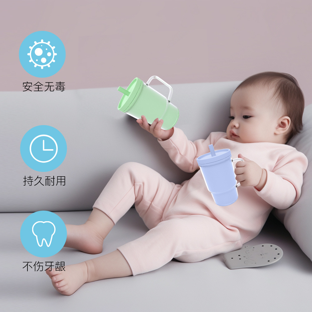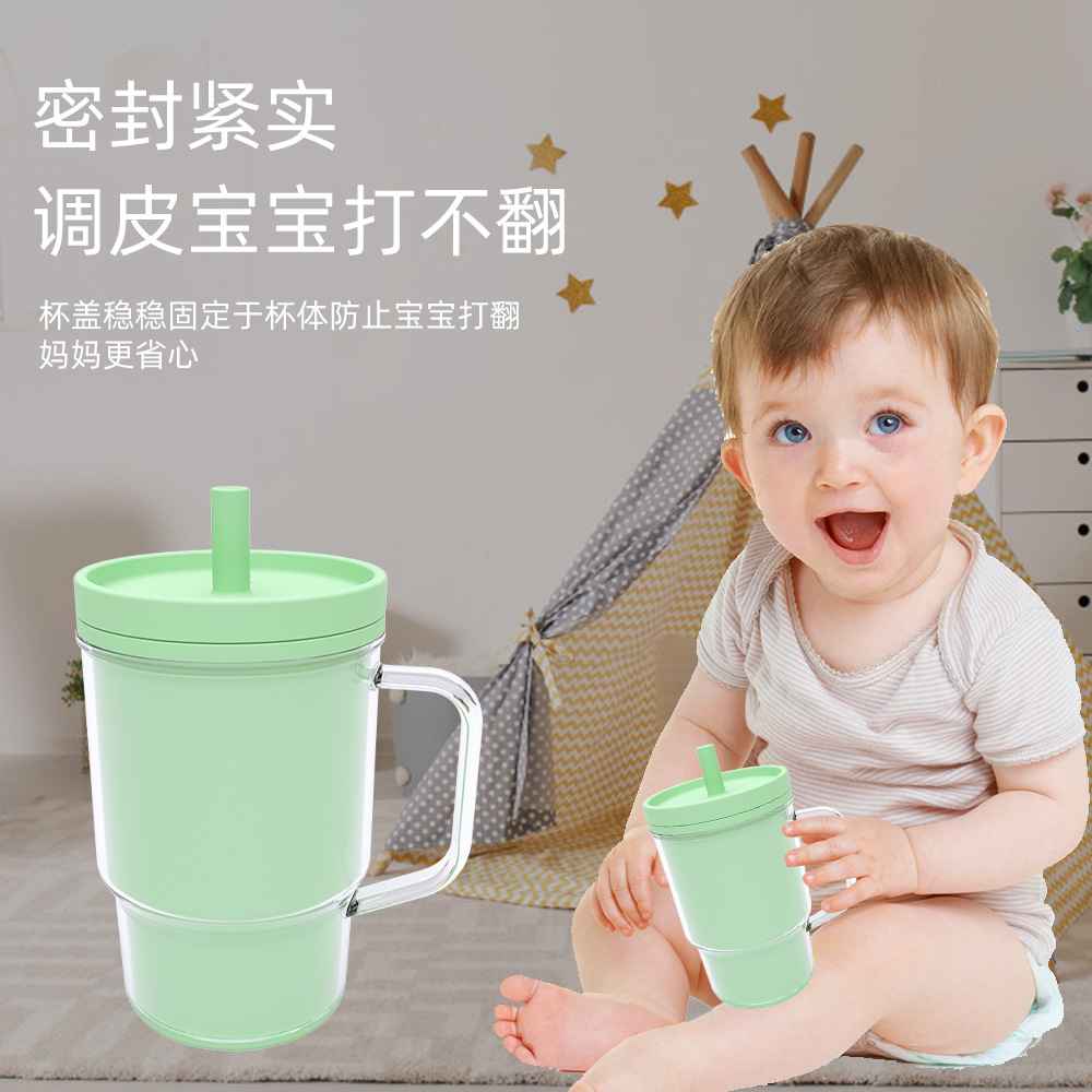 2025跨境新款儿童防漏马克杯Stanley 杯学饮杯硅胶防摔吸管水杯