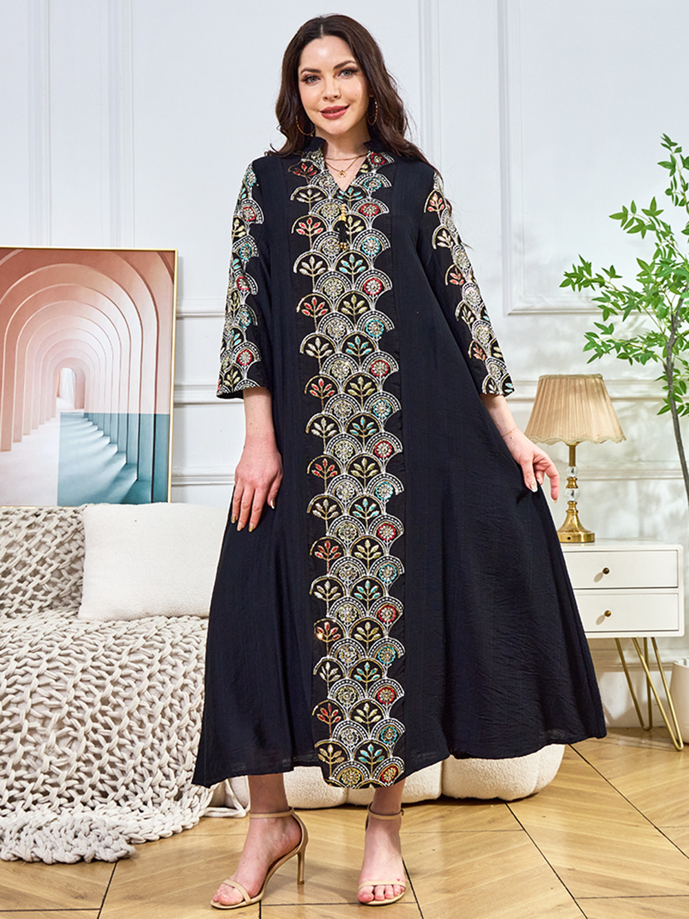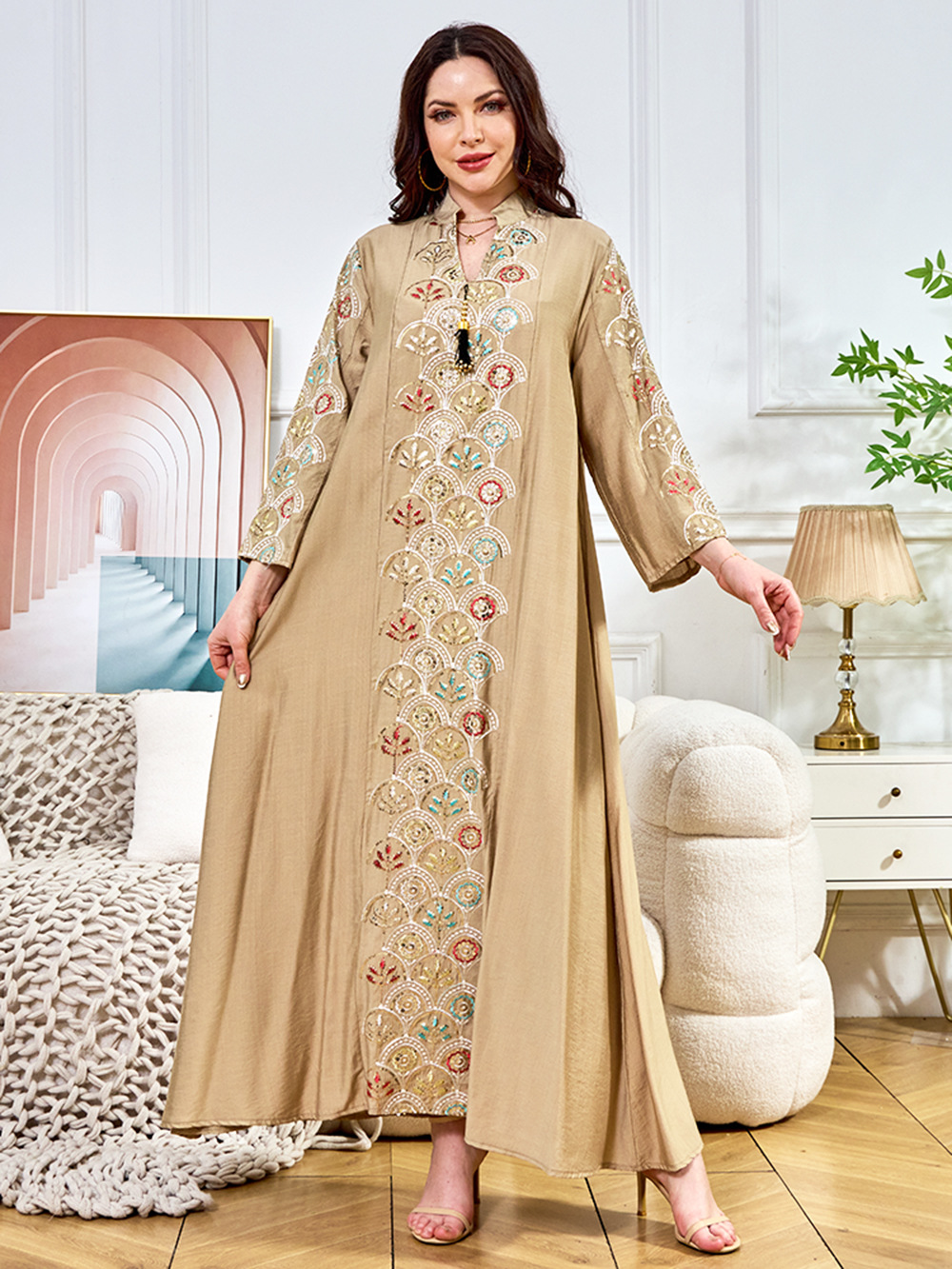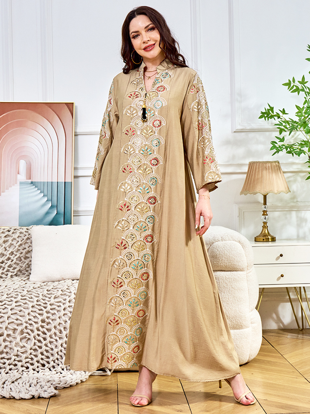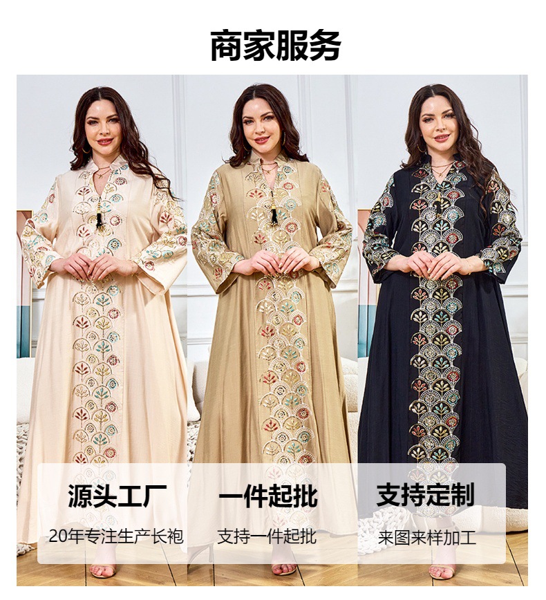 中东妇女的衣服新款珠片女装穆斯林长袍女长裙跨境外贸礼服连衣裙
