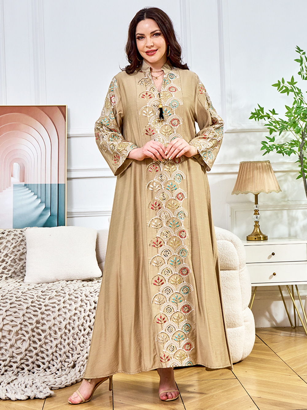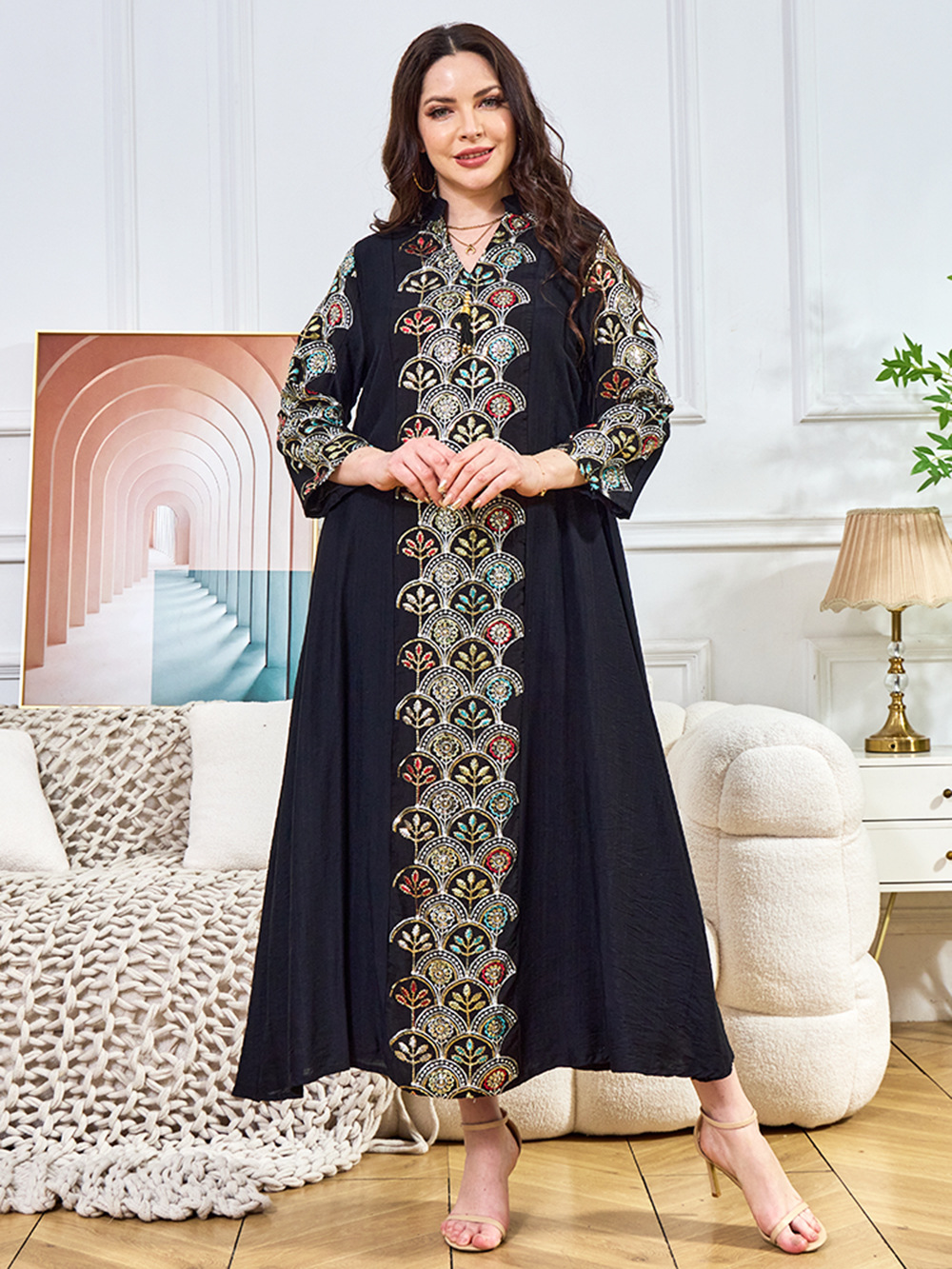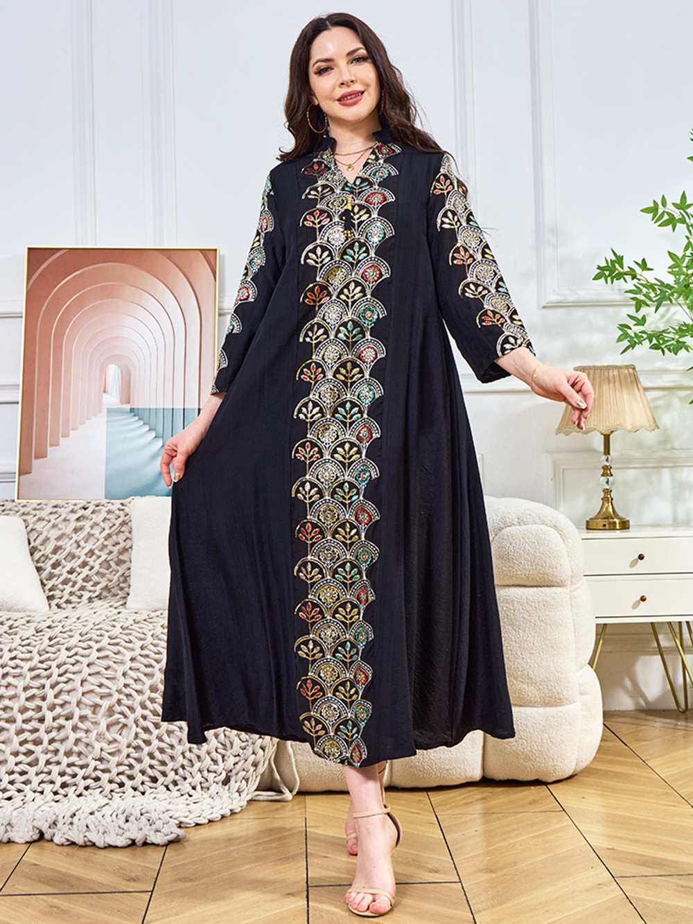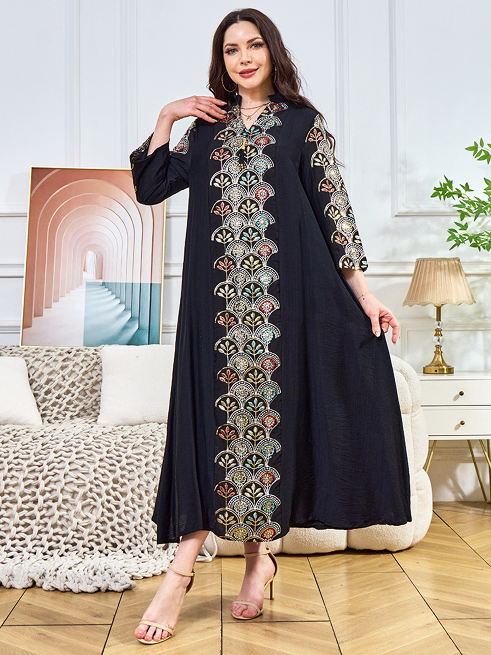 中东妇女的衣服新款珠片女装穆斯林长袍女长裙跨境外贸礼服连衣裙