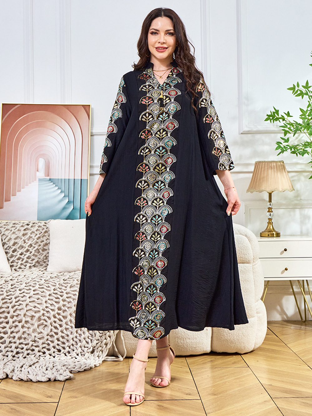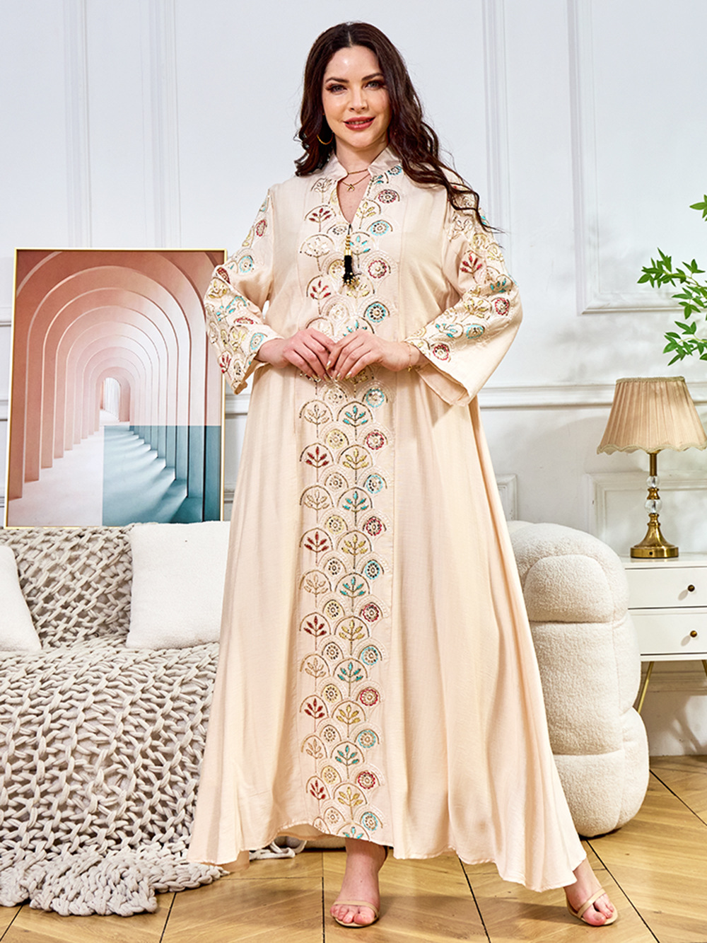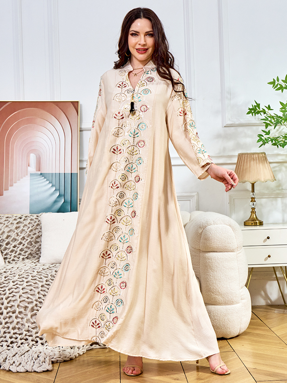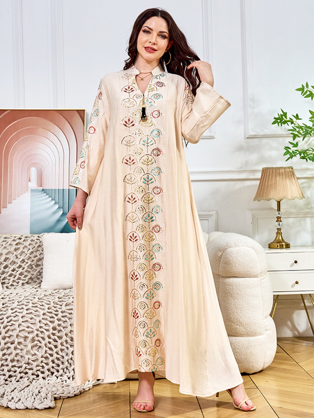 中东妇女的衣服新款珠片女装穆斯林长袍女长裙跨境外贸礼服连衣裙