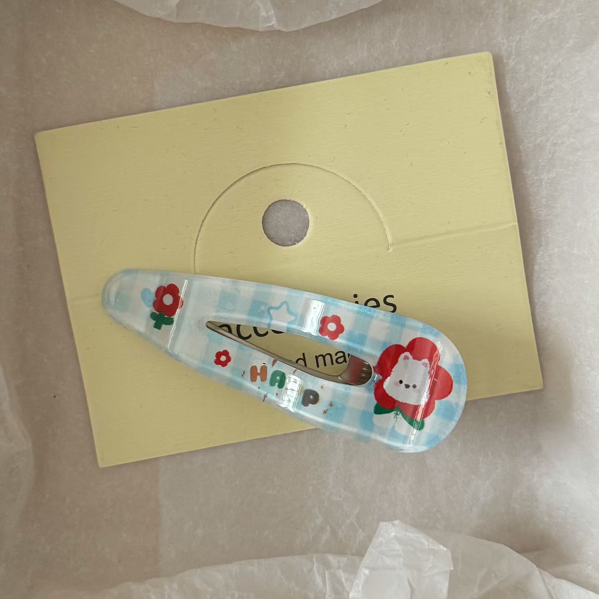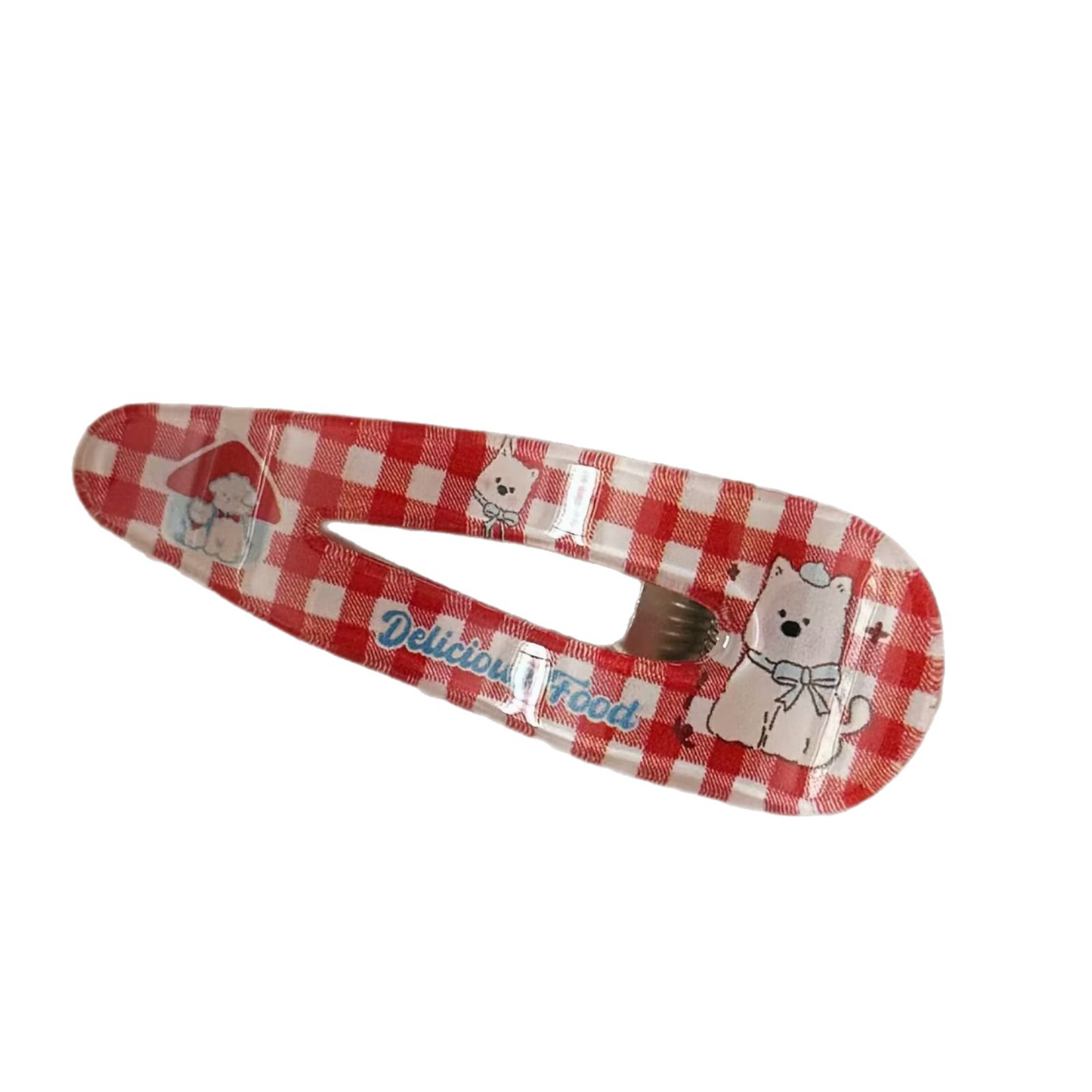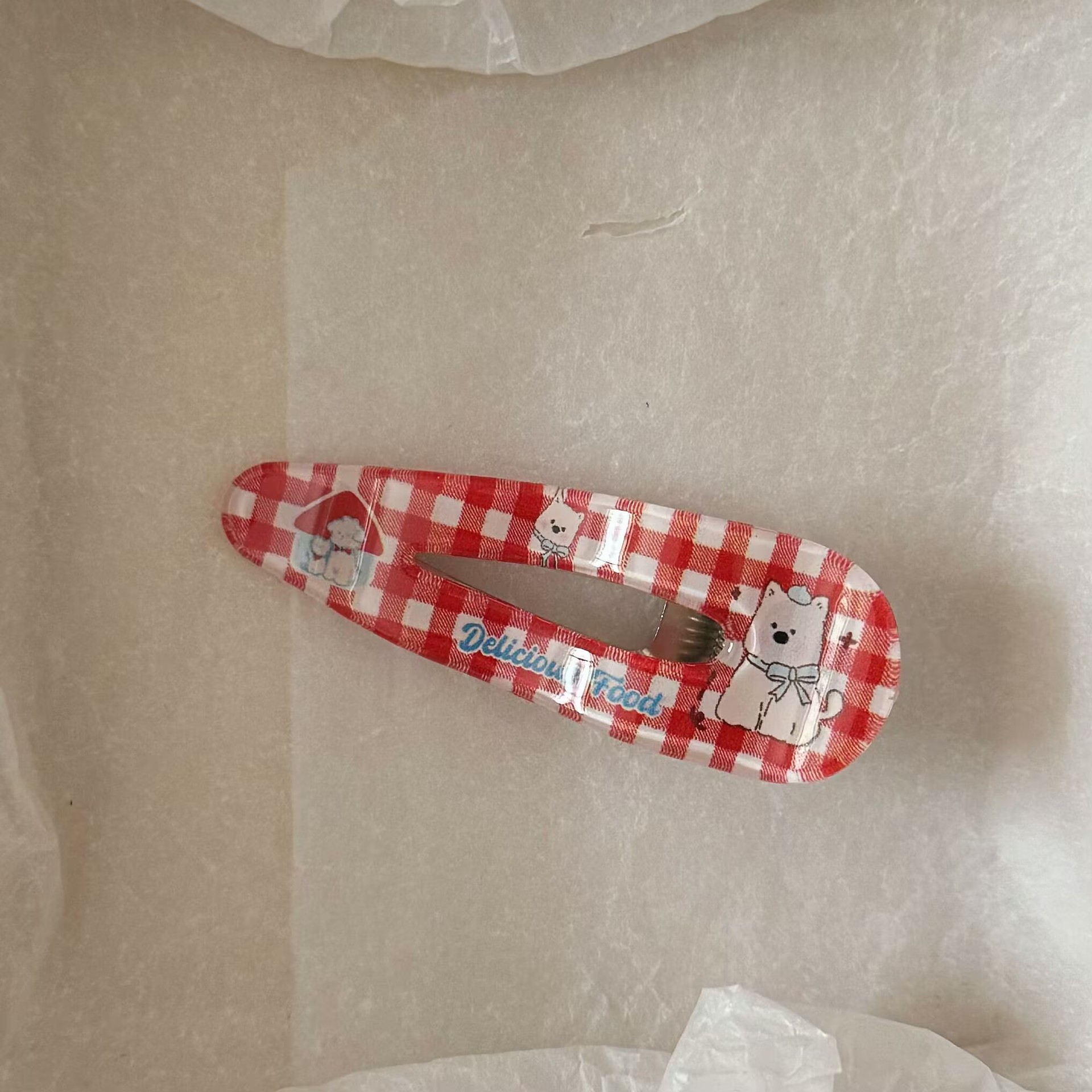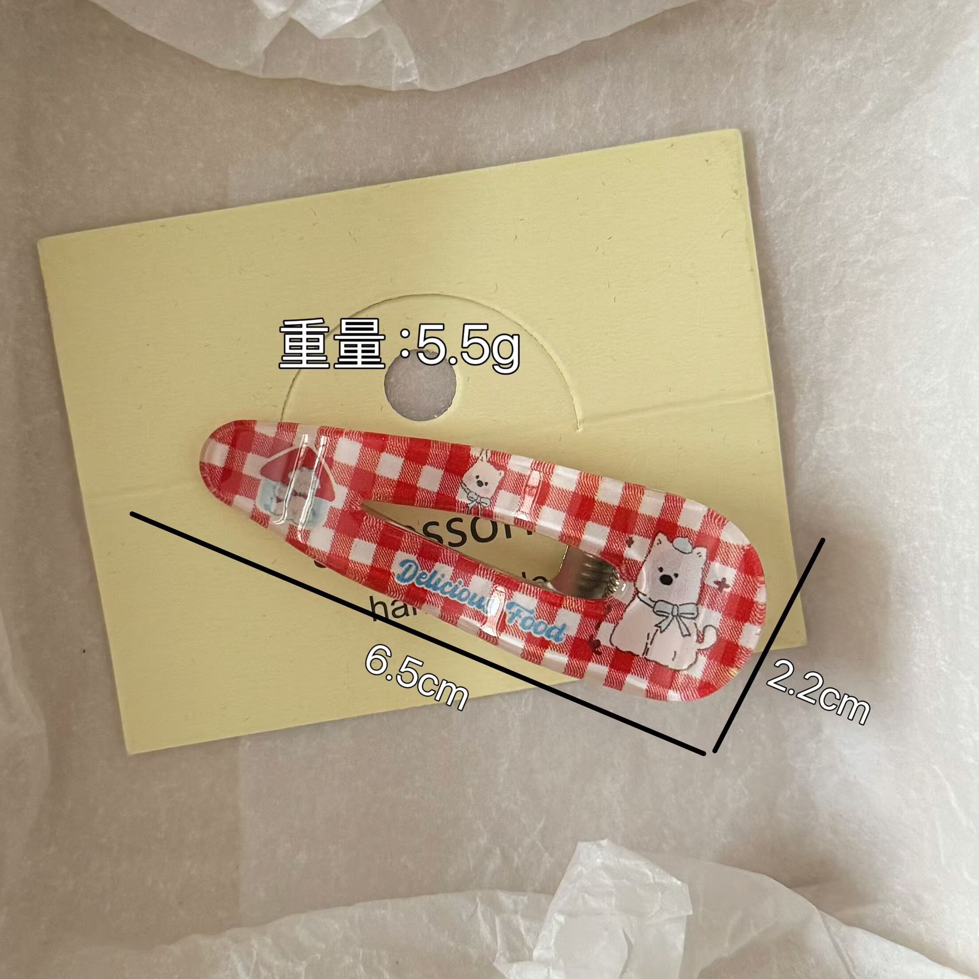 夏季清新蓝色格子小狗波浪三角发夹卡通甜美少女风鸭嘴夹发卡发饰