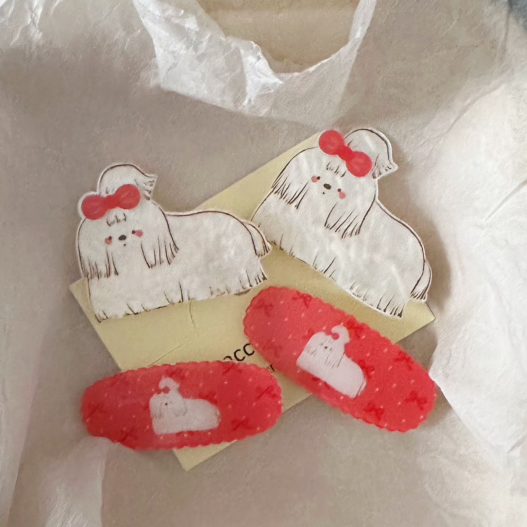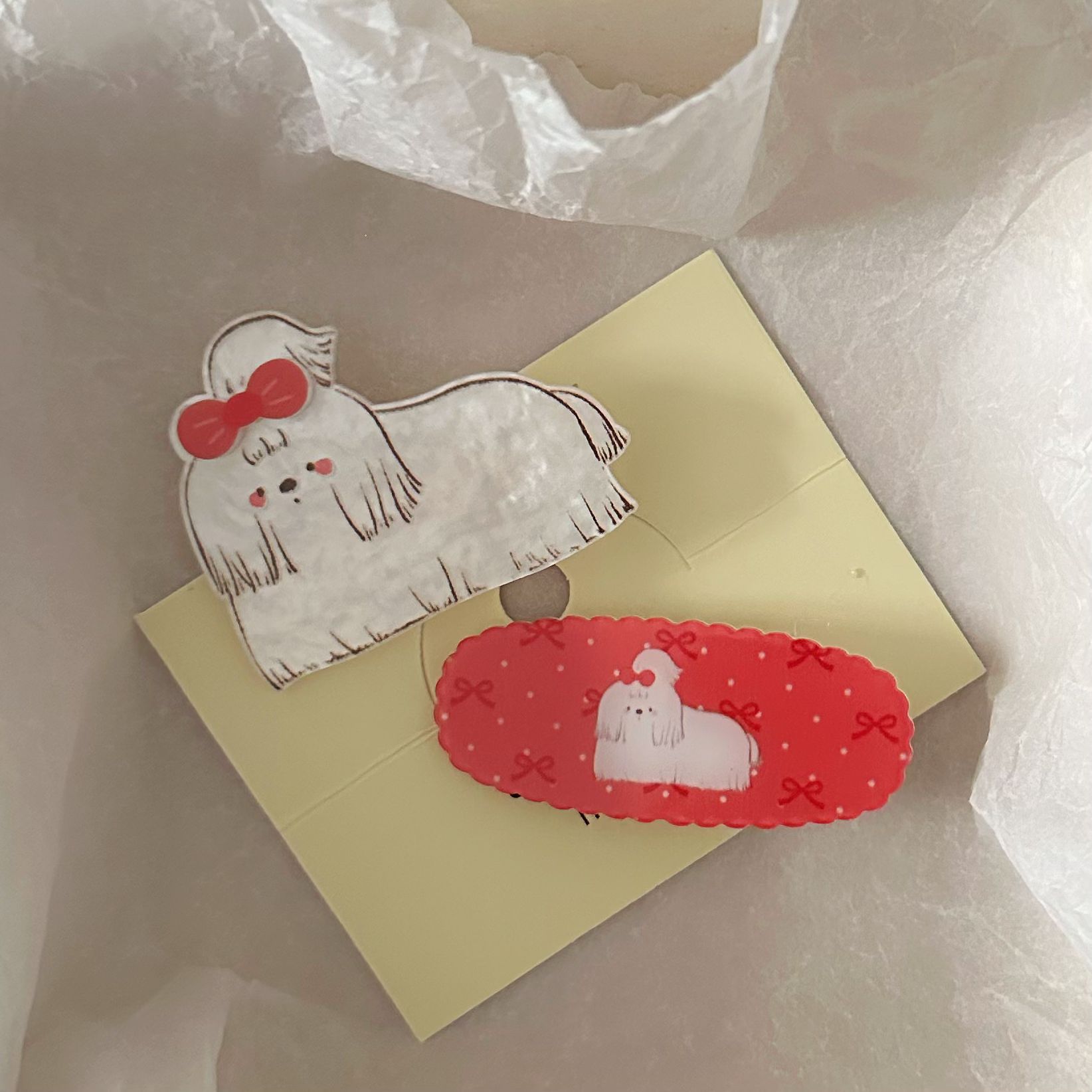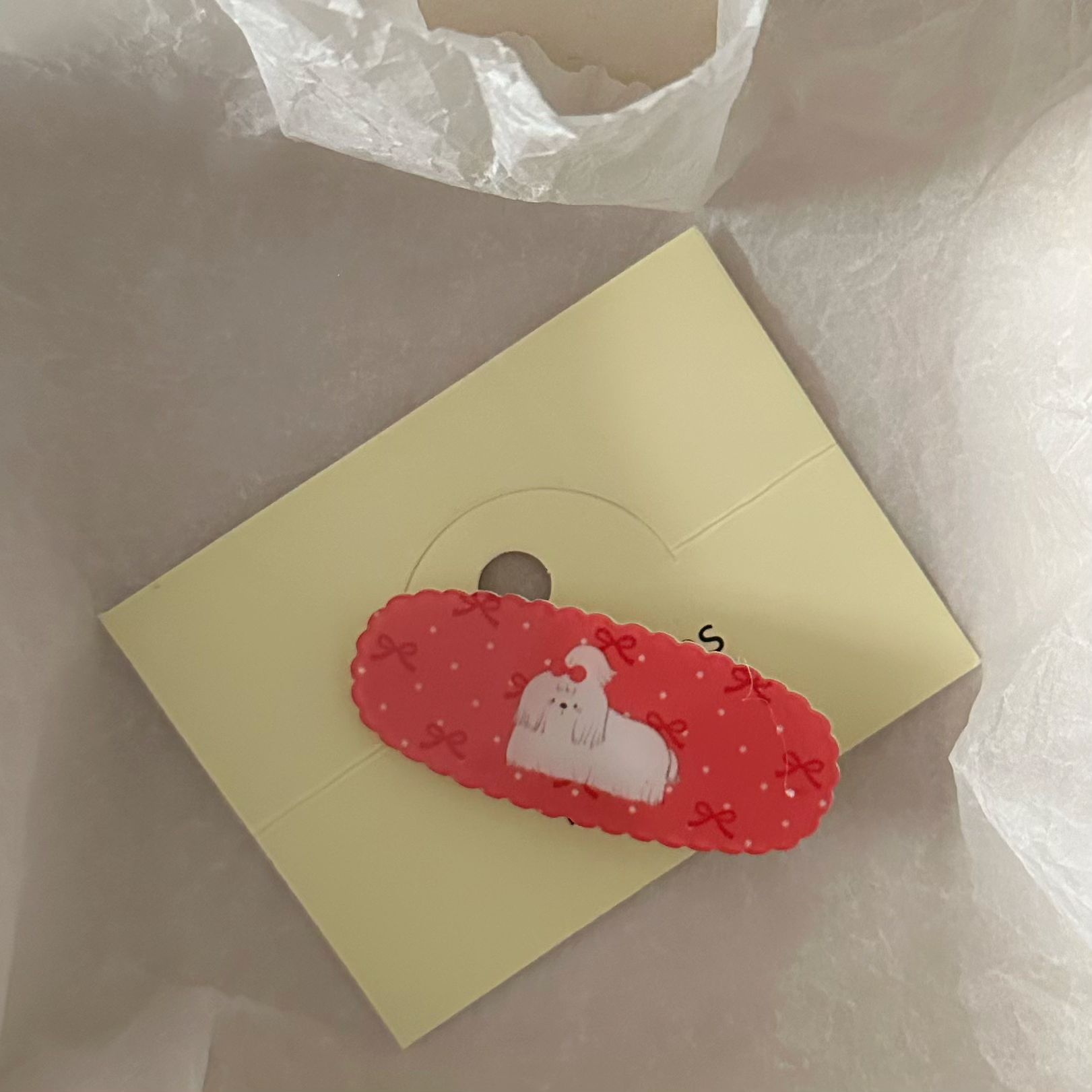 可爱红色领结小狗发夹卡通亚克力片片发卡百搭女孩侧边夹饰品批发