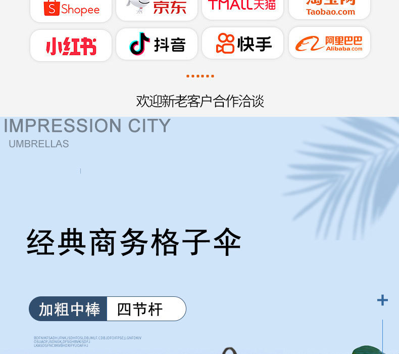 印象城十骨加大号格子伞四节杆成人手动三折伞男士双人雨伞批发价