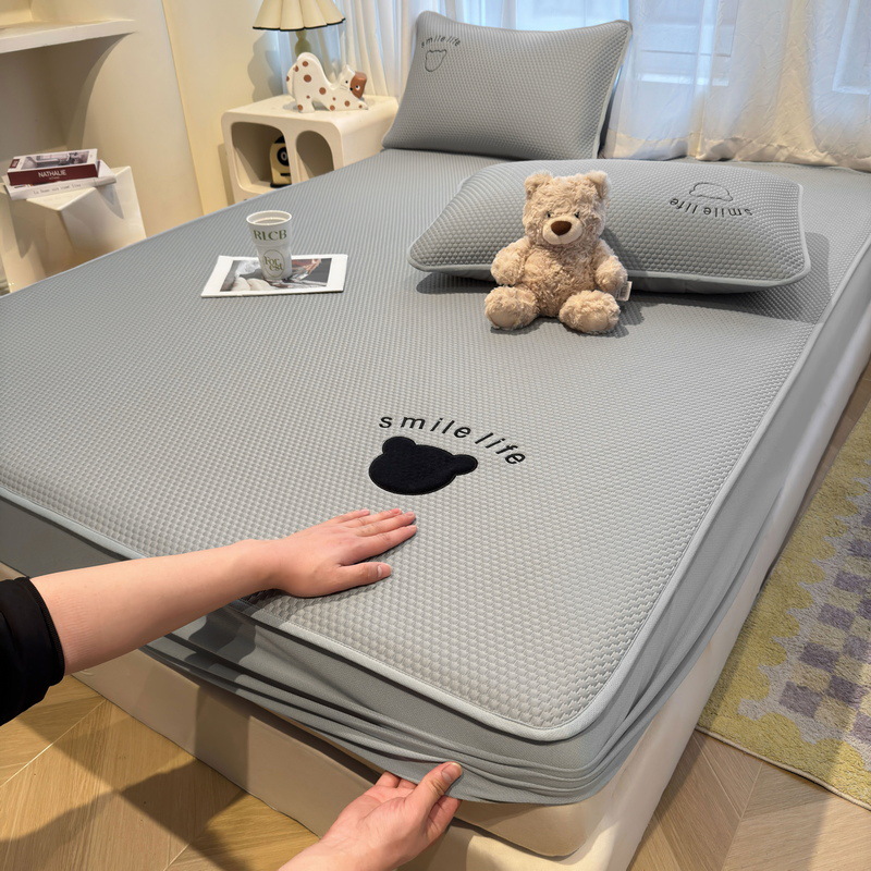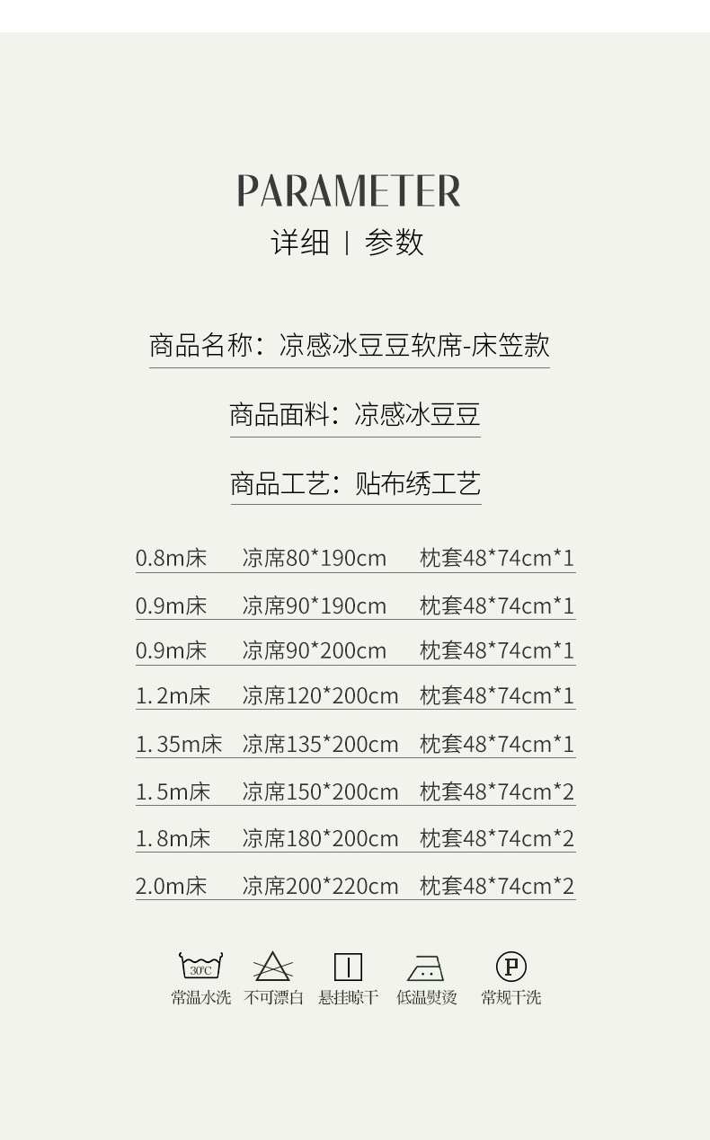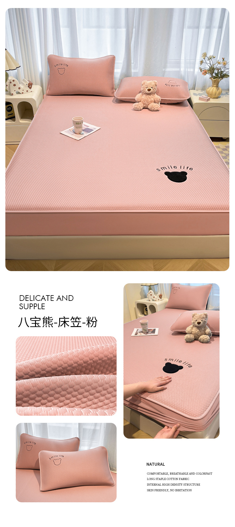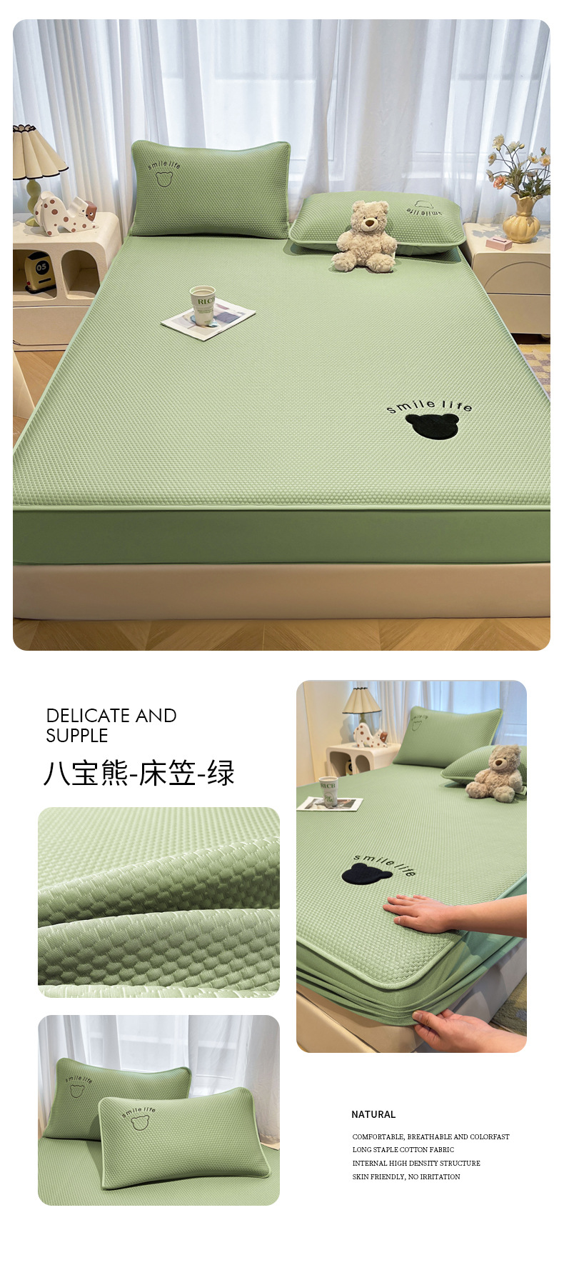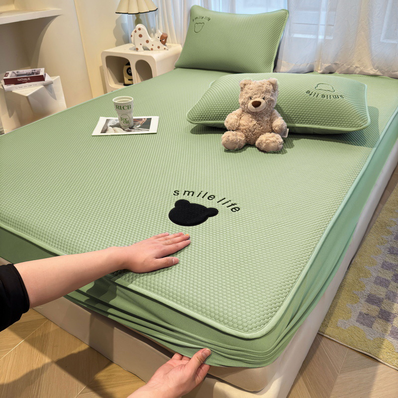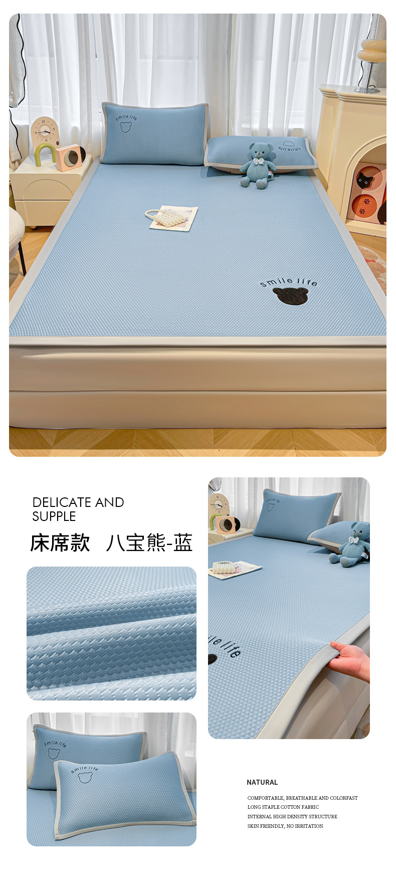 A类母婴级冰豆豆凉席三件套夏季可机水洗冰丝席床单夏天空调软席