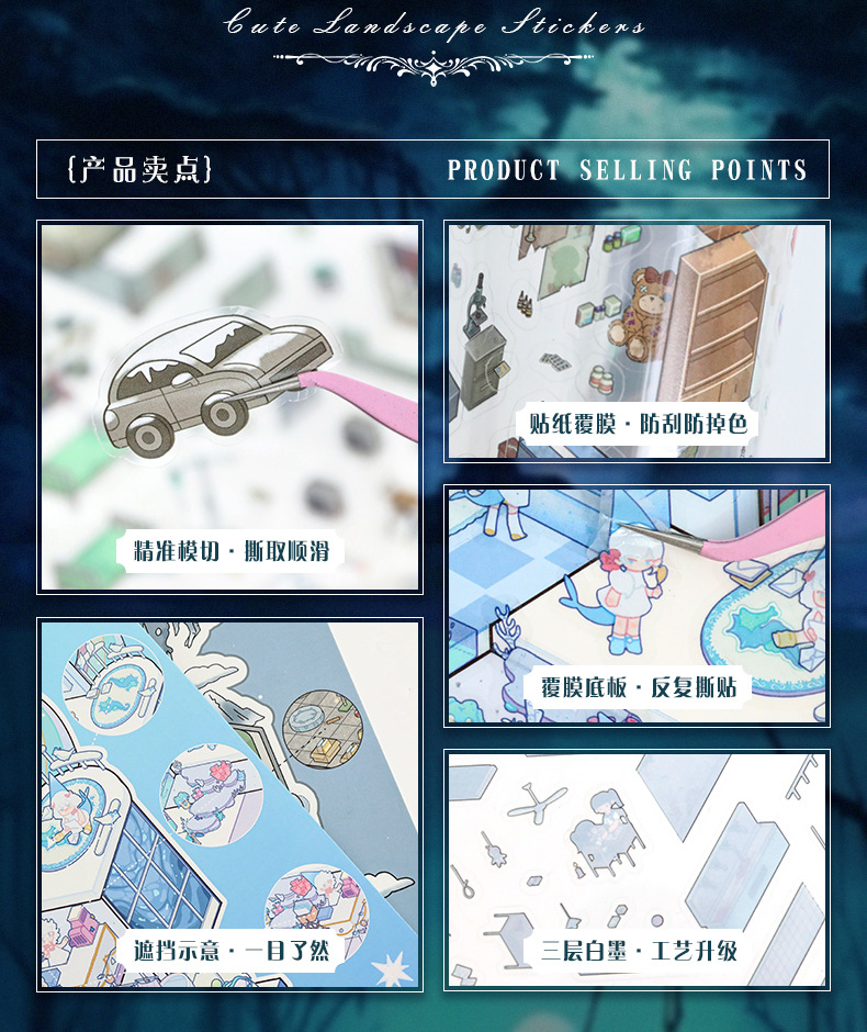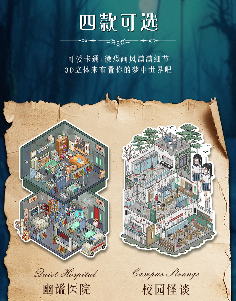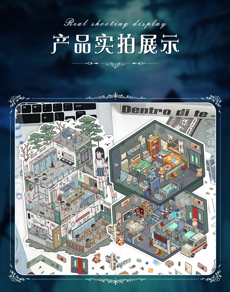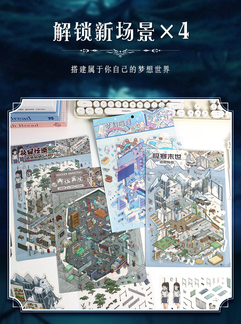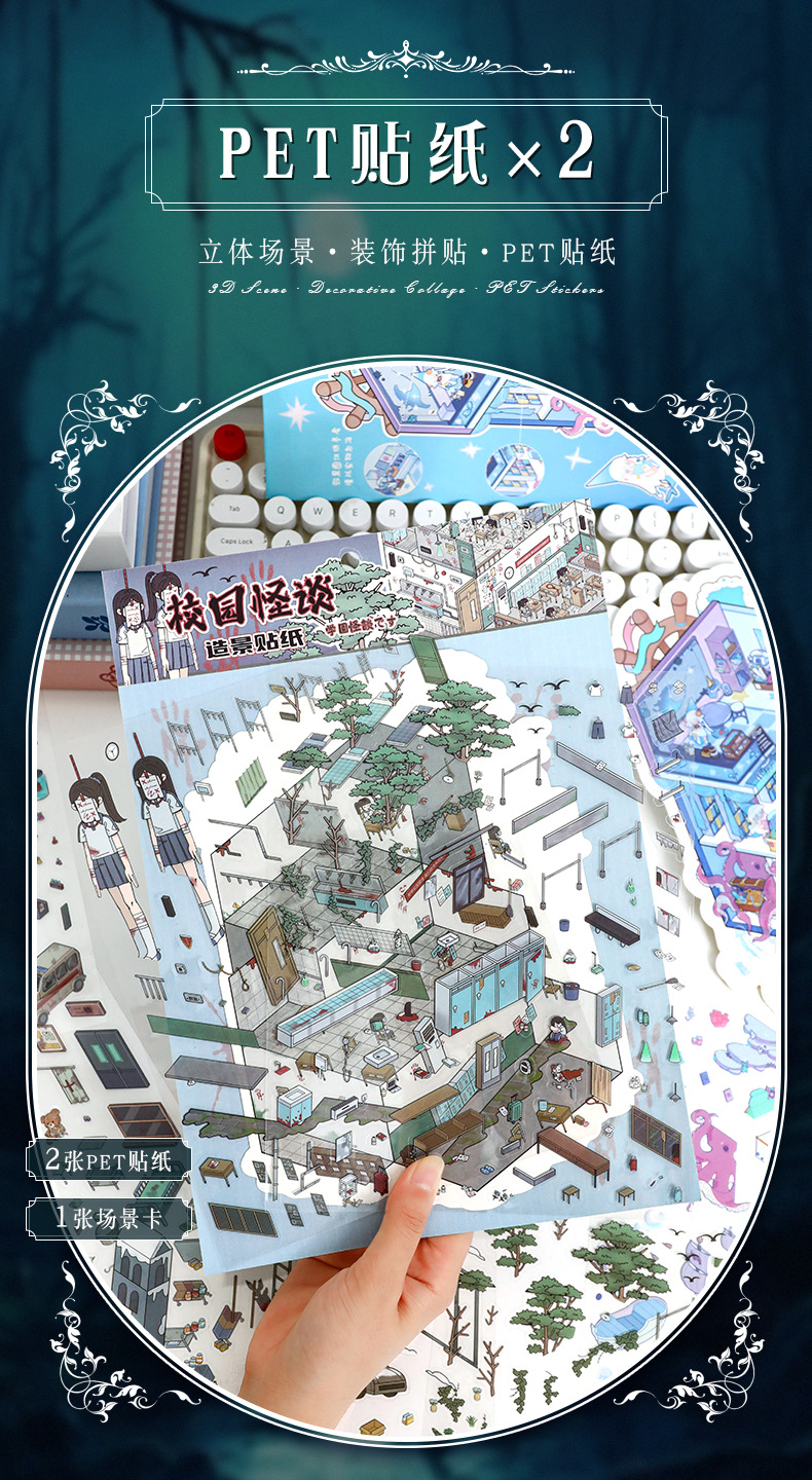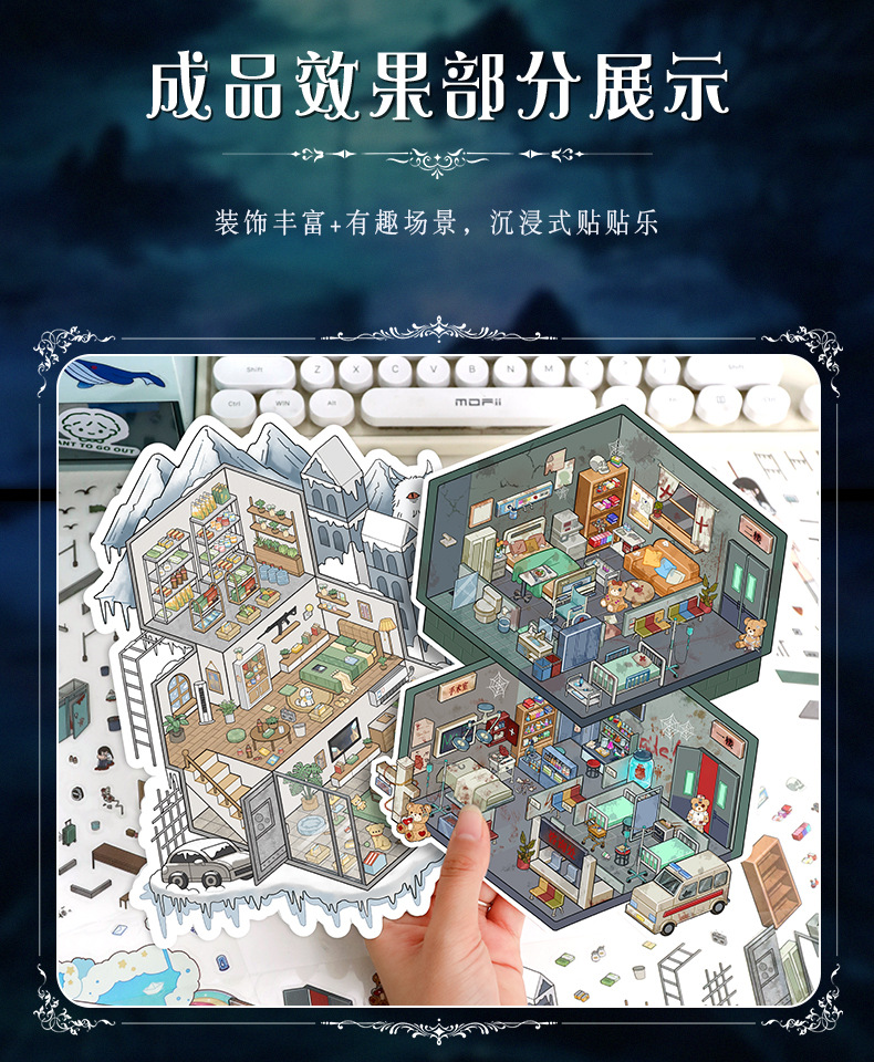 72.0艺蓝造景贴纸微恐大号场景贴纸3D立体贴纸diy解压手帐贴纸