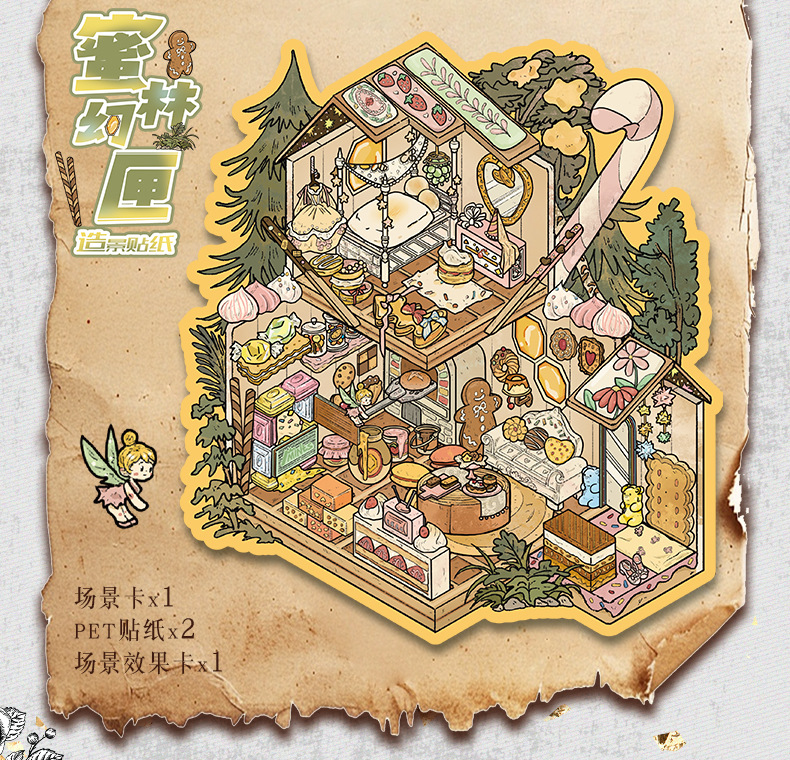 68.0艺蓝造景贴纸复古大号场景贴纸3D立体贴纸diy解压手帐贴画