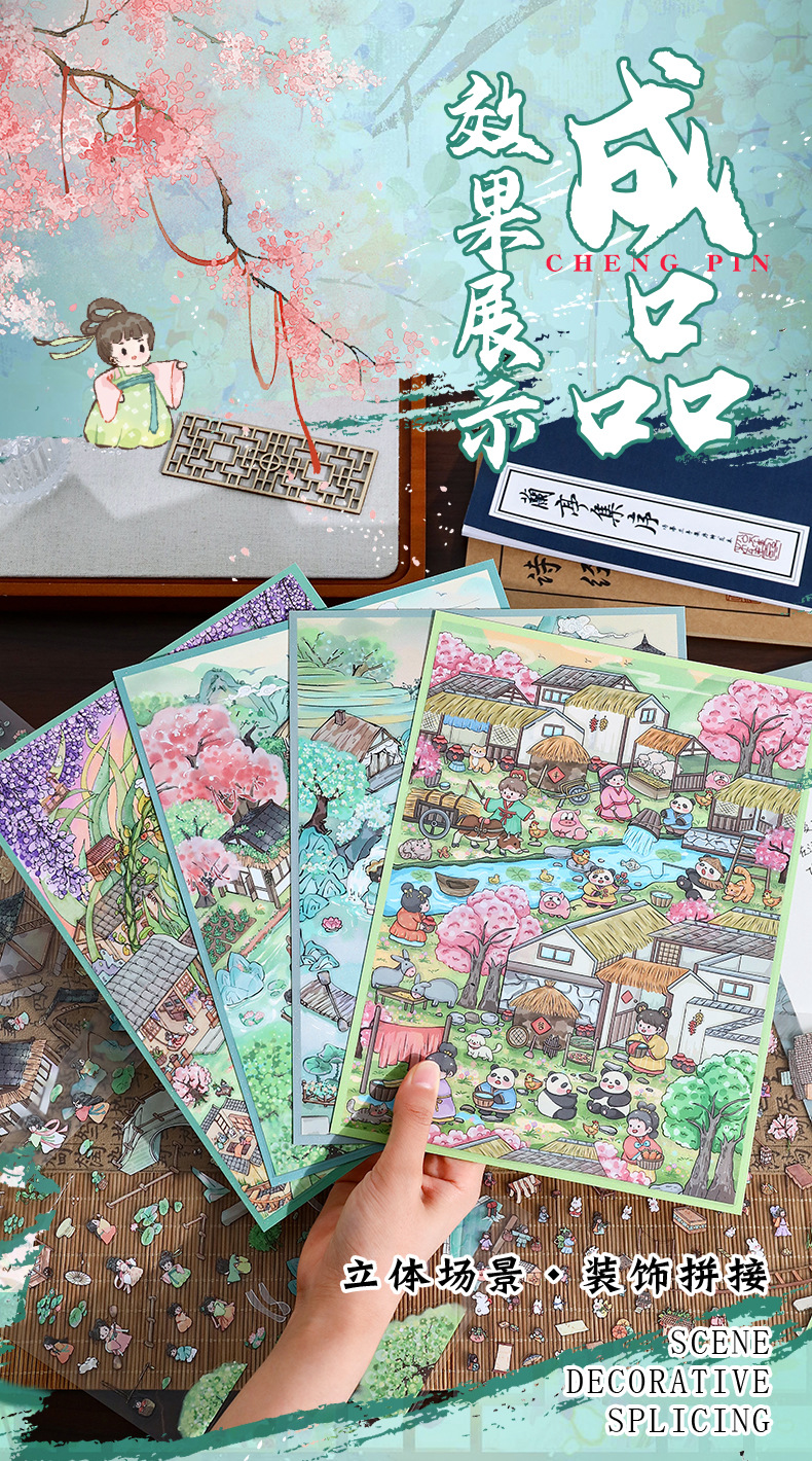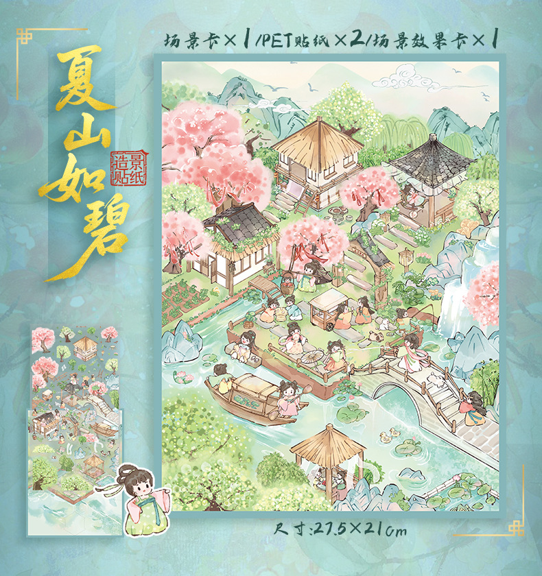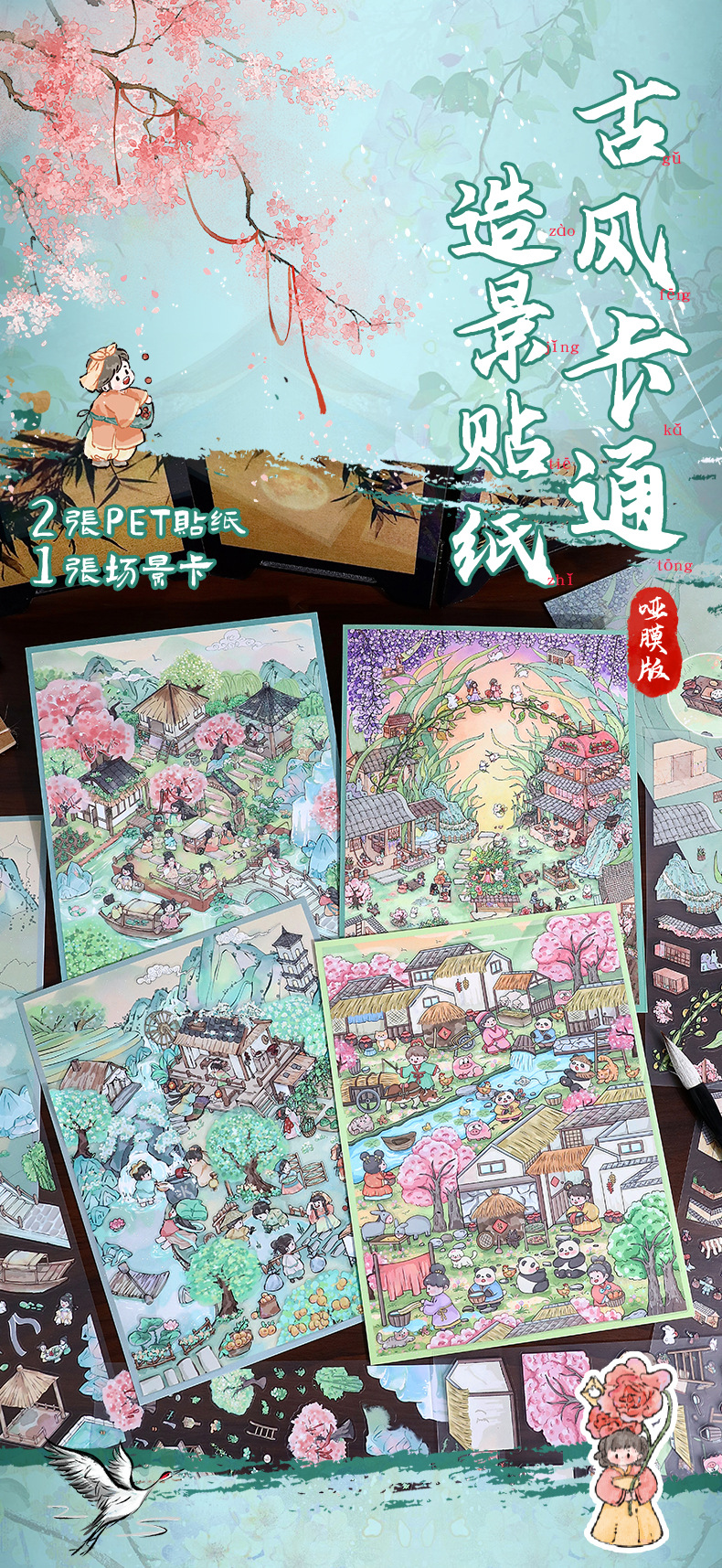 80.0艺蓝造景贴纸古风系列场景贴纸3D立体微缩场景贴纸解压手帐