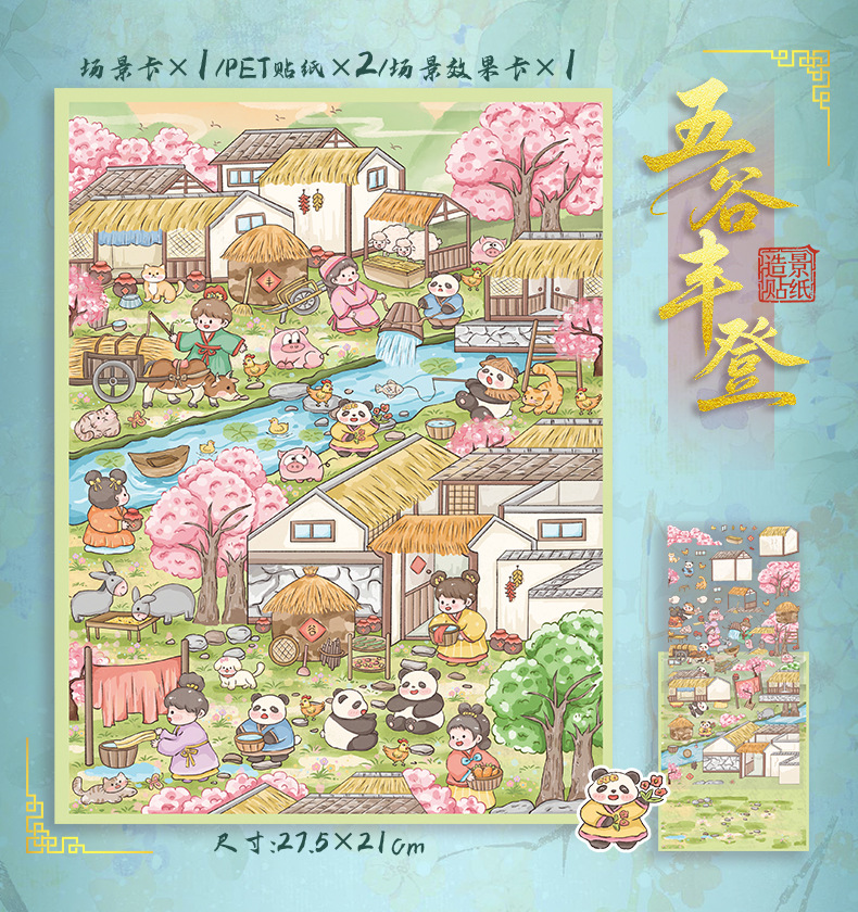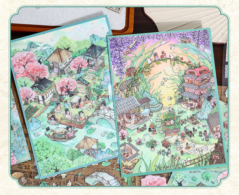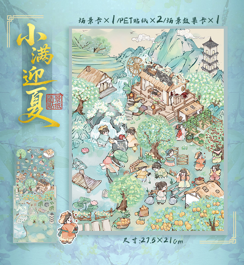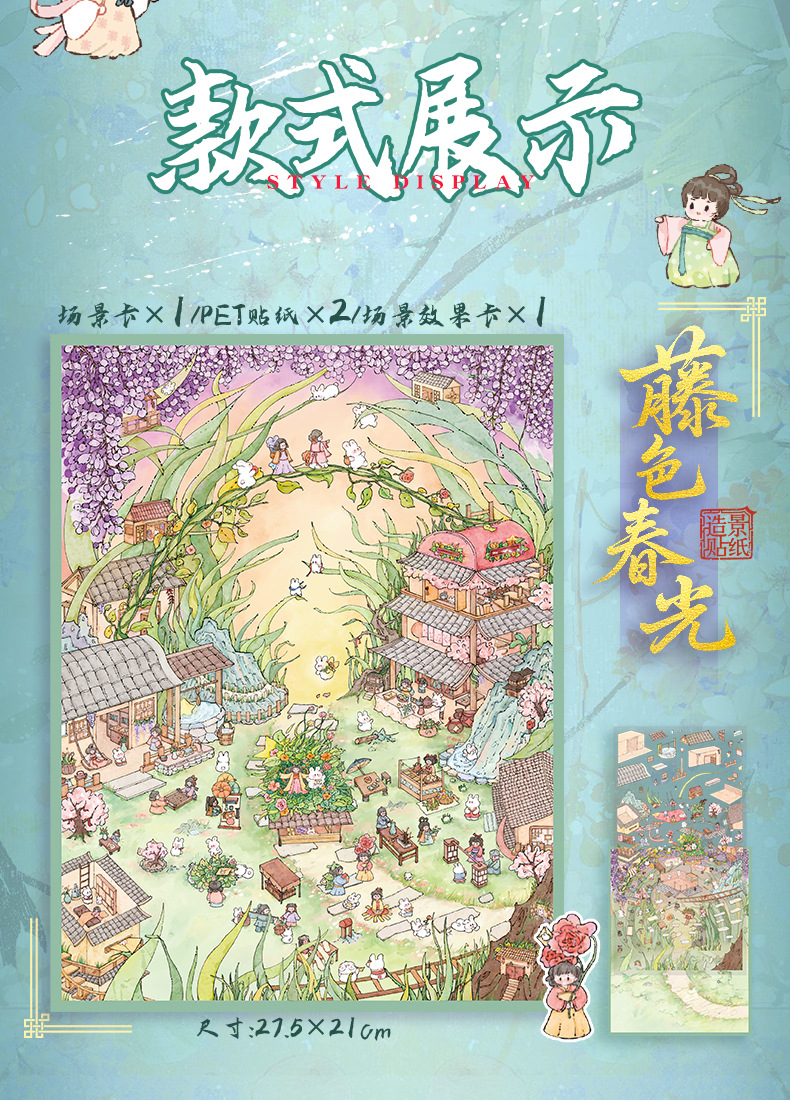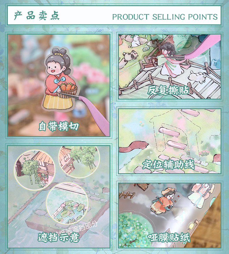 80.0艺蓝造景贴纸古风系列场景贴纸3D立体微缩场景贴纸解压手帐