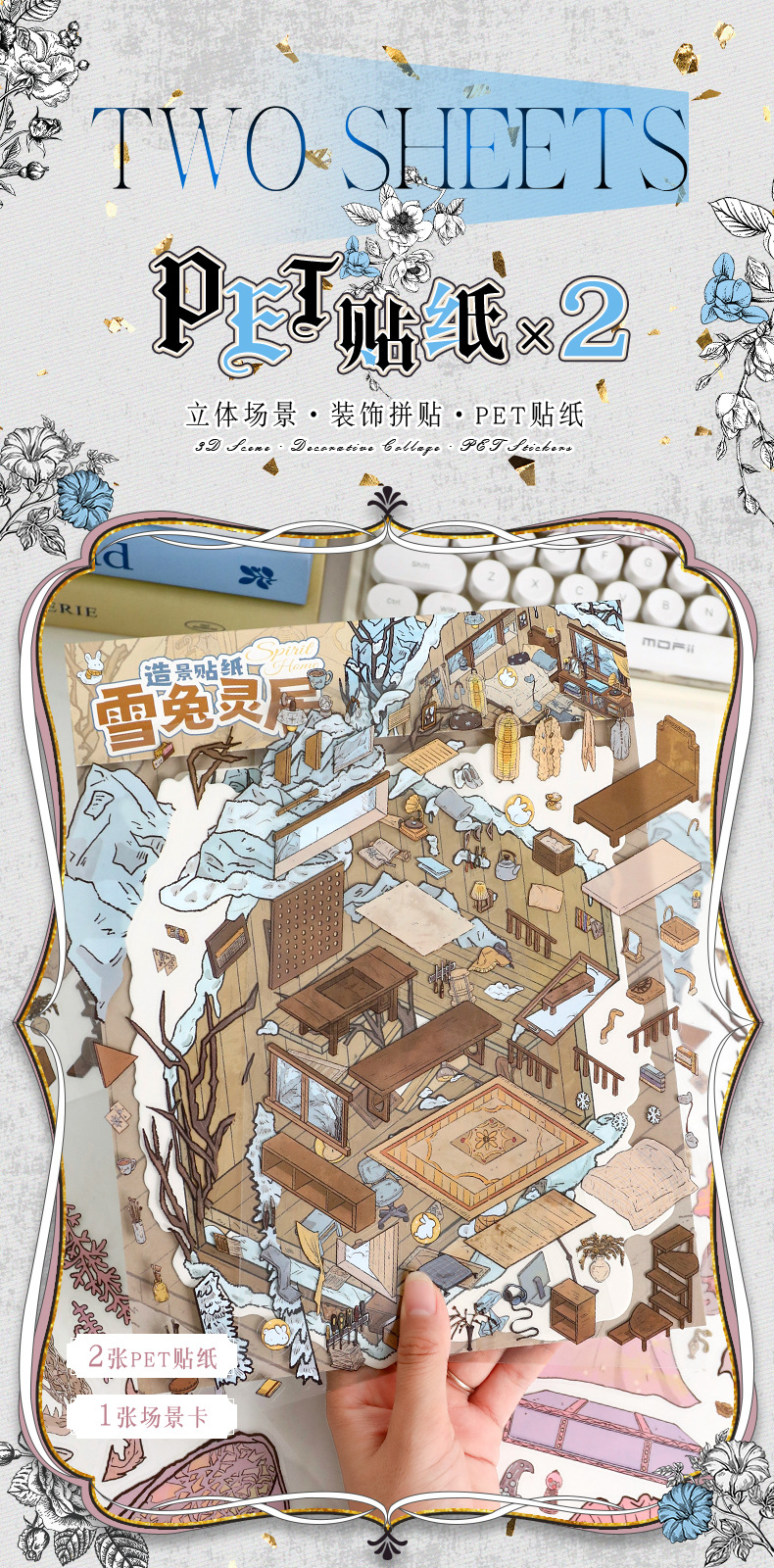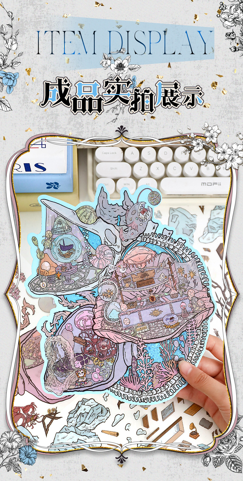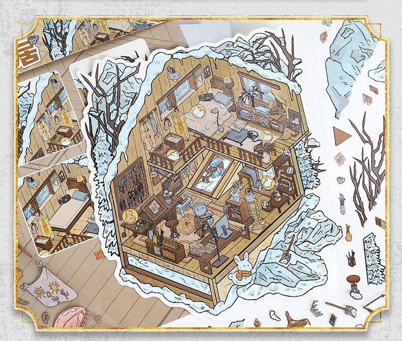 85.0艺蓝造景贴纸复古场景贴纸创意3D立体微缩场景贴纸解压手帐贴