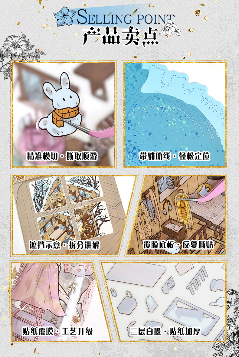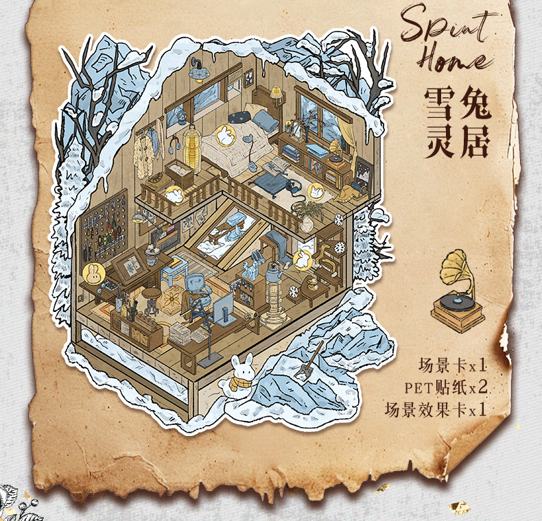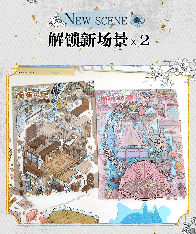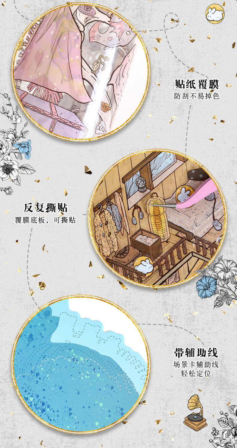 85.0艺蓝造景贴纸复古场景贴纸创意3D立体微缩场景贴纸解压手帐贴
