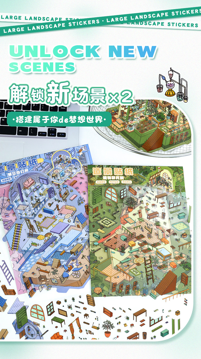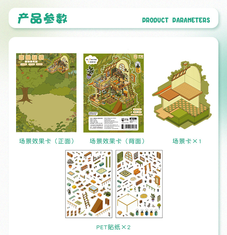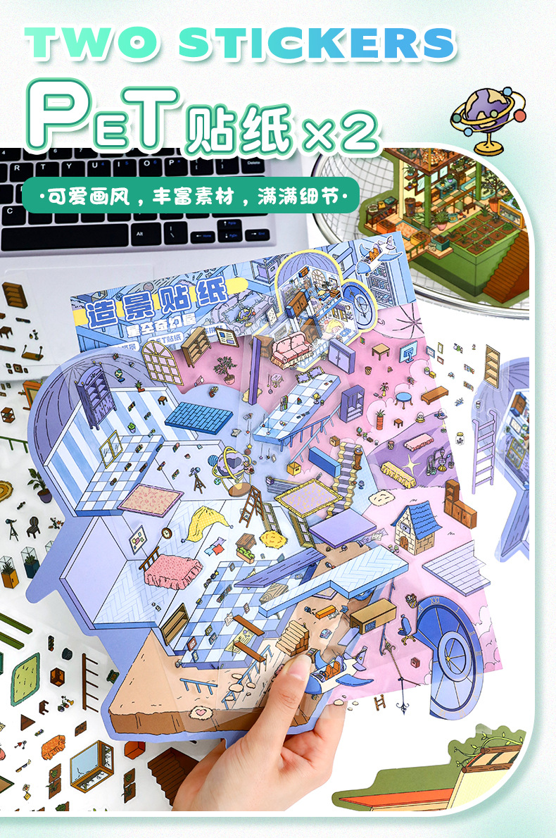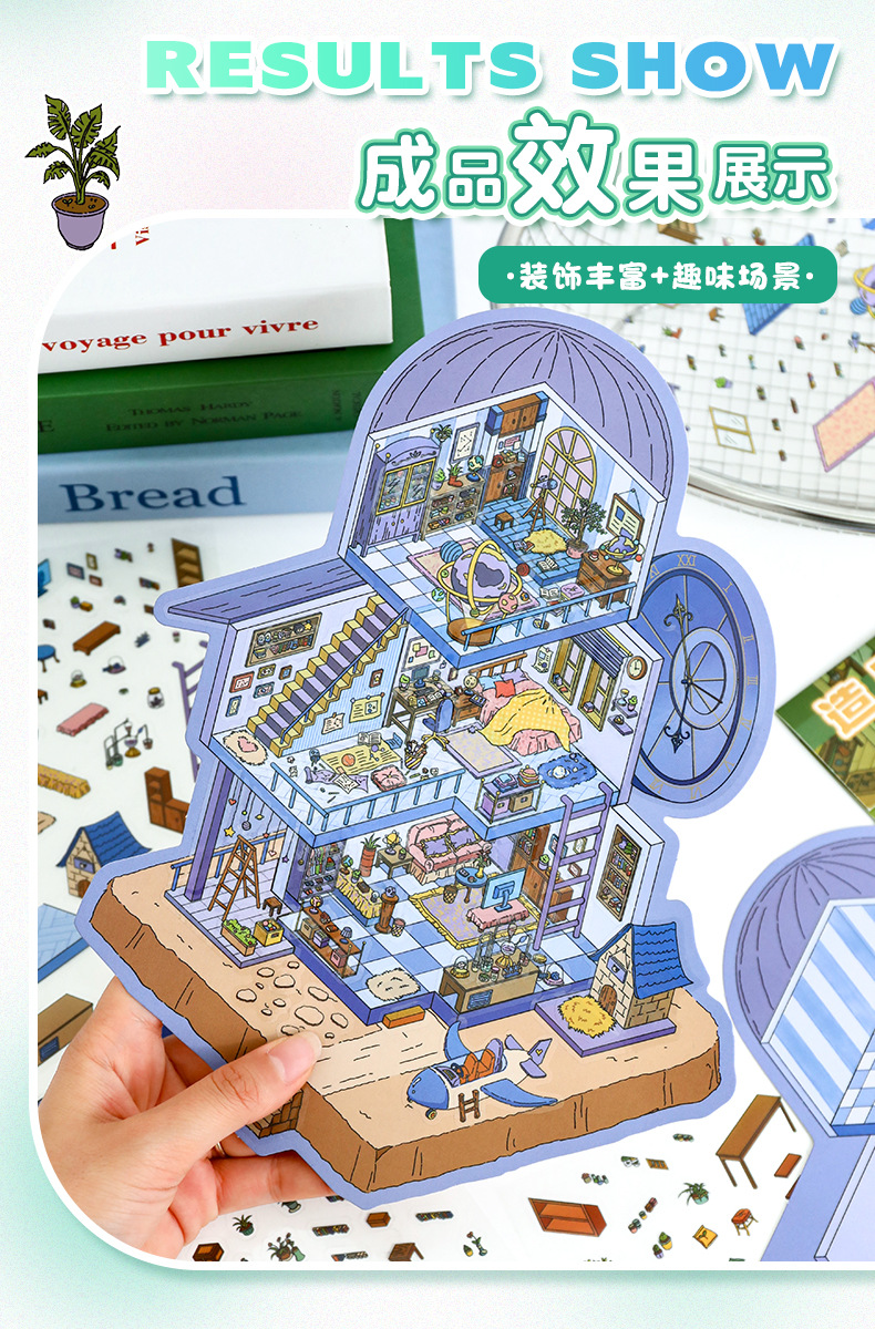 51.0艺蓝造景贴纸3D立体小屋场景拼贴解压手帐贴纸微缩场景贴画