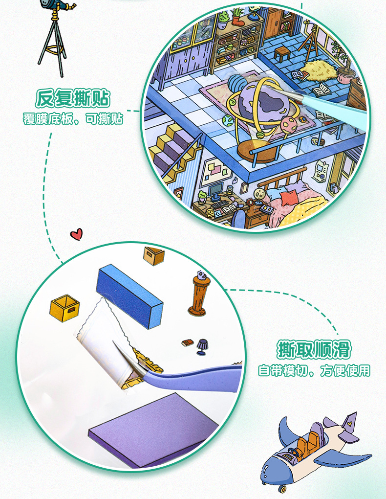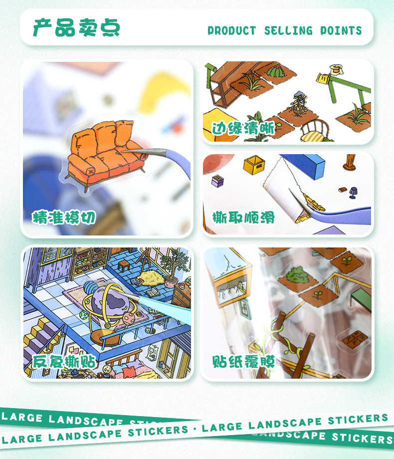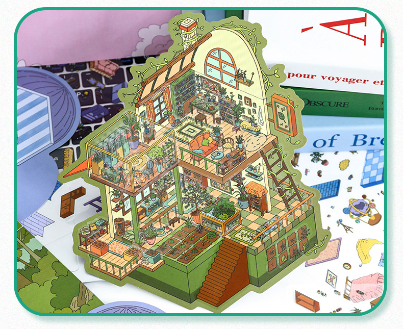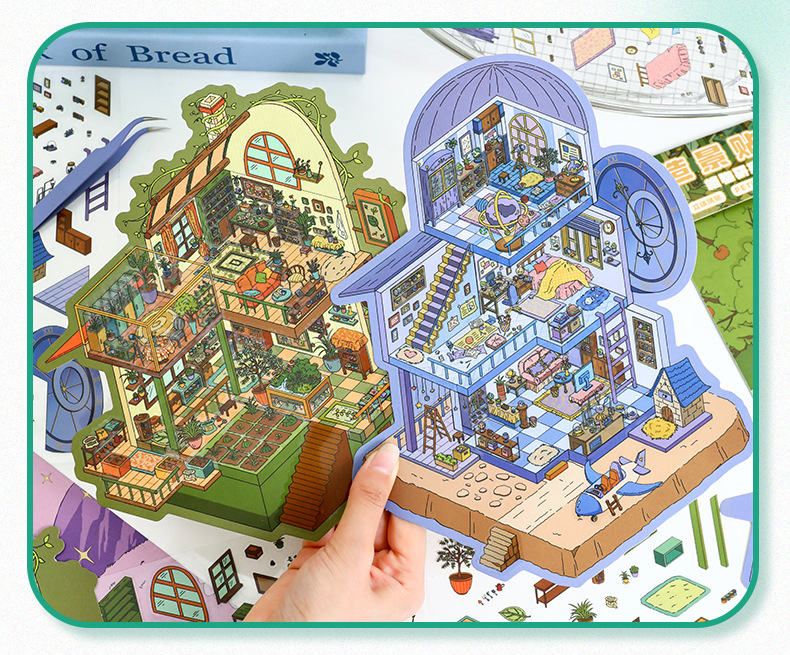 51.0艺蓝造景贴纸3D立体小屋场景拼贴解压手帐贴纸微缩场景贴画