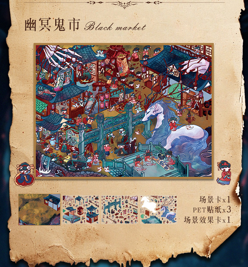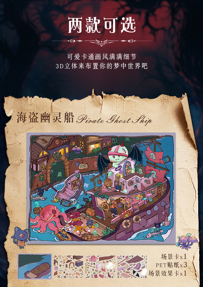 84.0艺蓝造景贴纸微恐系列场景贴纸3D立体微缩场景diy手帐贴纸