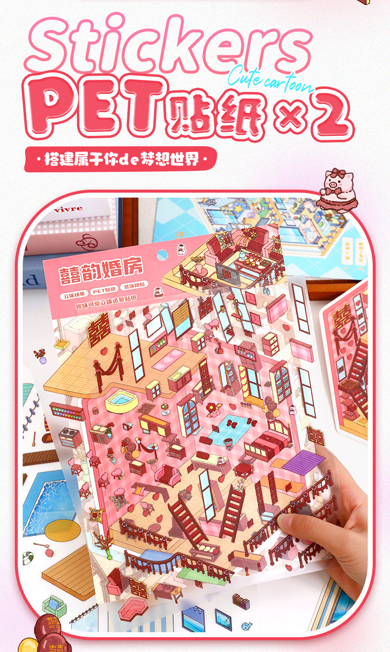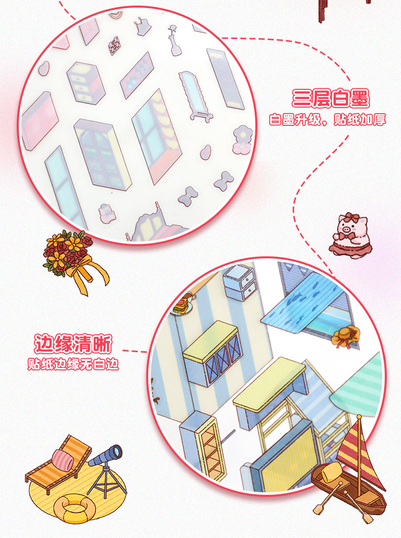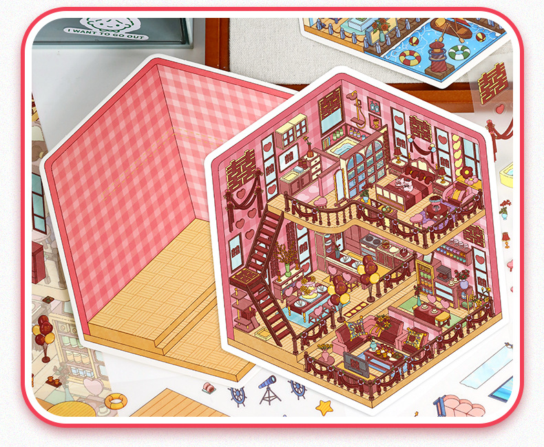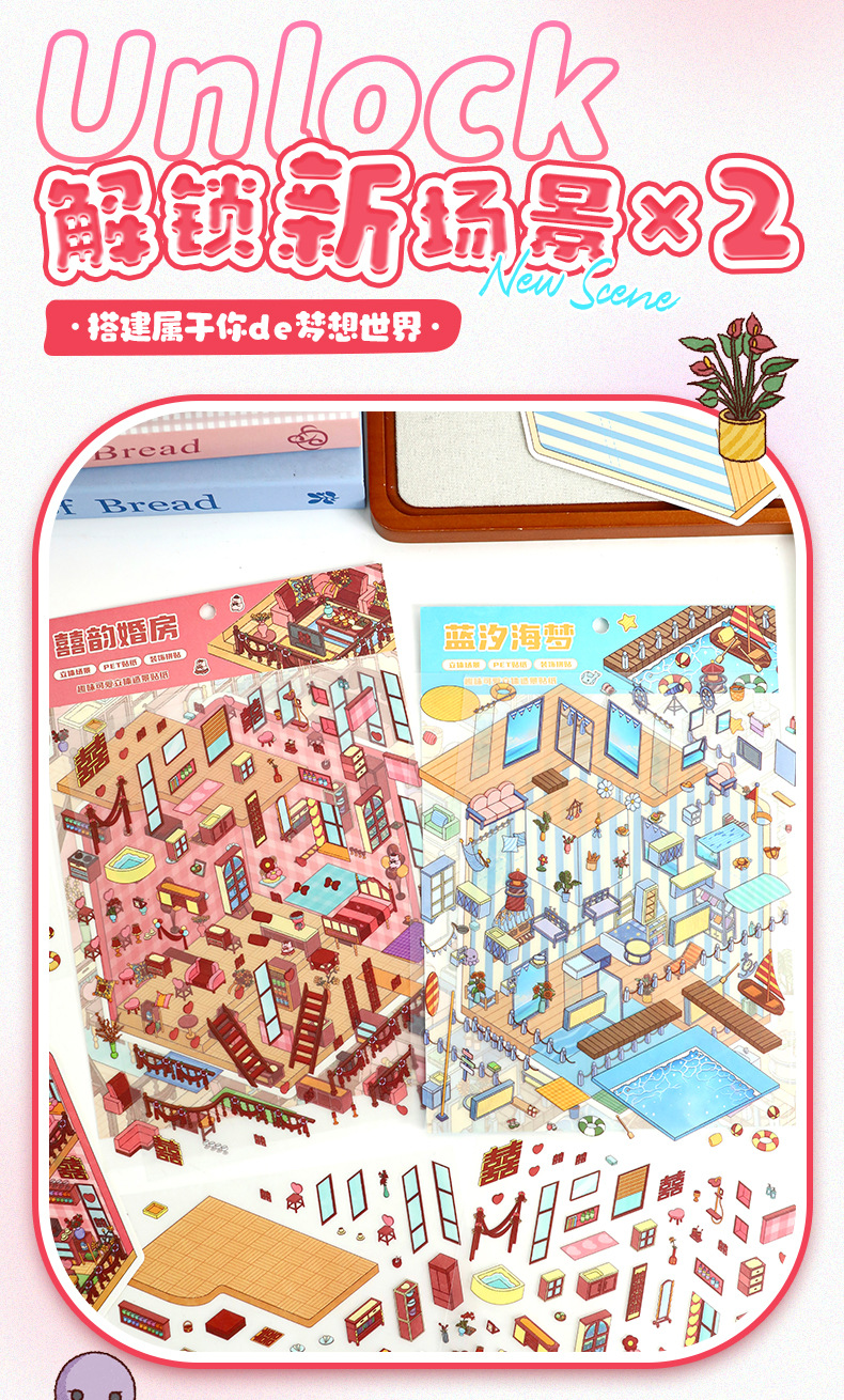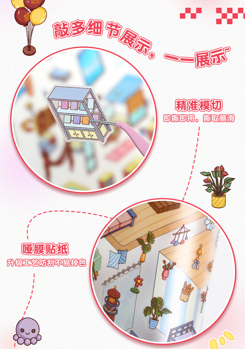 78.0艺蓝造景贴纸可爱diy场景贴纸卡通3D立体解压贴纸ins手帐贴纸