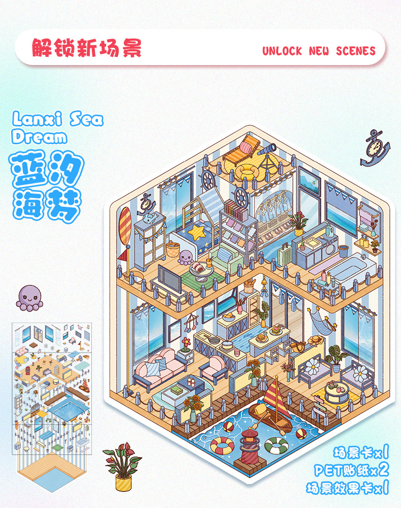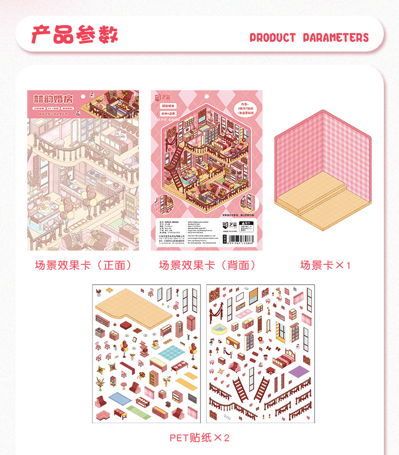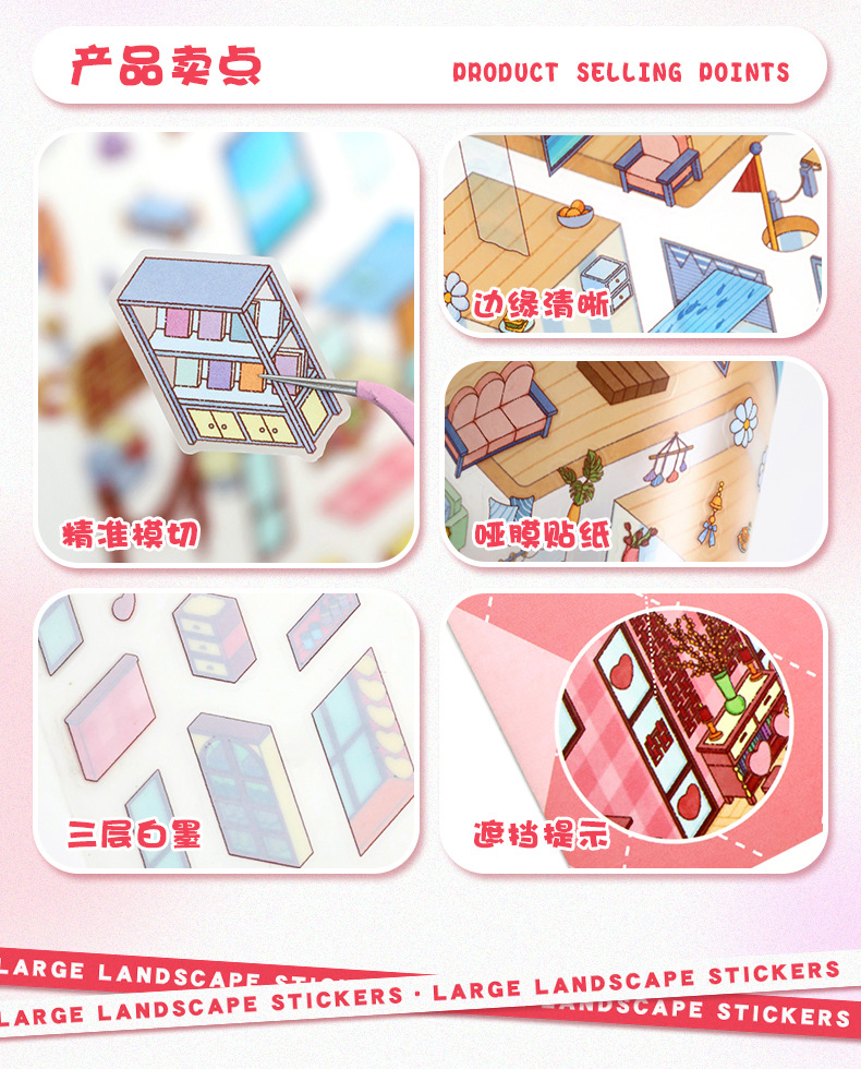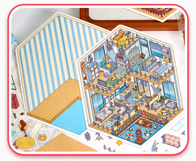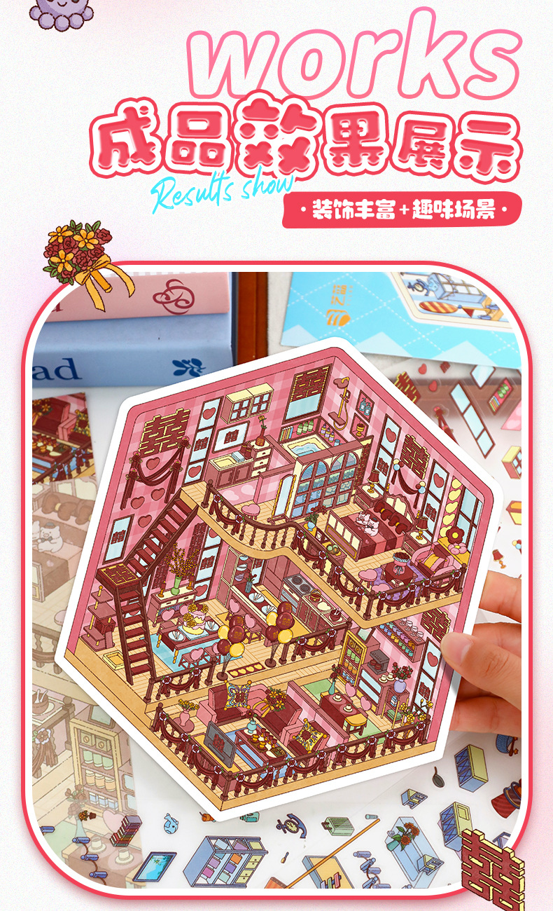 78.0艺蓝造景贴纸可爱diy场景贴纸卡通3D立体解压贴纸ins手帐贴纸