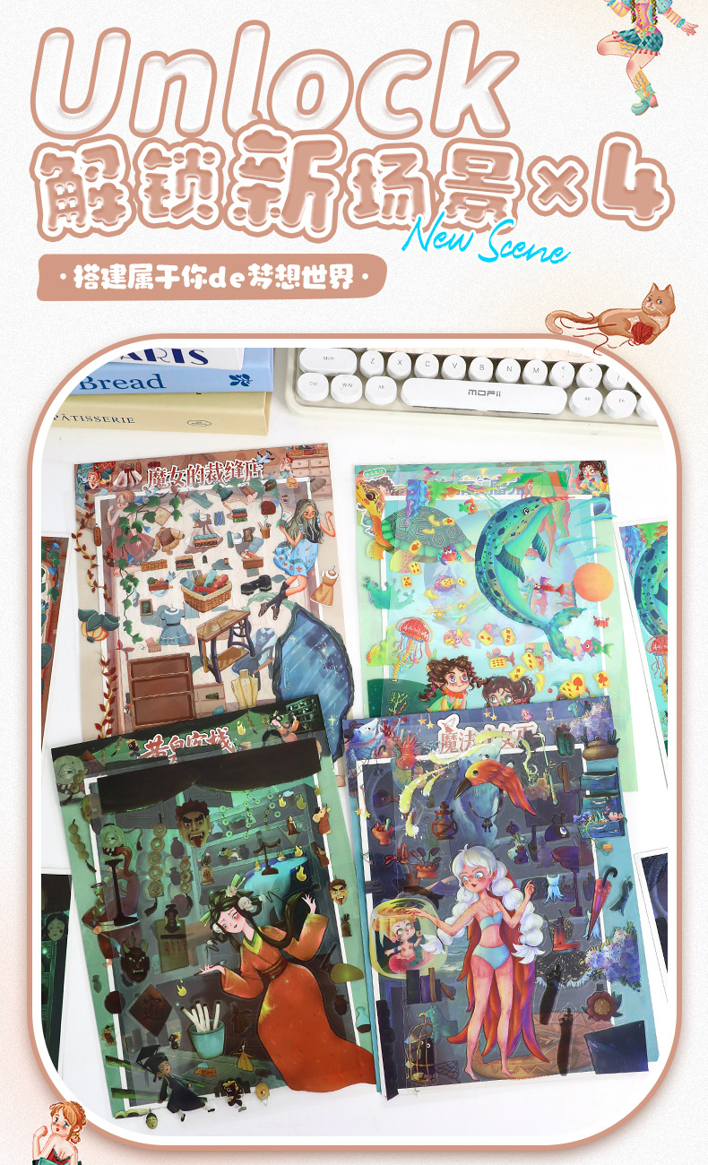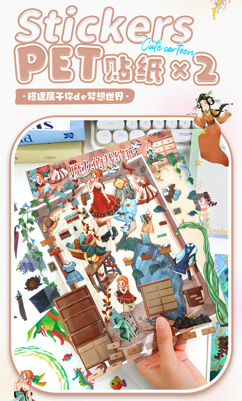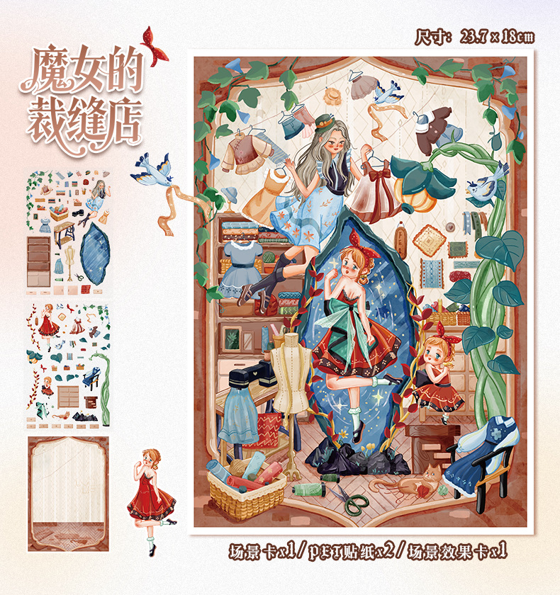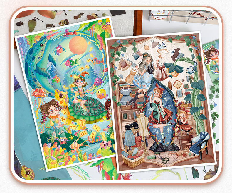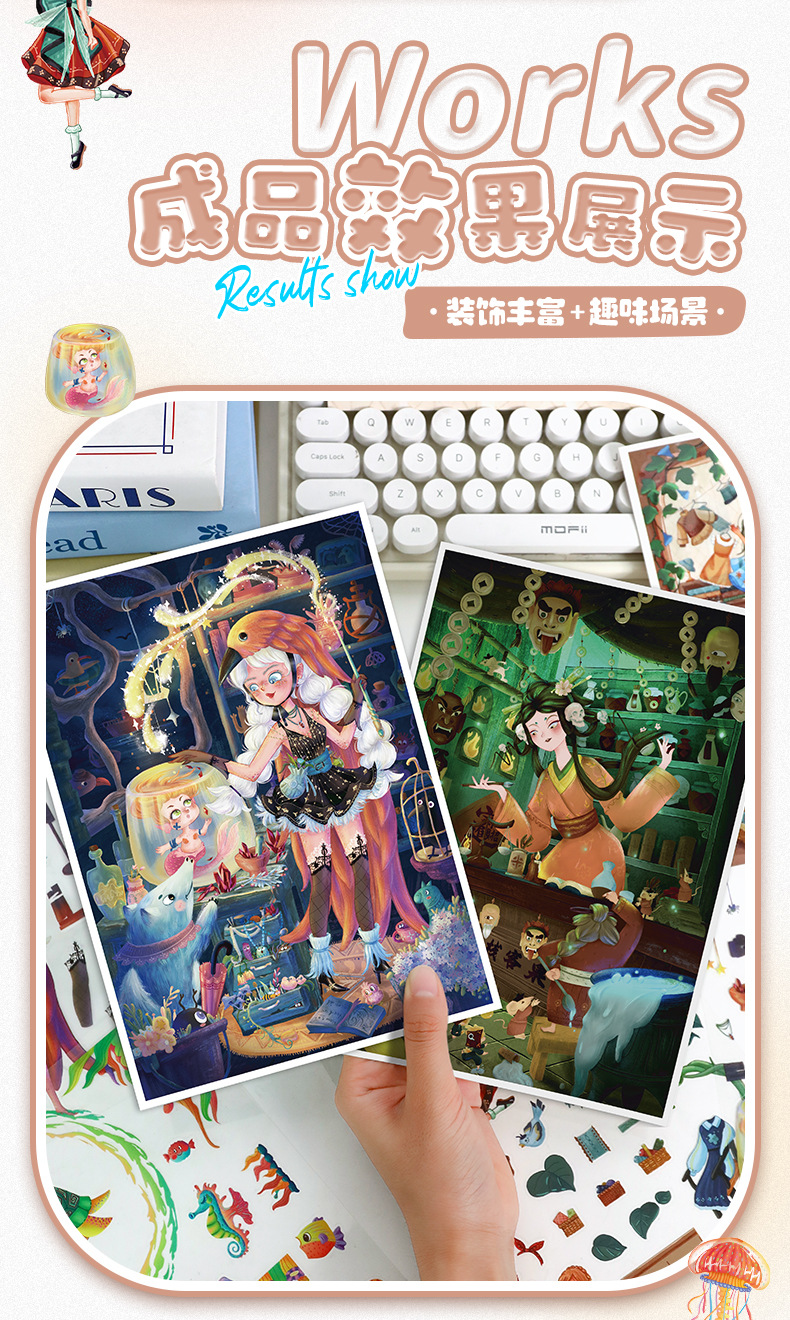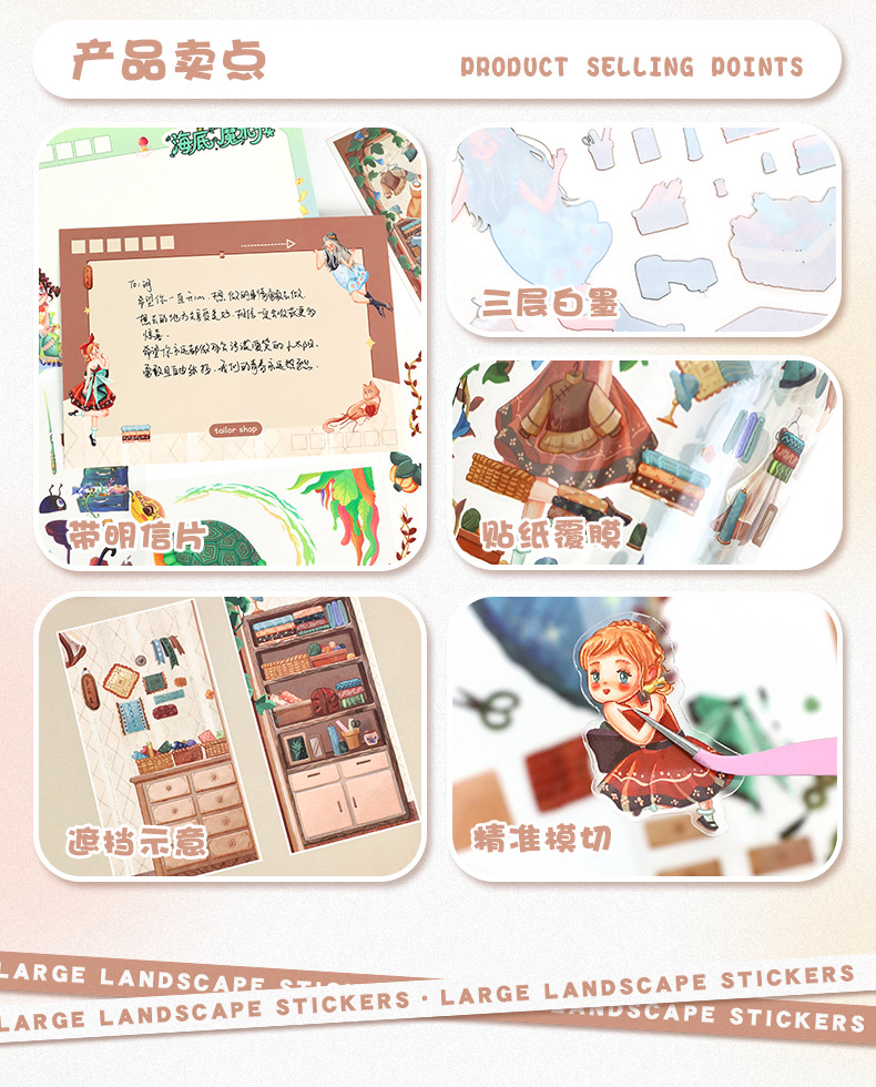 86.0艺蓝造景贴纸水彩风场景贴纸创意3D立体微缩场景贴纸手帐贴纸