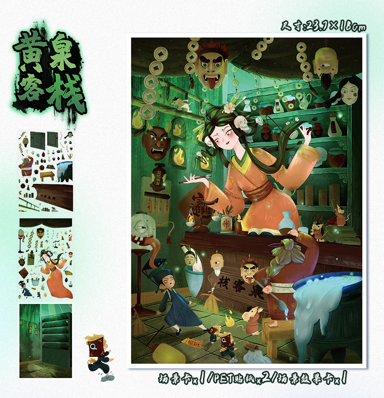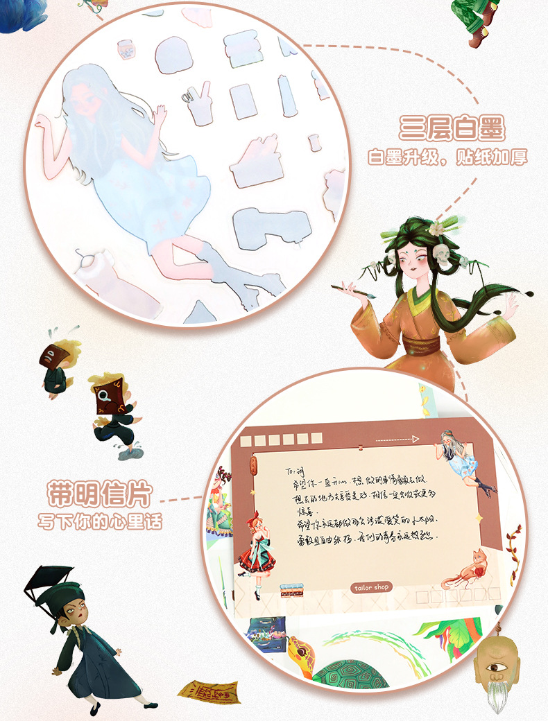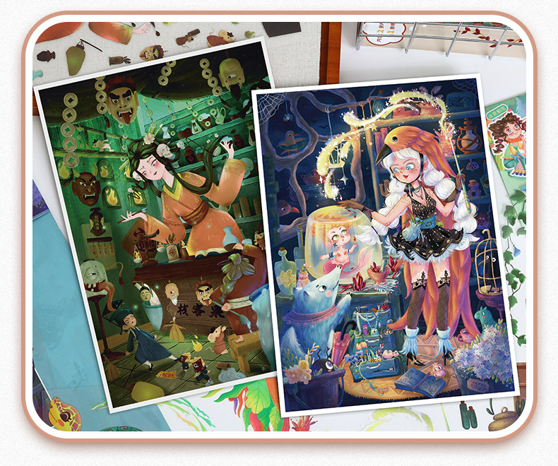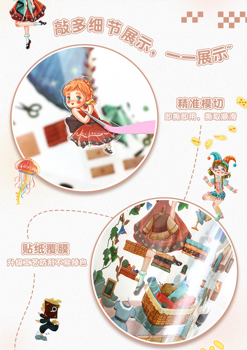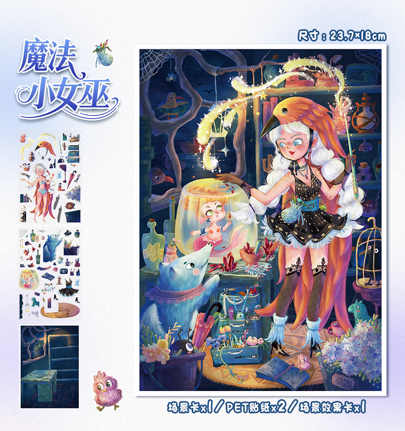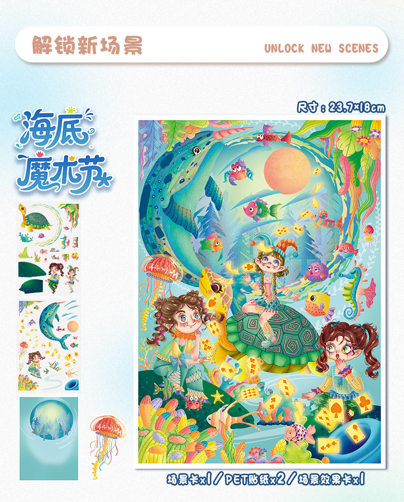 86.0艺蓝造景贴纸水彩风场景贴纸创意3D立体微缩场景贴纸手帐贴纸