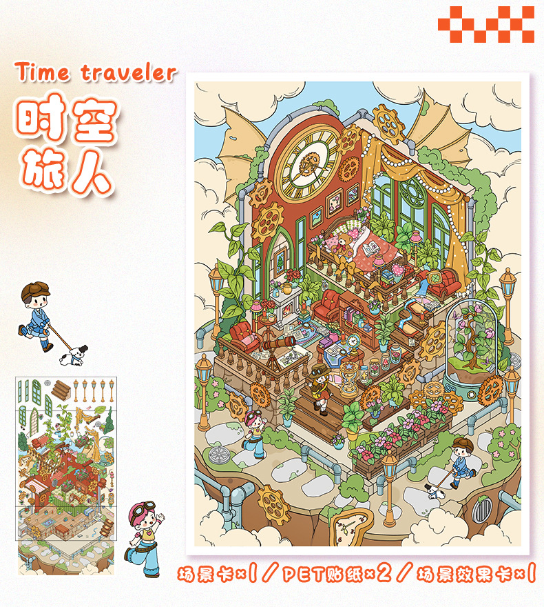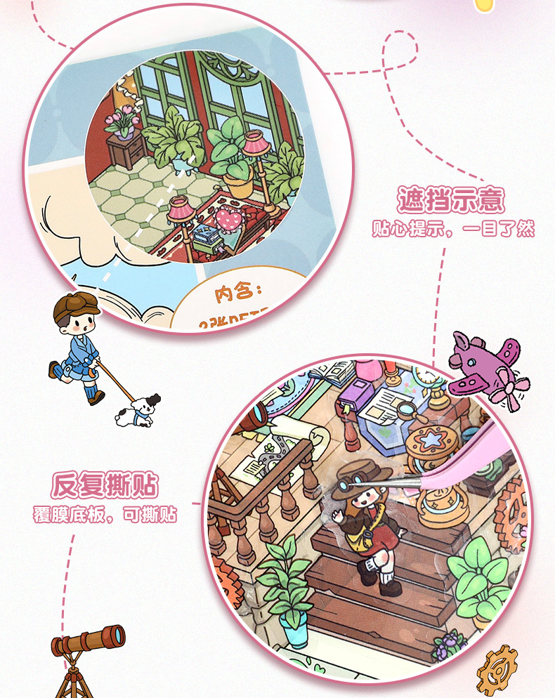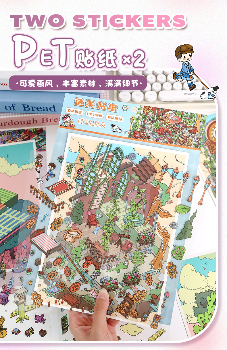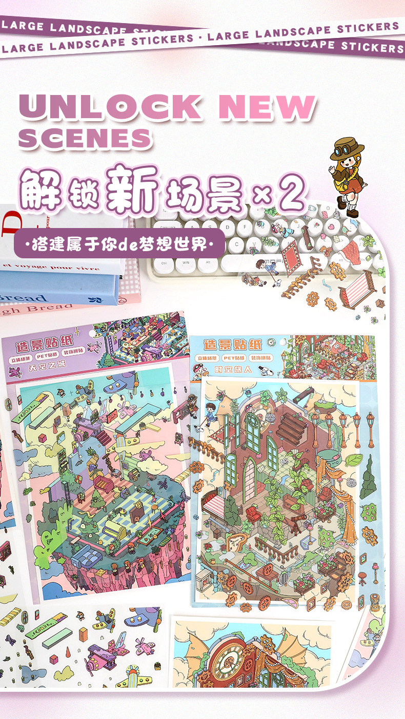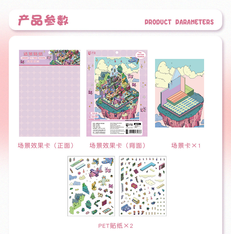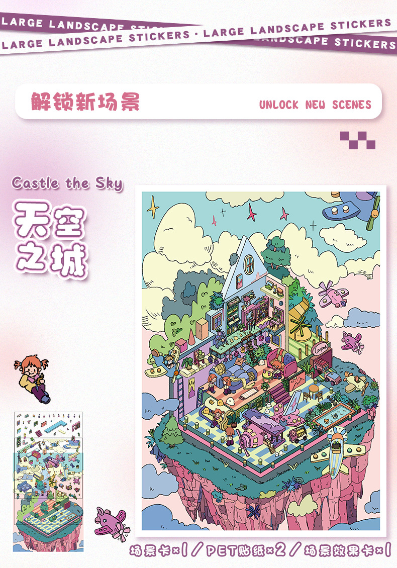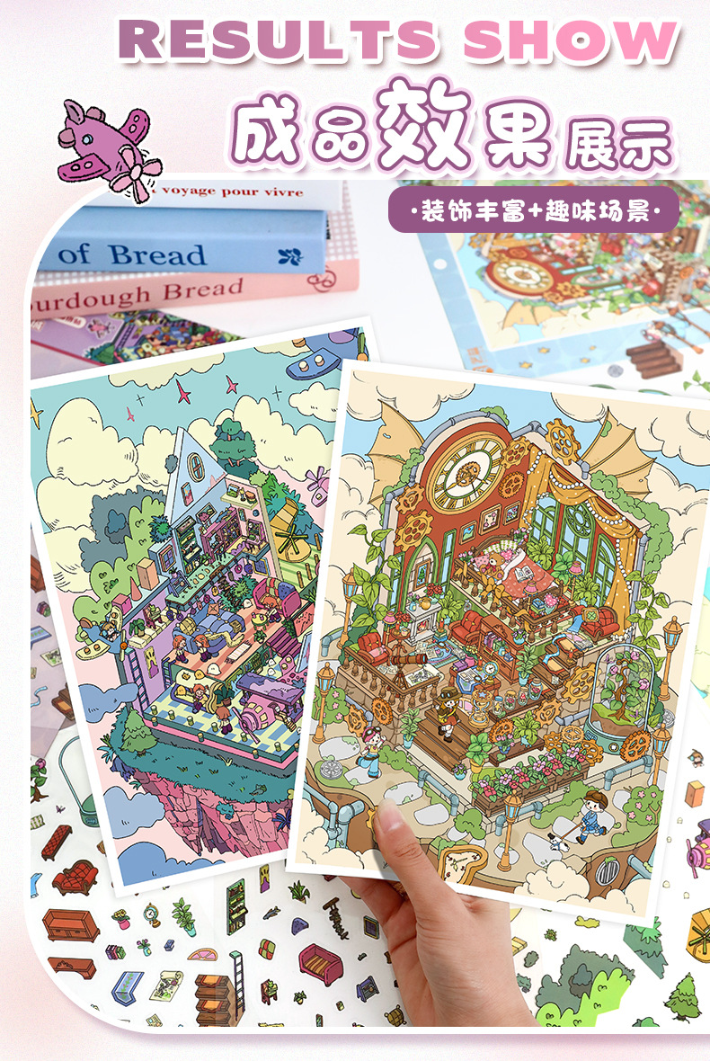 69.0艺蓝造景贴纸大号场景贴纸3D立体小屋贴纸diy手工解压手帐贴