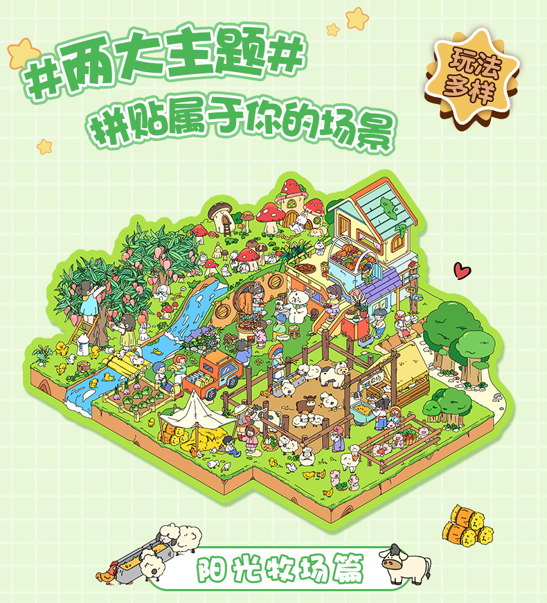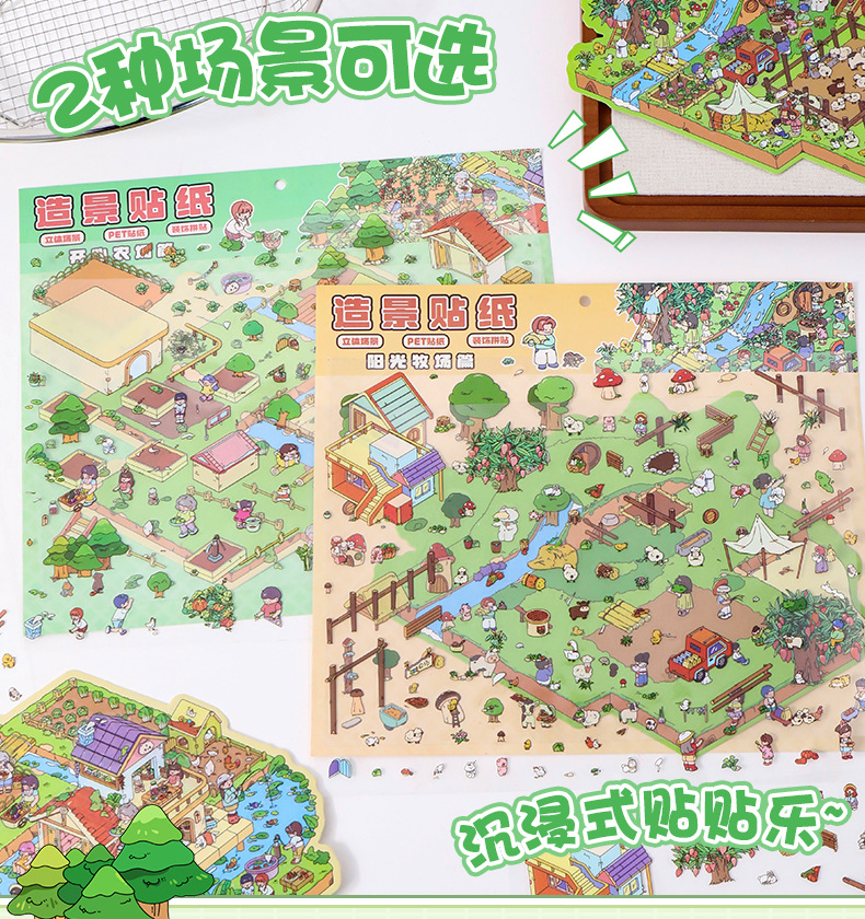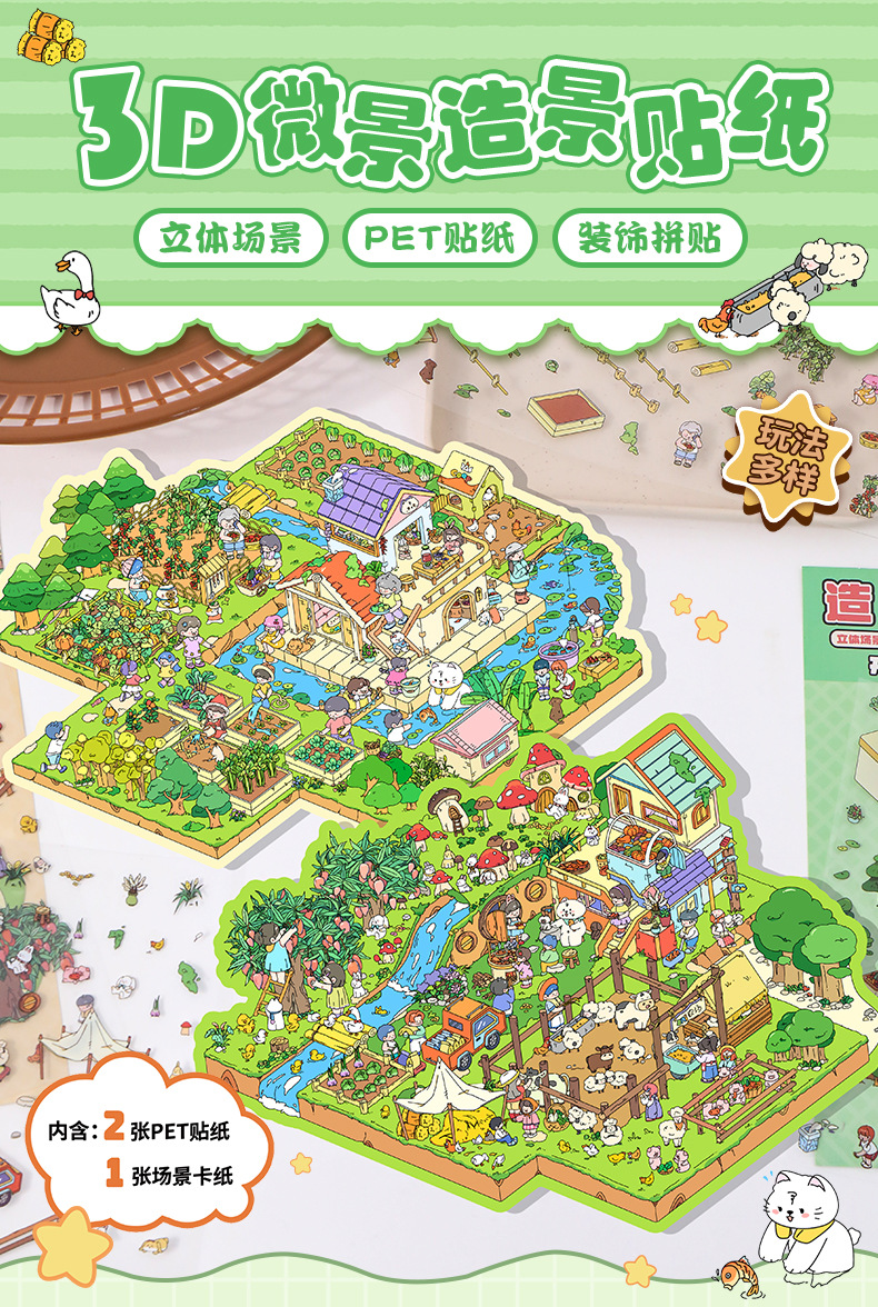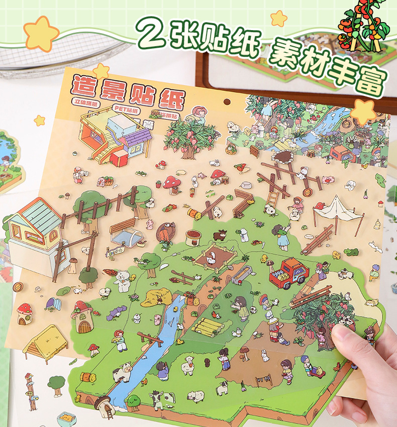艺蓝11.0农场牧场造景贴纸大号3d立体视觉微缩场景拼贴解压手帐贴