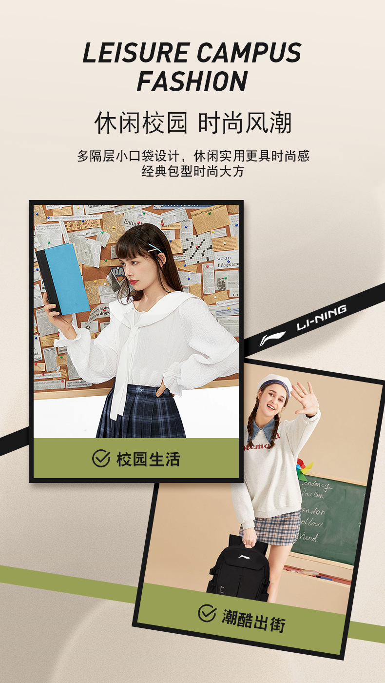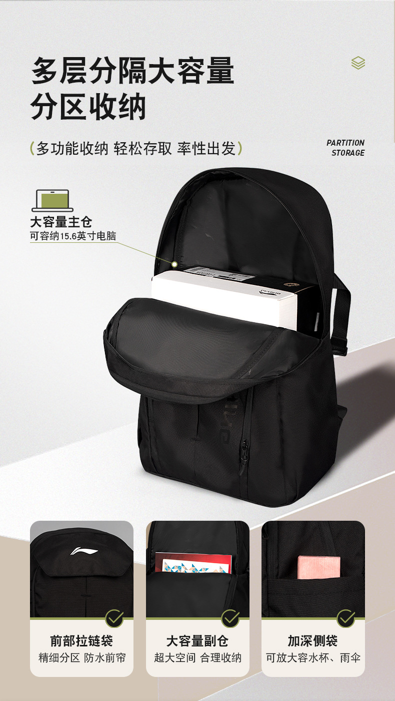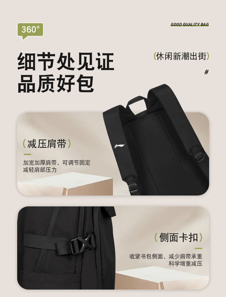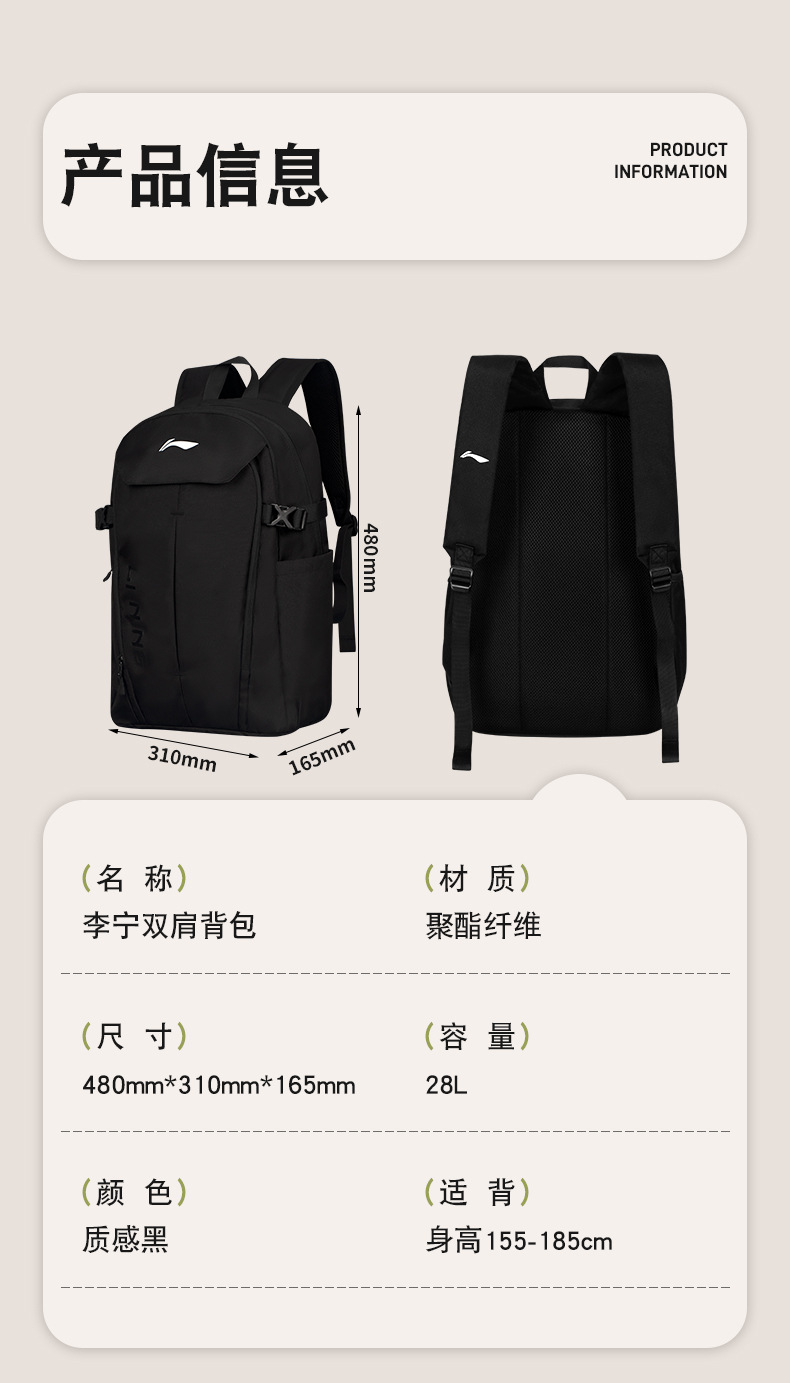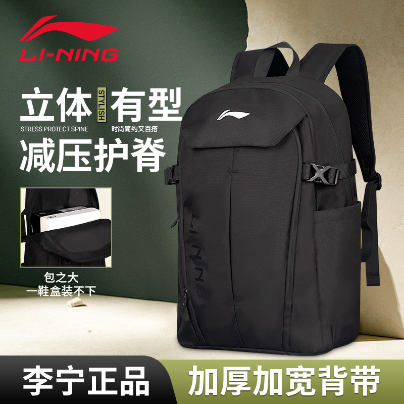 李宁运动双肩包新款户外旅行包通勤男女休闲背包电脑学生书包正品