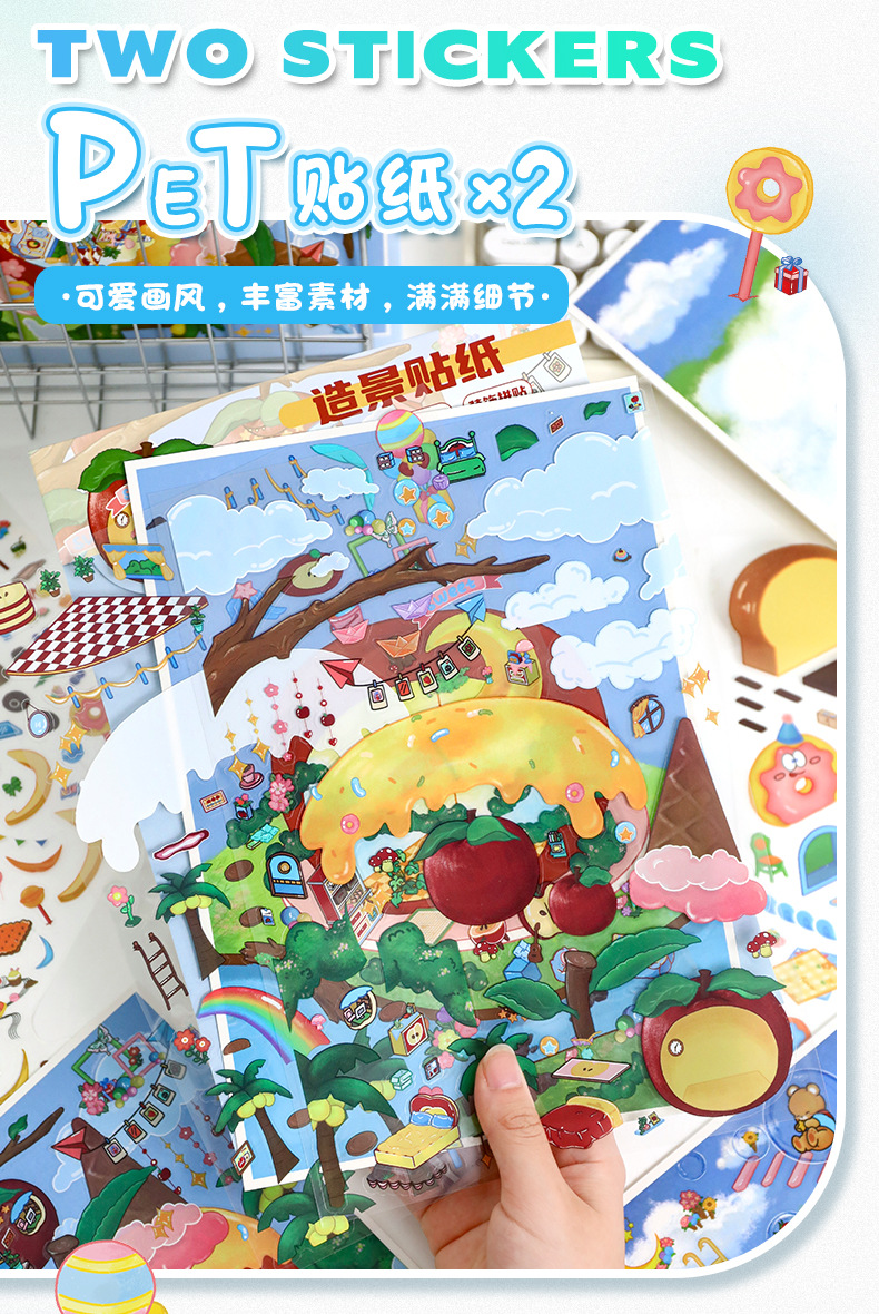 83.0艺蓝造景贴纸蛋糕系列场景贴纸3D立体微缩场景贴纸手帐贴纸