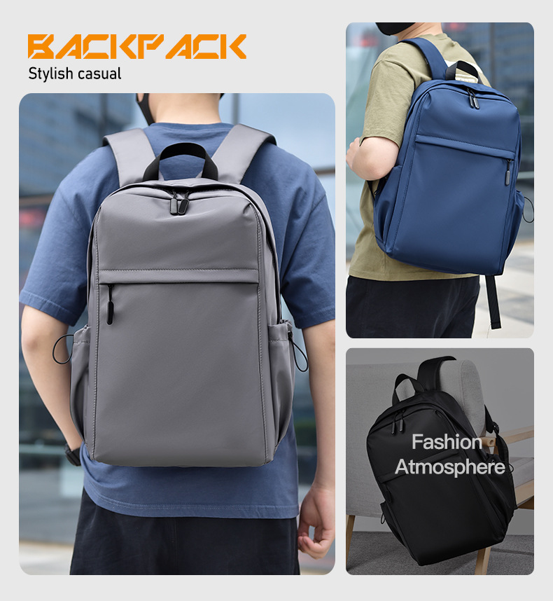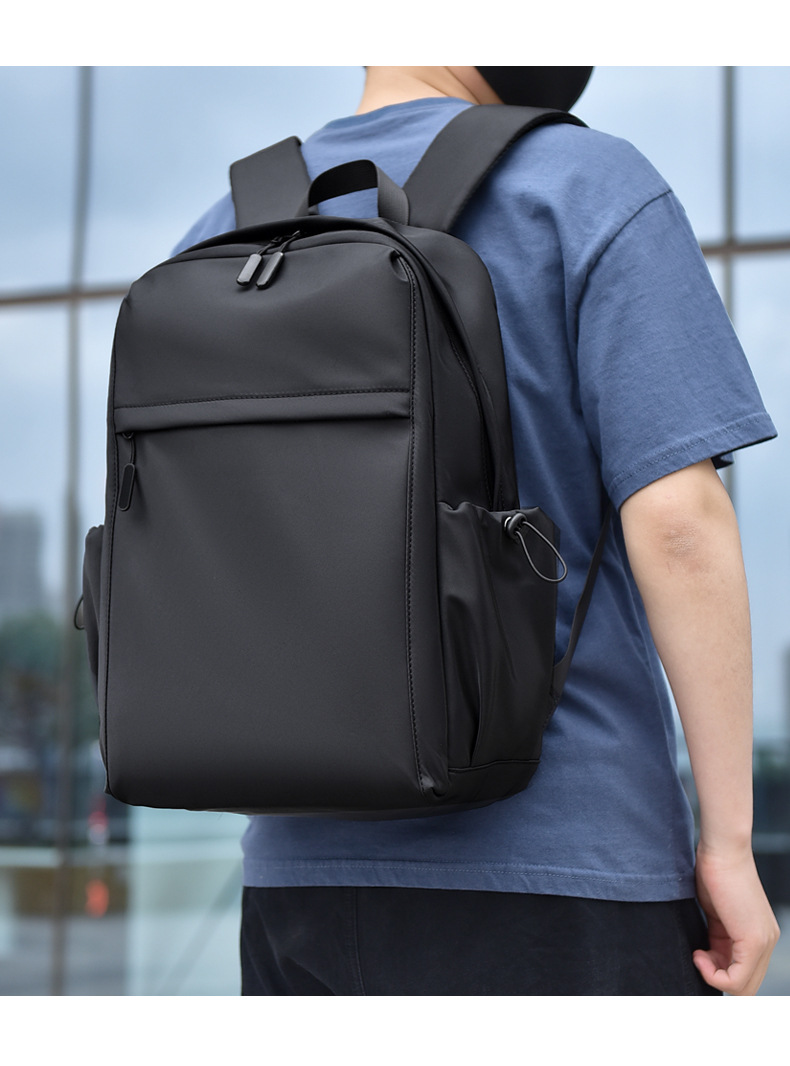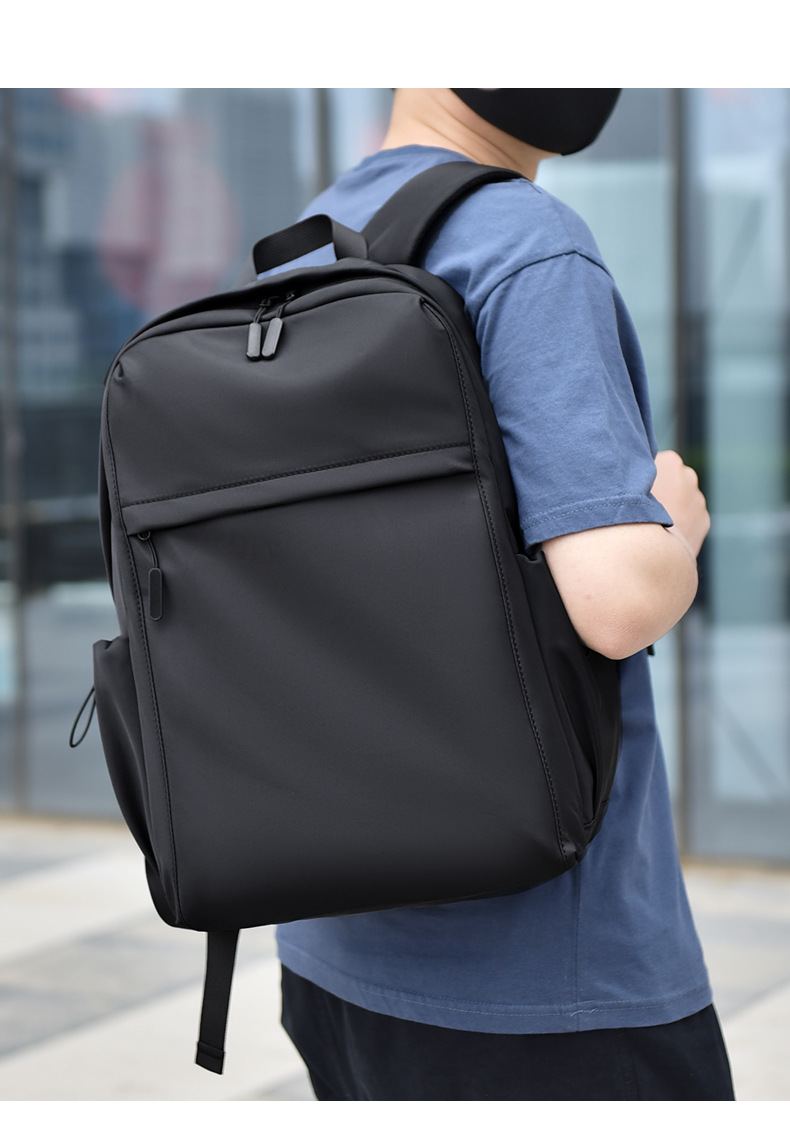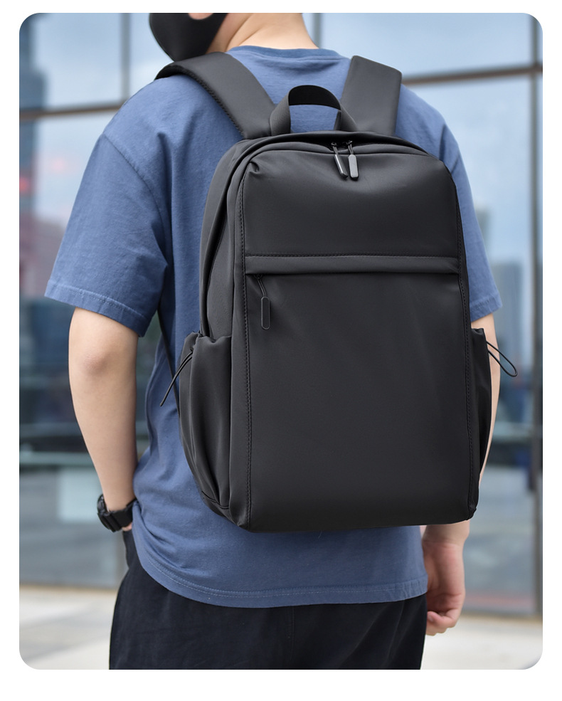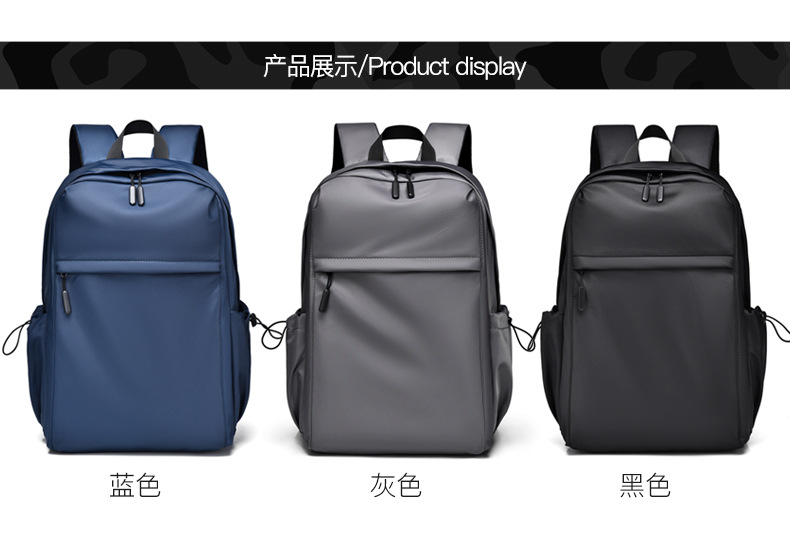 2023新款简约双肩包时尚纯色男士双肩背包初中高学生书包可印logo