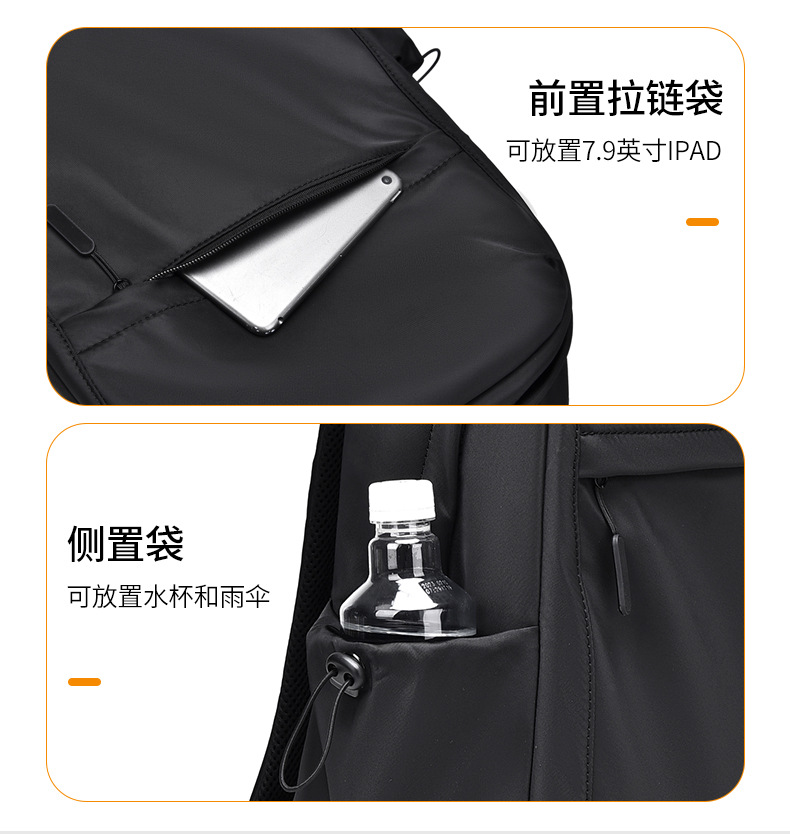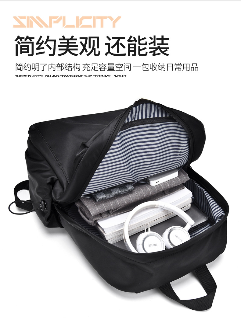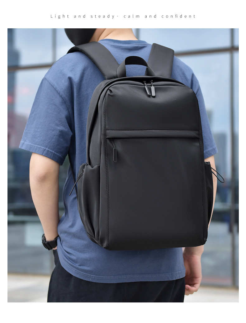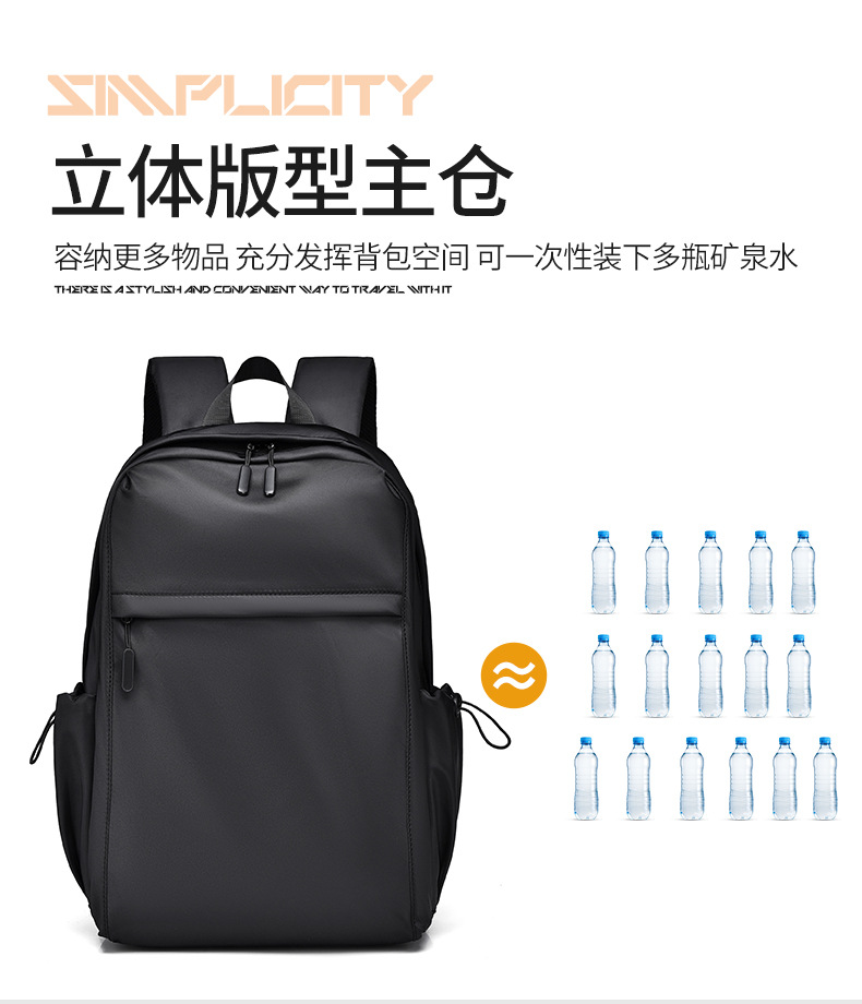 2023新款简约双肩包时尚纯色男士双肩背包初中高学生书包可印logo