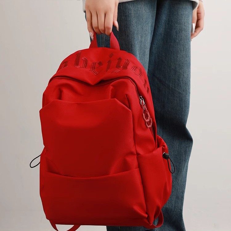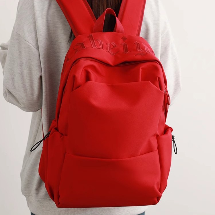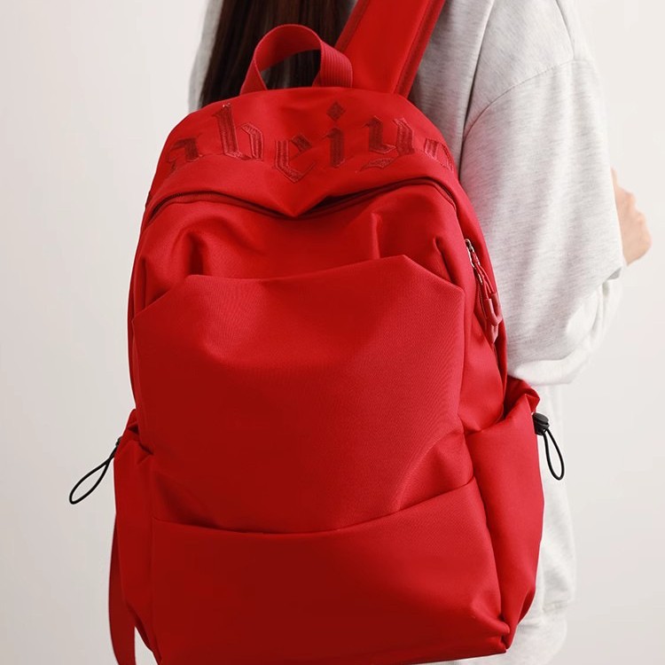 大容量简约刺绣纯色学生书包新款韩系短途旅行双肩包百搭休闲背包