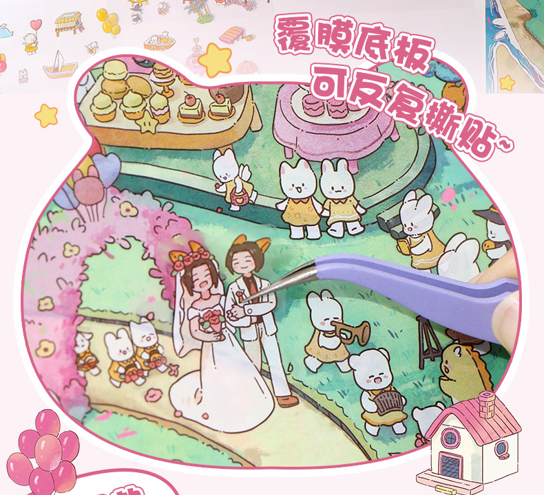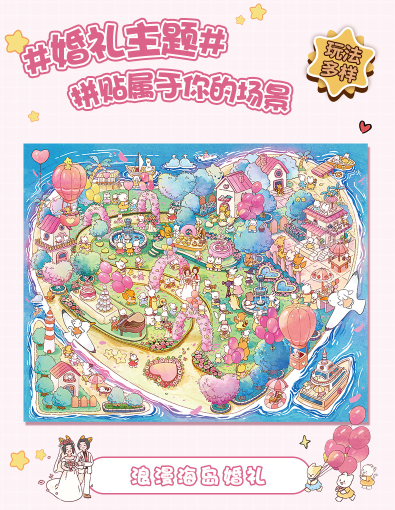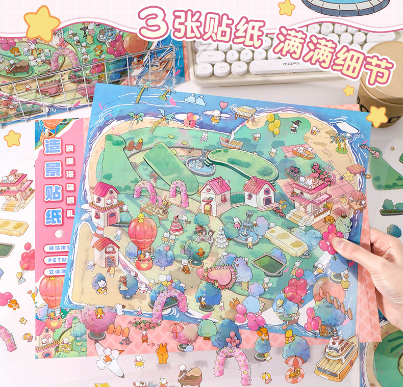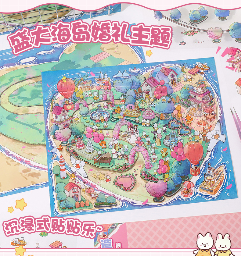 艺蓝7.0超大造景贴纸浪漫海岛婚礼微缩场景贴纸3D立体叠堆手帐贴
