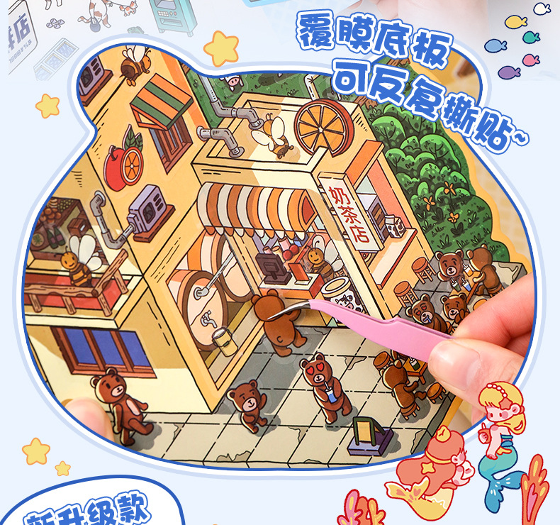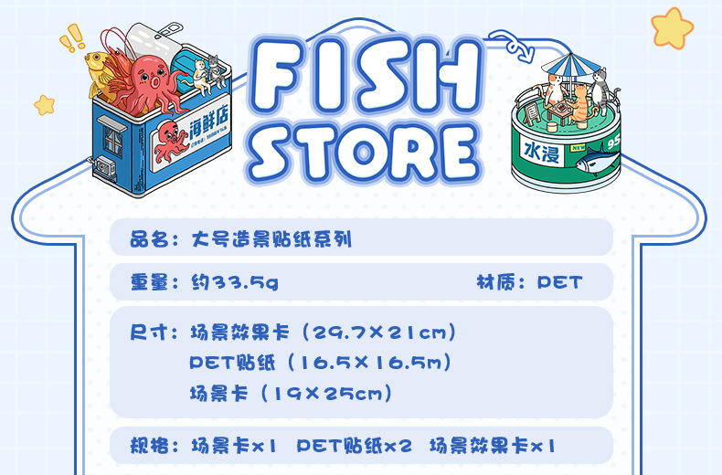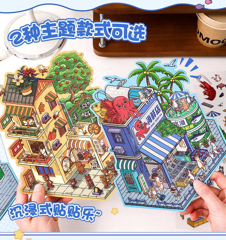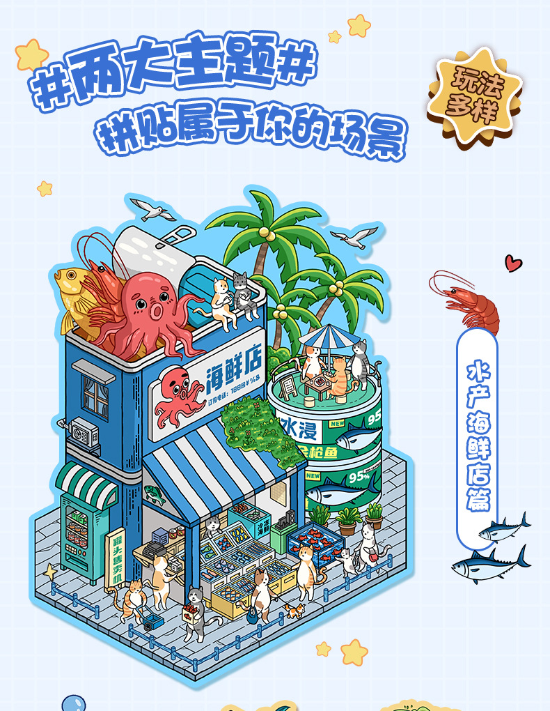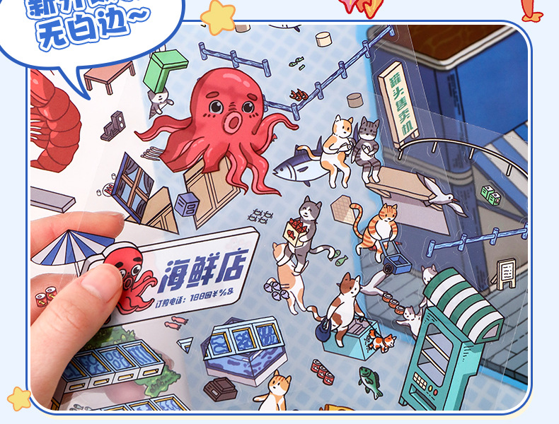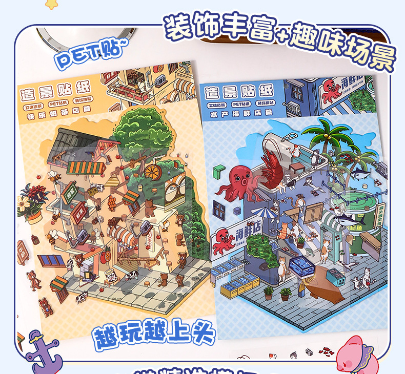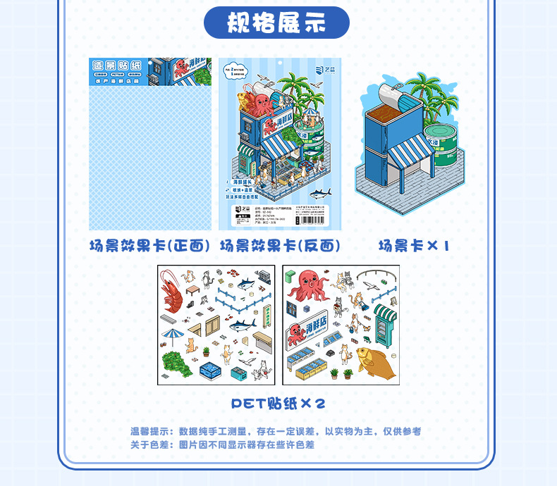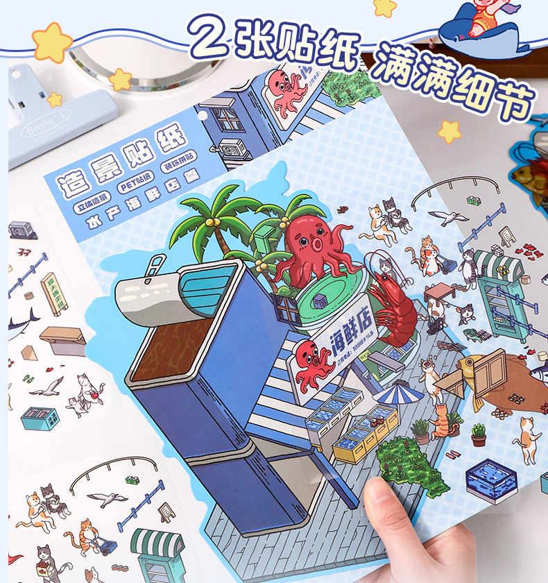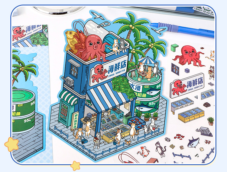 艺蓝15.0海鲜店造景贴纸微缩立体场景拼贴微景观手账贴纸diy贴画